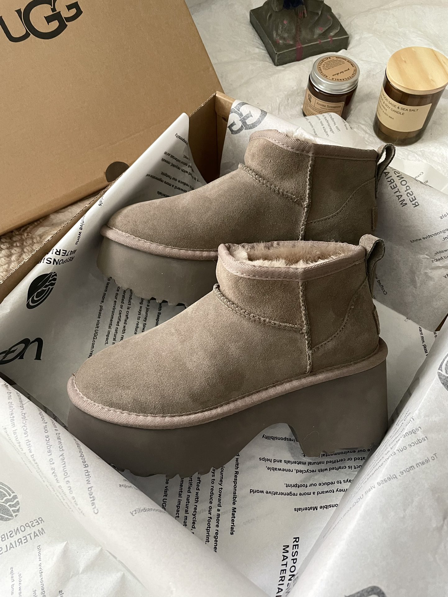 This shoes is AAAAA 1:1 quality (superb). Materials used are identical to the original ones. UGG trademark marks are indistinguishable to the authentic. Photos take by actual shoes, what you receive will be 100% same with our photos.