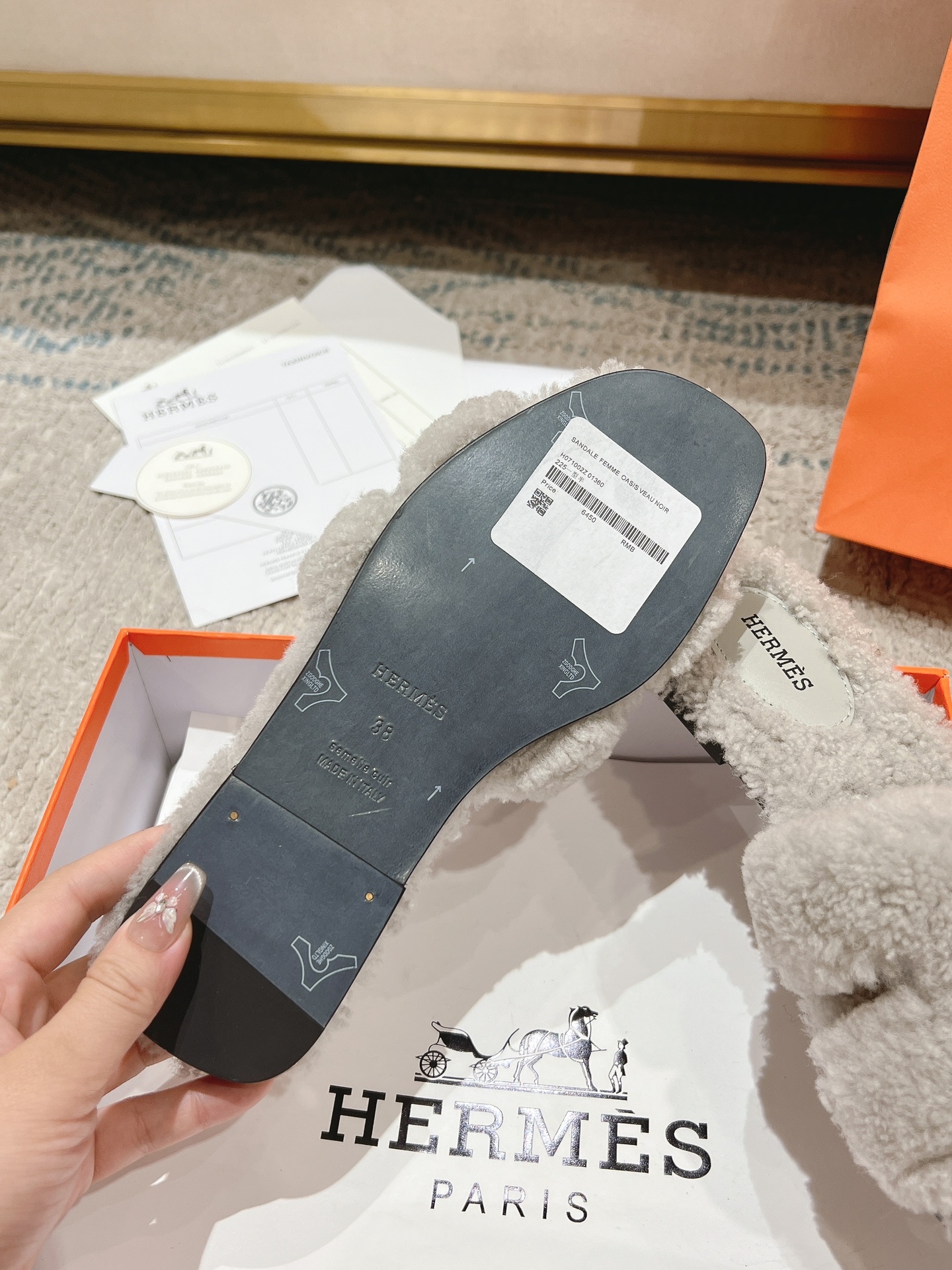 NO:3767279. The shoes is from Hermes designer.
