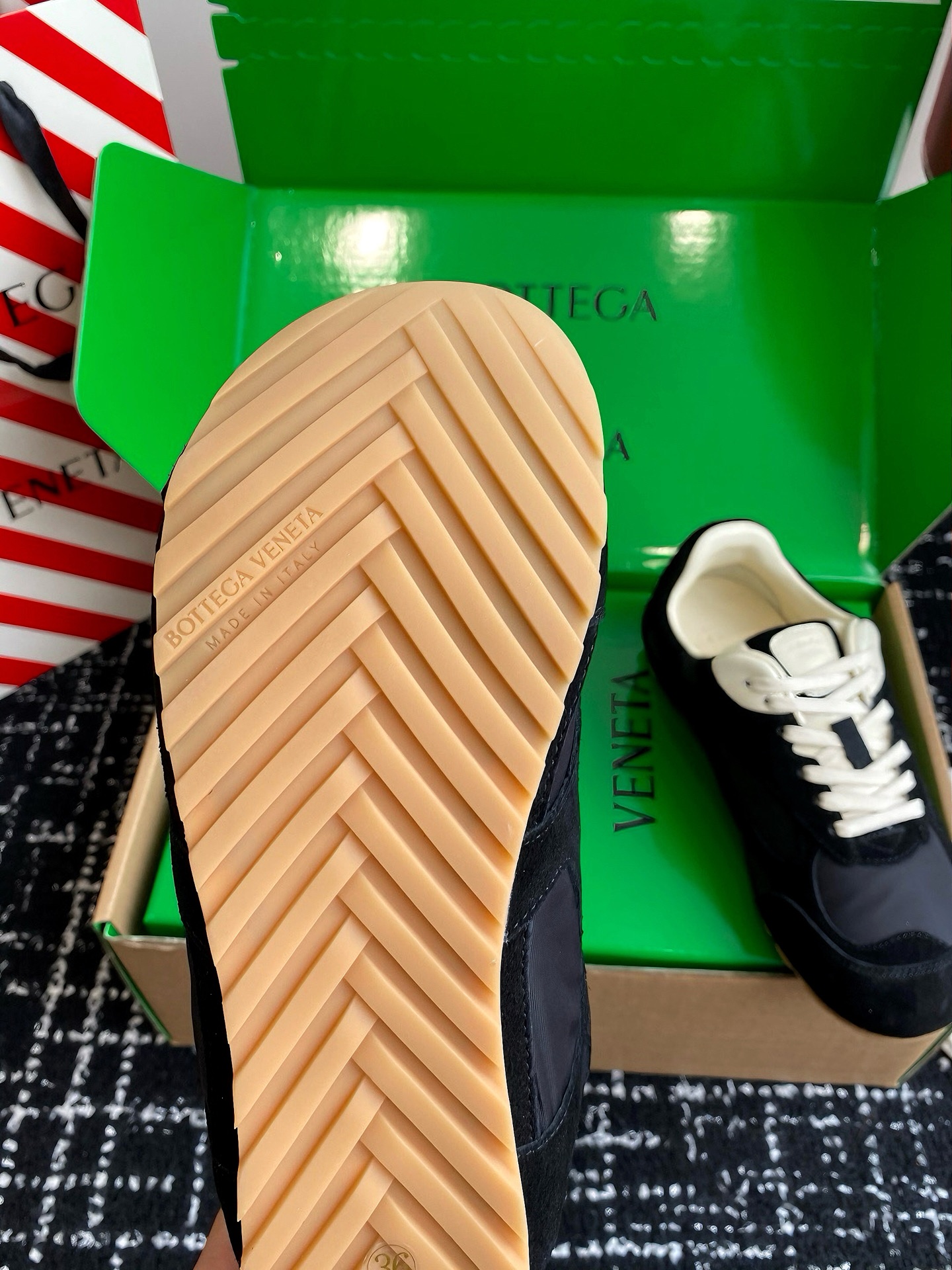 This shoes is AAAAA 1:1 quality (superb). Materials used are identical to the original ones. trademark marks are indistinguishable to the authentic. Photos take by actual shoes, what you receive will be 100% same with our photos.