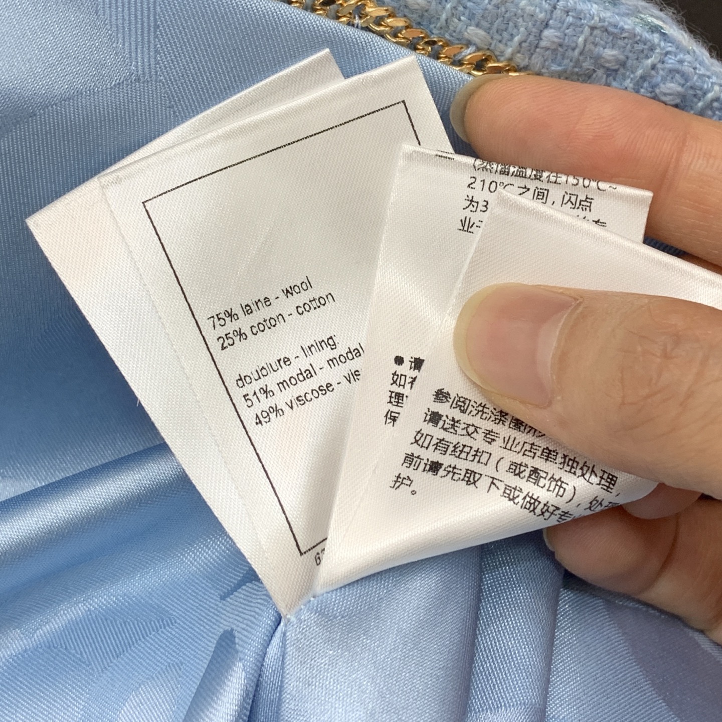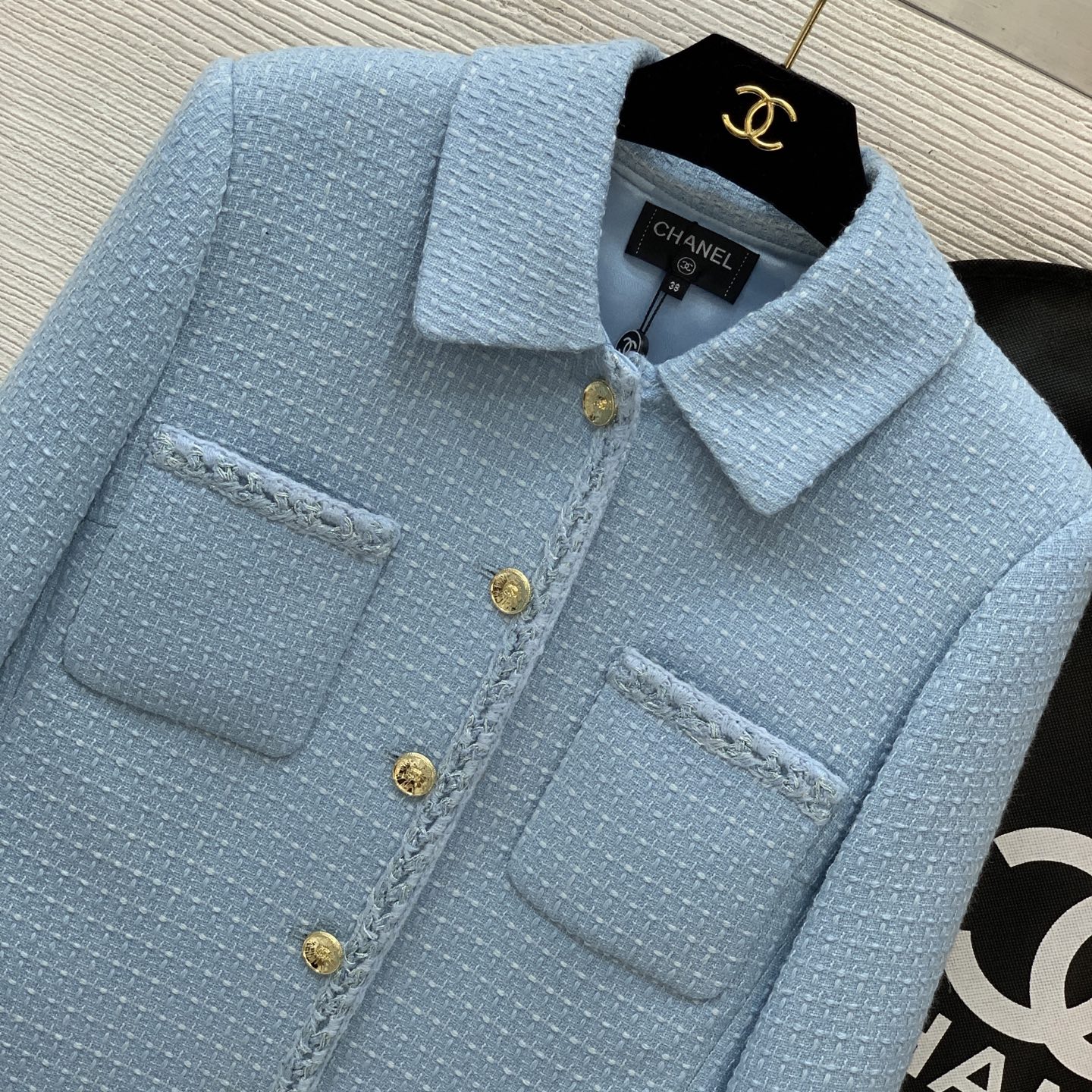 This clothes is AAAAA 1:1 quality (superb). Materials used are identical to the original ones. Chanel trademark marks are indistinguishable to the authentic. Photos take by actual clothes, what you receive will be 100% same with our photos.