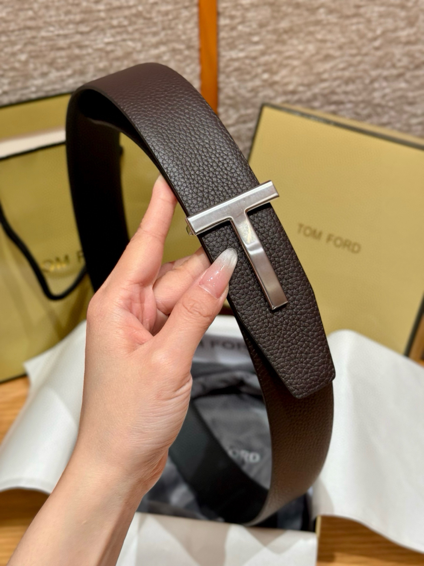 This belt is AAAAA 1:1 quality (superb). Materials used are identical to the original ones. Tom Ford trademark marks are indistinguishable to the authentic. Photos take by actual belt, what you receive will be 100% same with our photos.