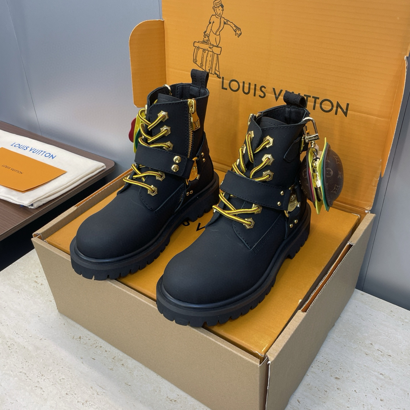 This shoes is AAAAA 1:1 quality (superb). Materials used are identical to the original ones. Louis Vuitton trademark marks are indistinguishable to the authentic. Photos take by actual shoes, what you receive will be 100% same with our photos.