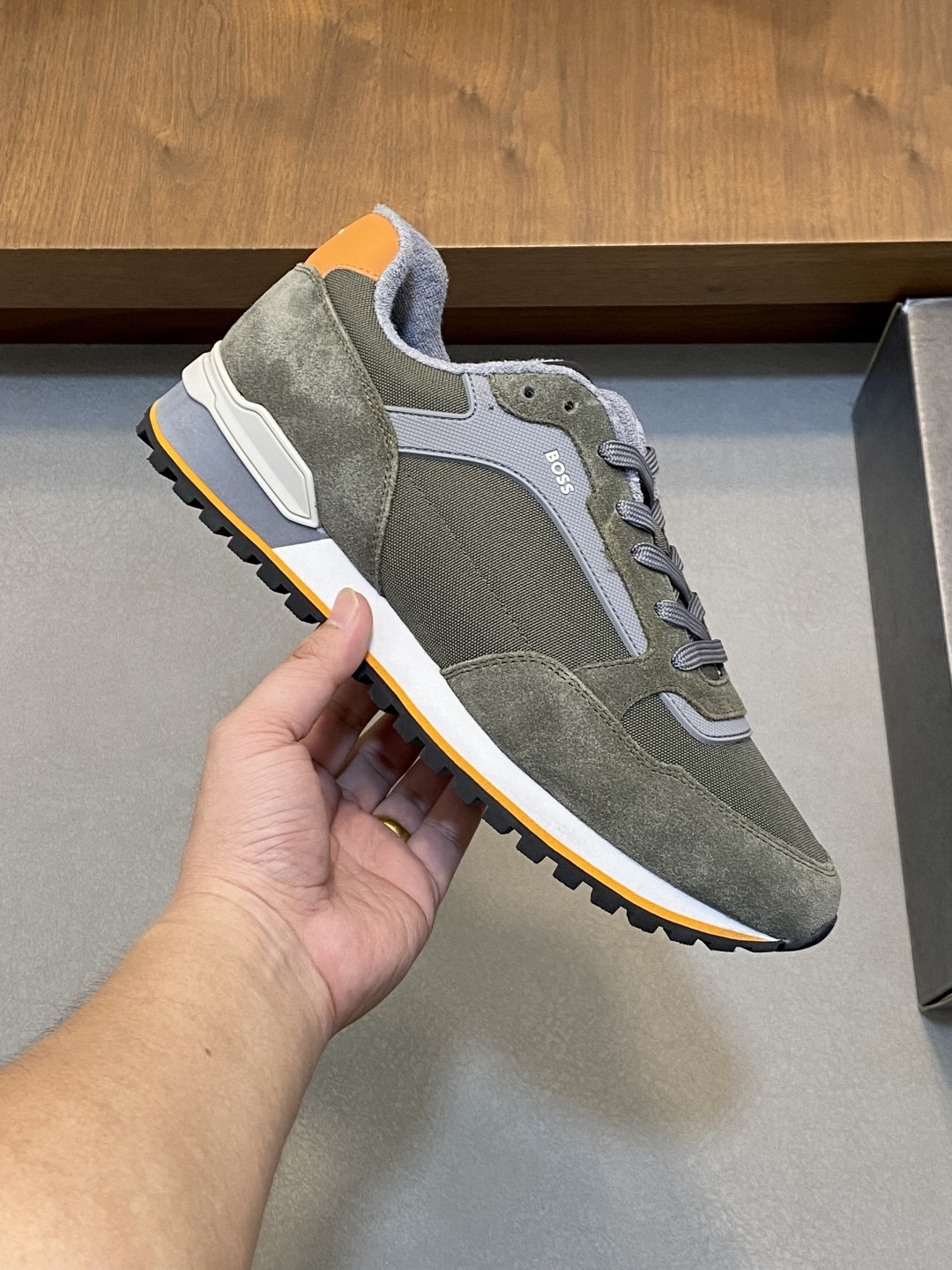 This shoes is AAAAA 1:1 quality (superb). Materials used are identical to the original ones. BOSS trademark marks are indistinguishable to the authentic. Photos take by actual shoes, what you receive will be 100% same with our photos.