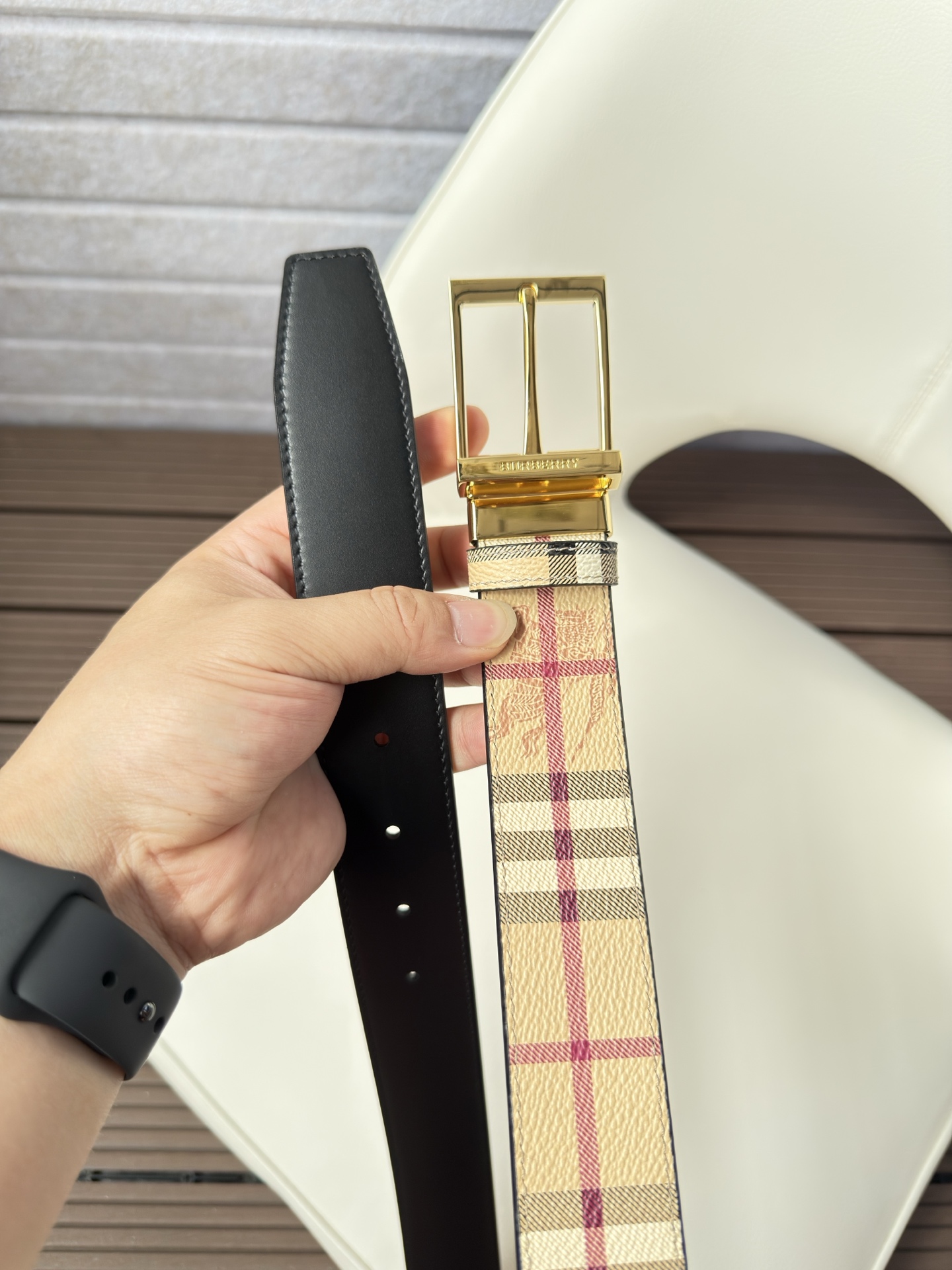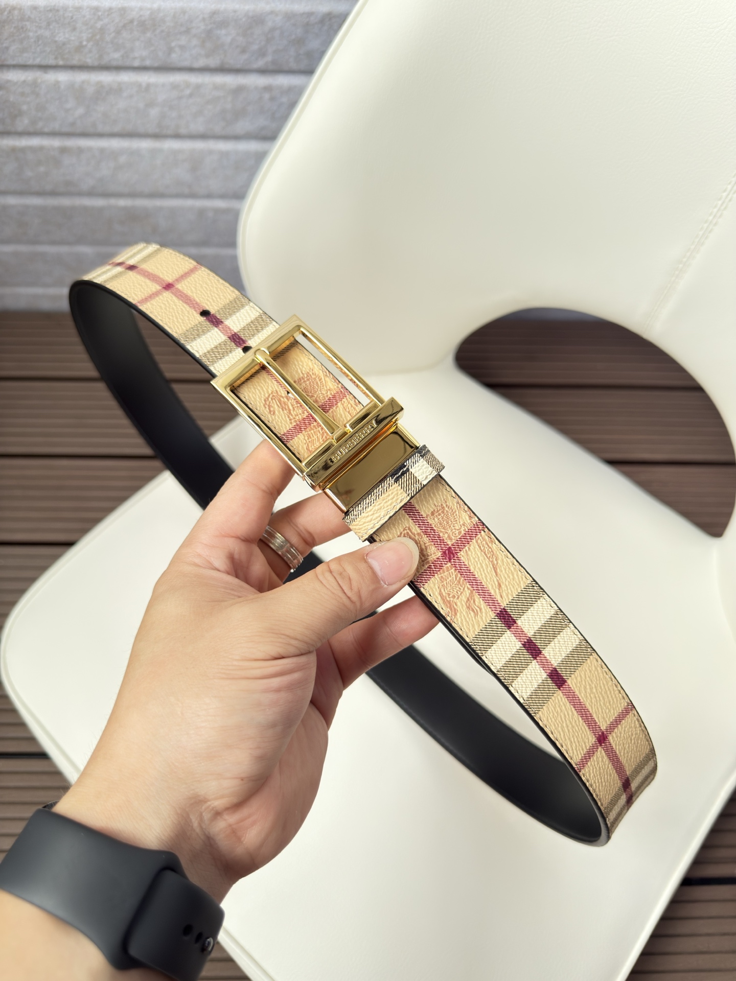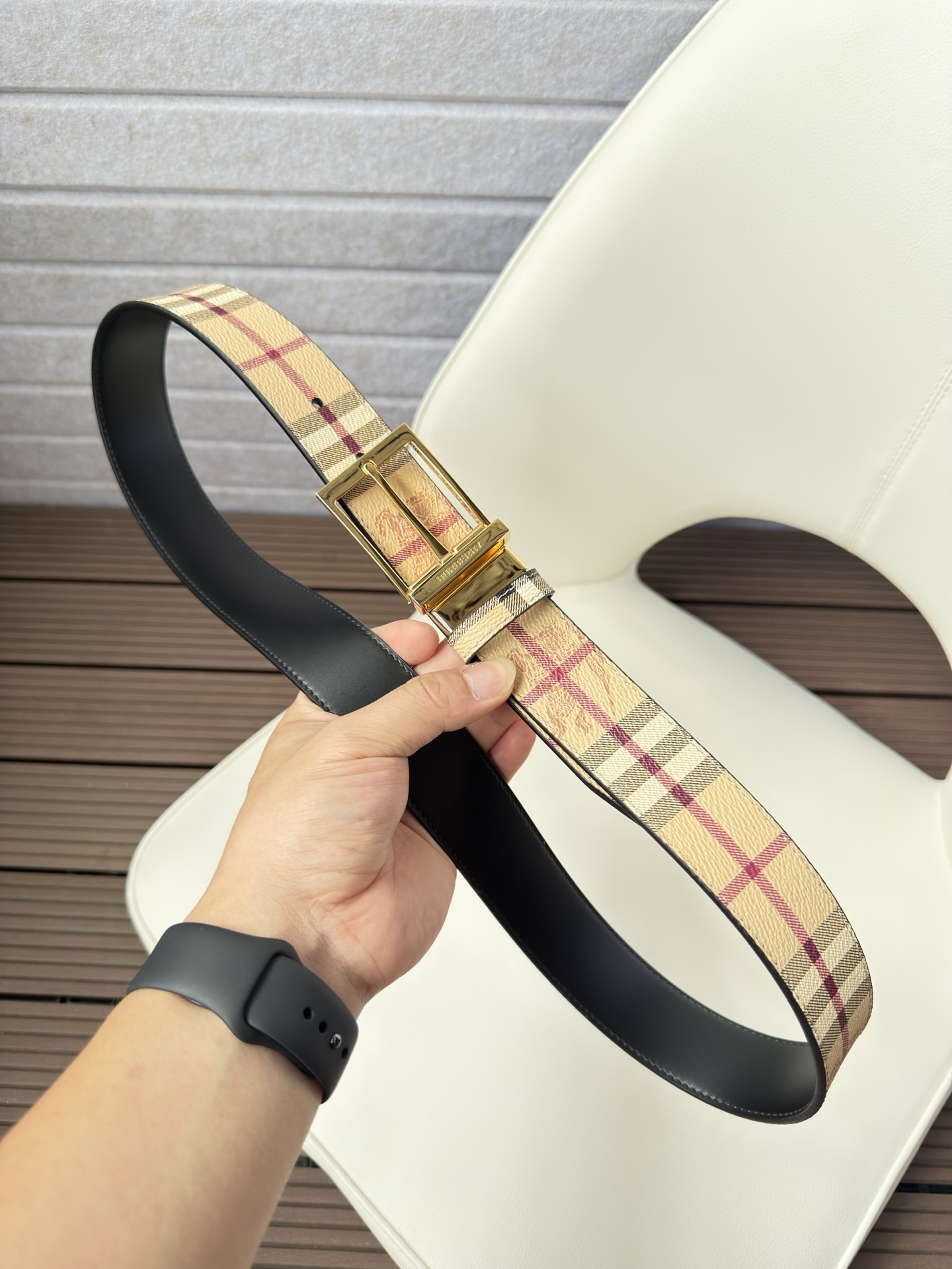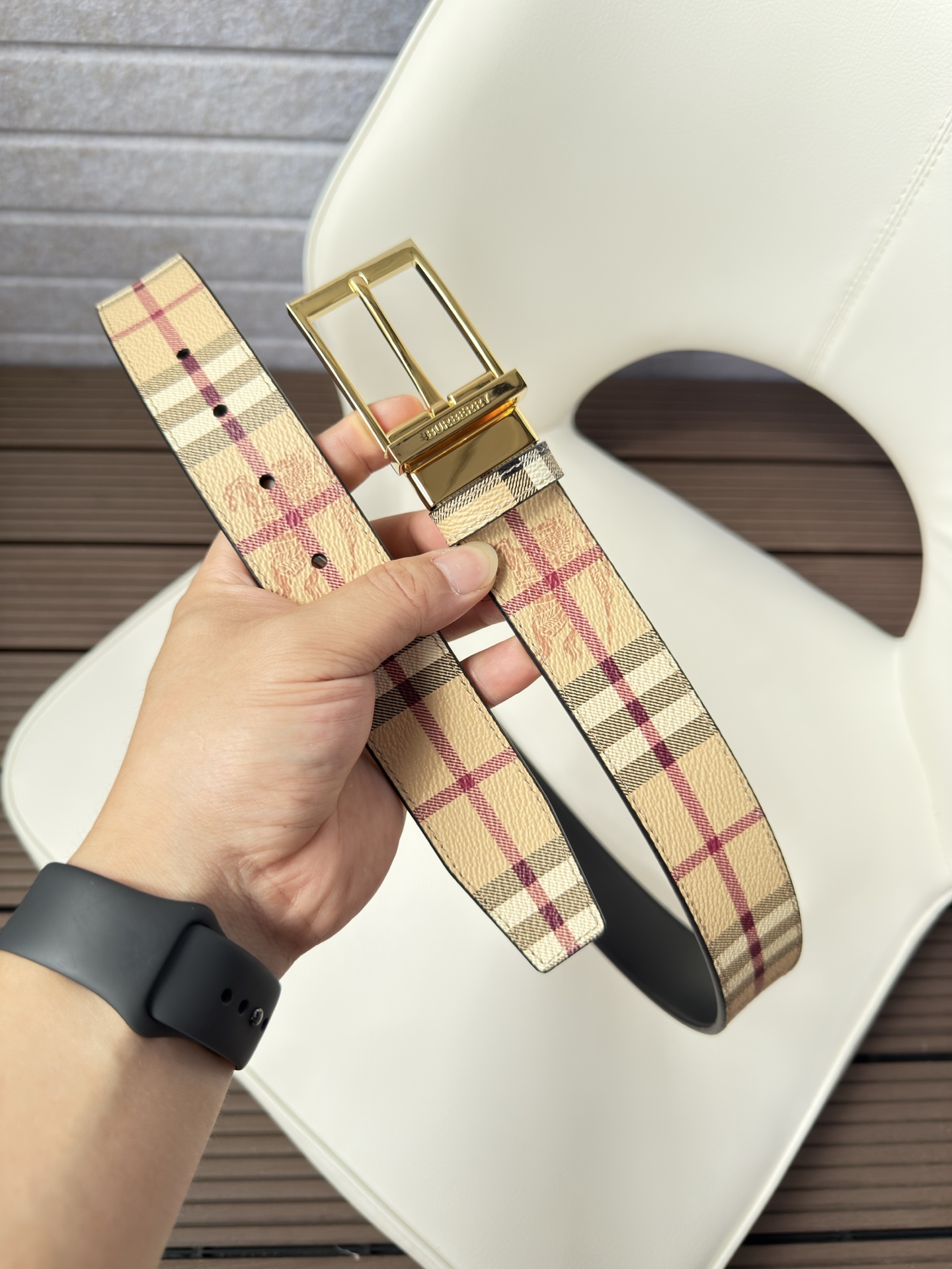 This belt is AAAAA 1:1 quality (superb). Materials used are identical to the original ones. Burberry trademark marks are indistinguishable to the authentic. Photos take by actual belt, what you receive will be 100% same with our photos.
