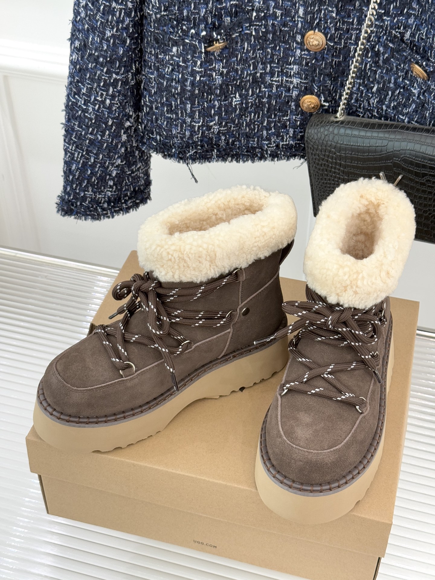 This shoes is AAAAA 1:1 quality (superb). Materials used are identical to the original ones. UGG trademark marks are indistinguishable to the authentic. Photos take by actual shoes, what you receive will be 100% same with our photos.