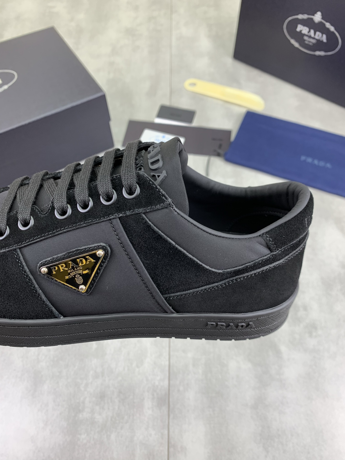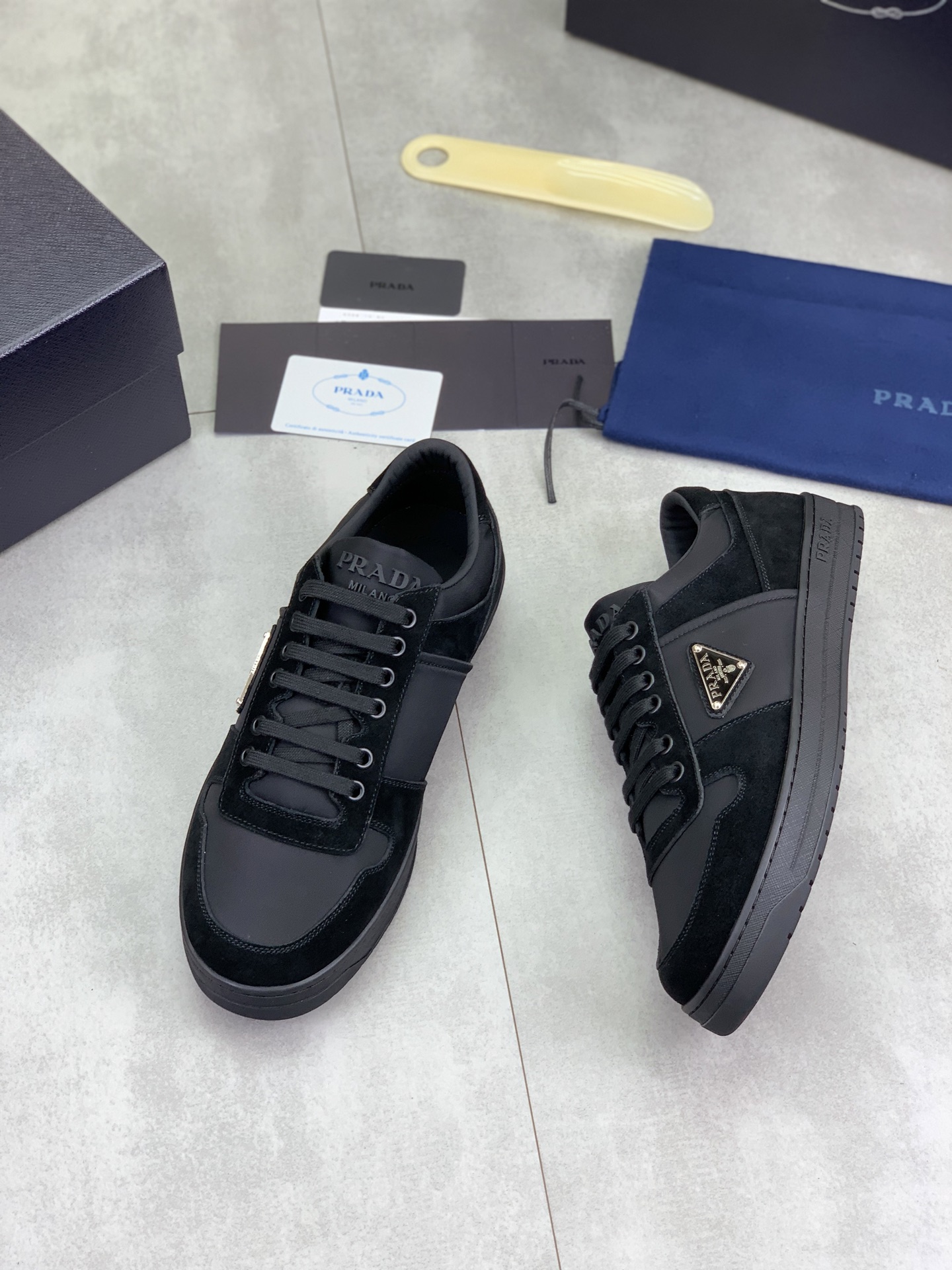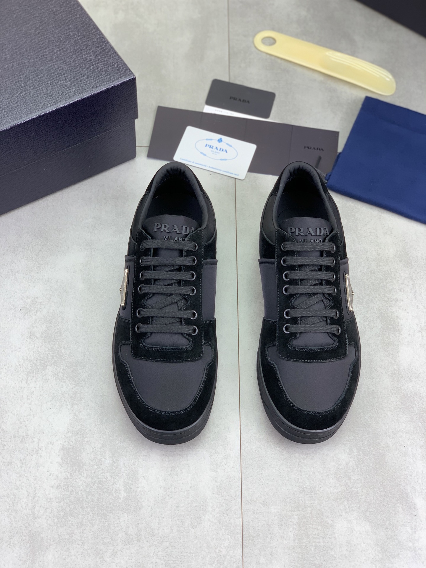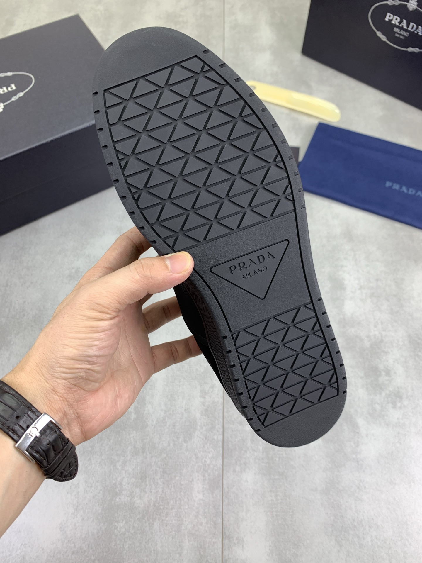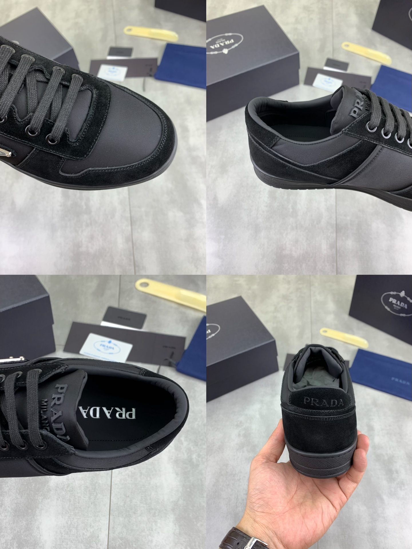 This shoes is AAAAA 1:1 quality (superb). Materials used are identical to the original ones. Prada trademark marks are indistinguishable to the authentic. Photos take by actual shoes, what you receive will be 100% same with our photos.