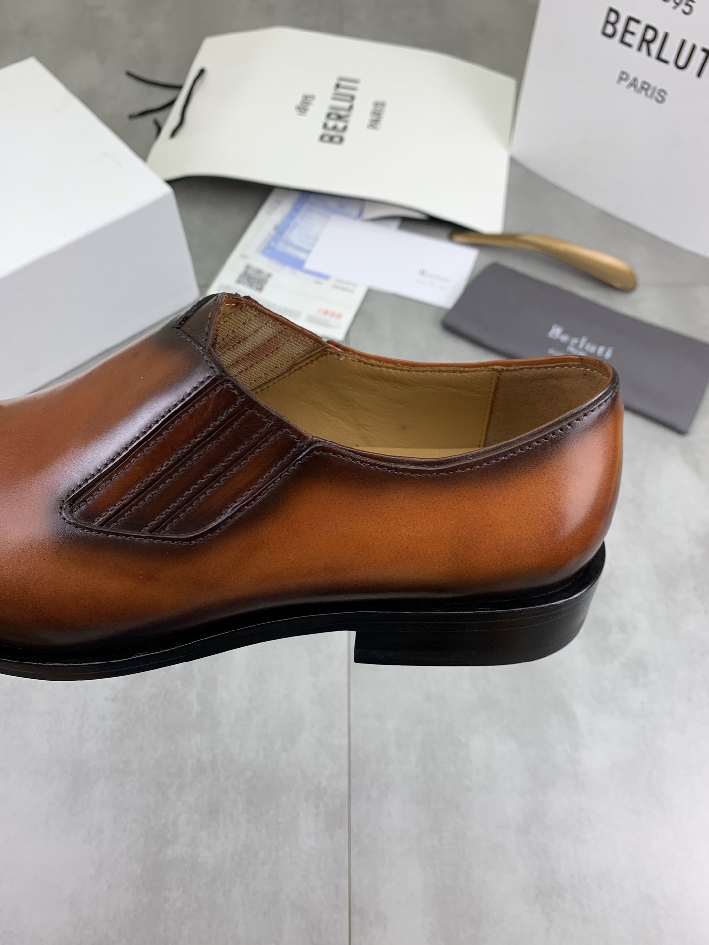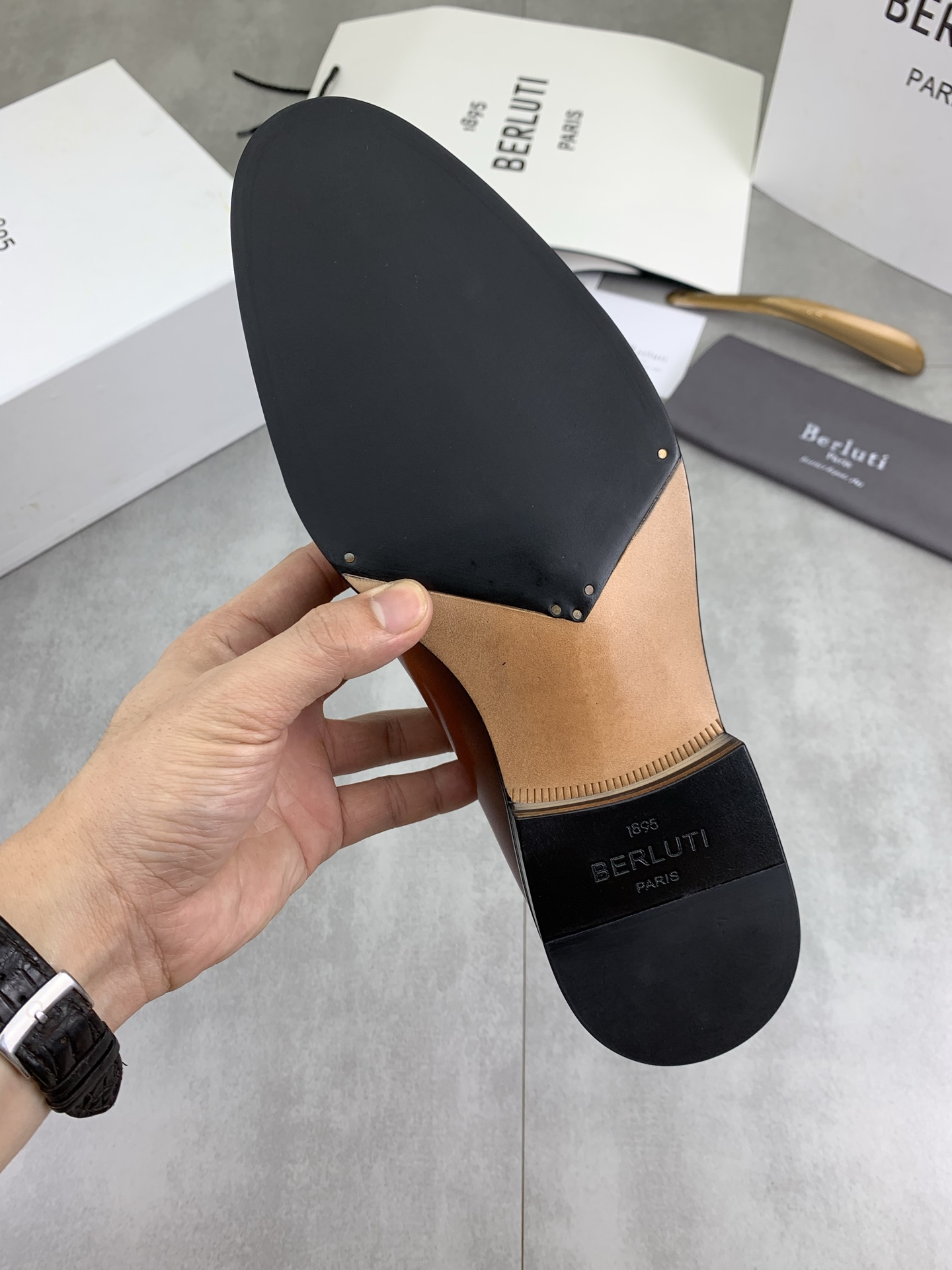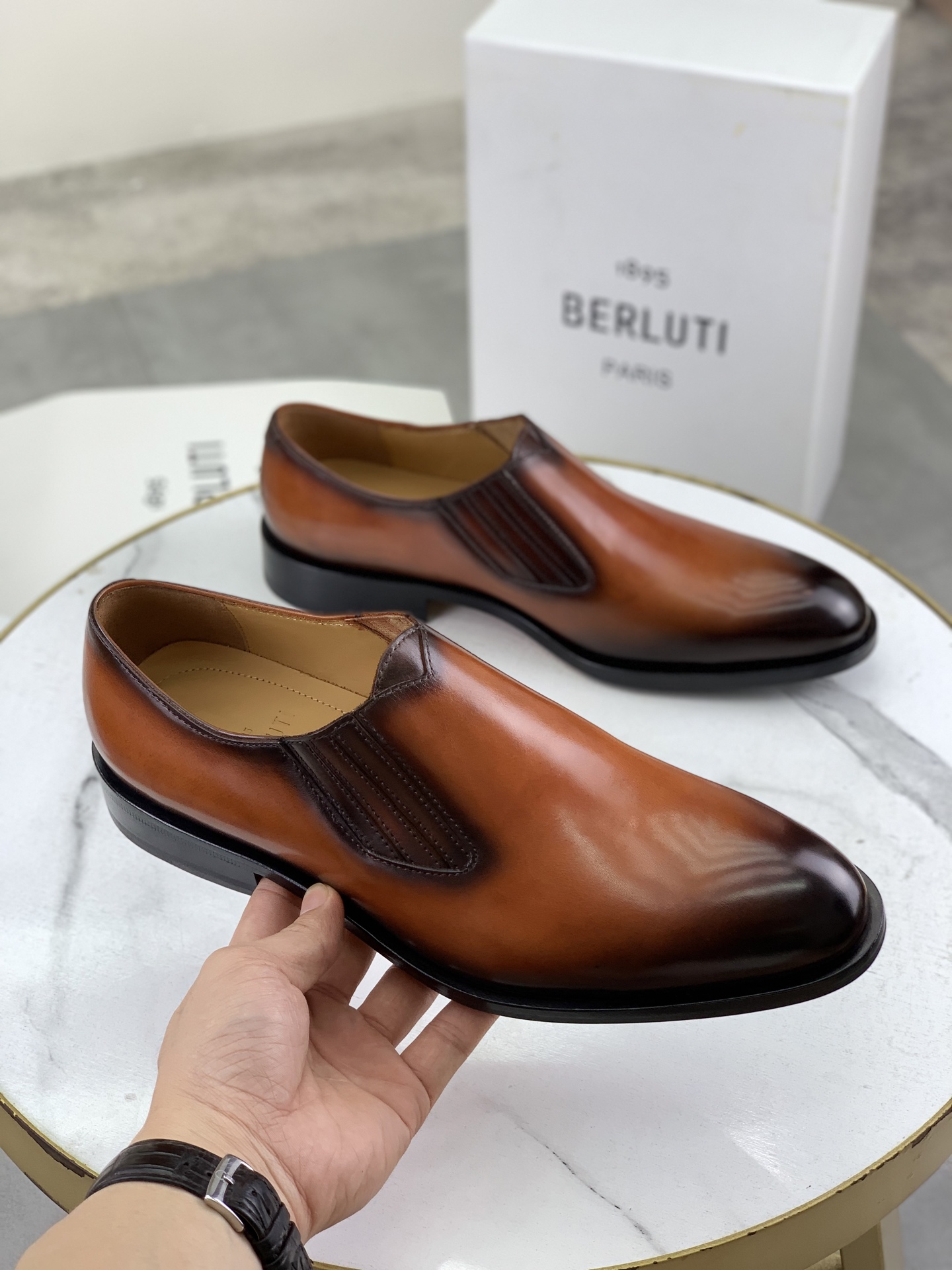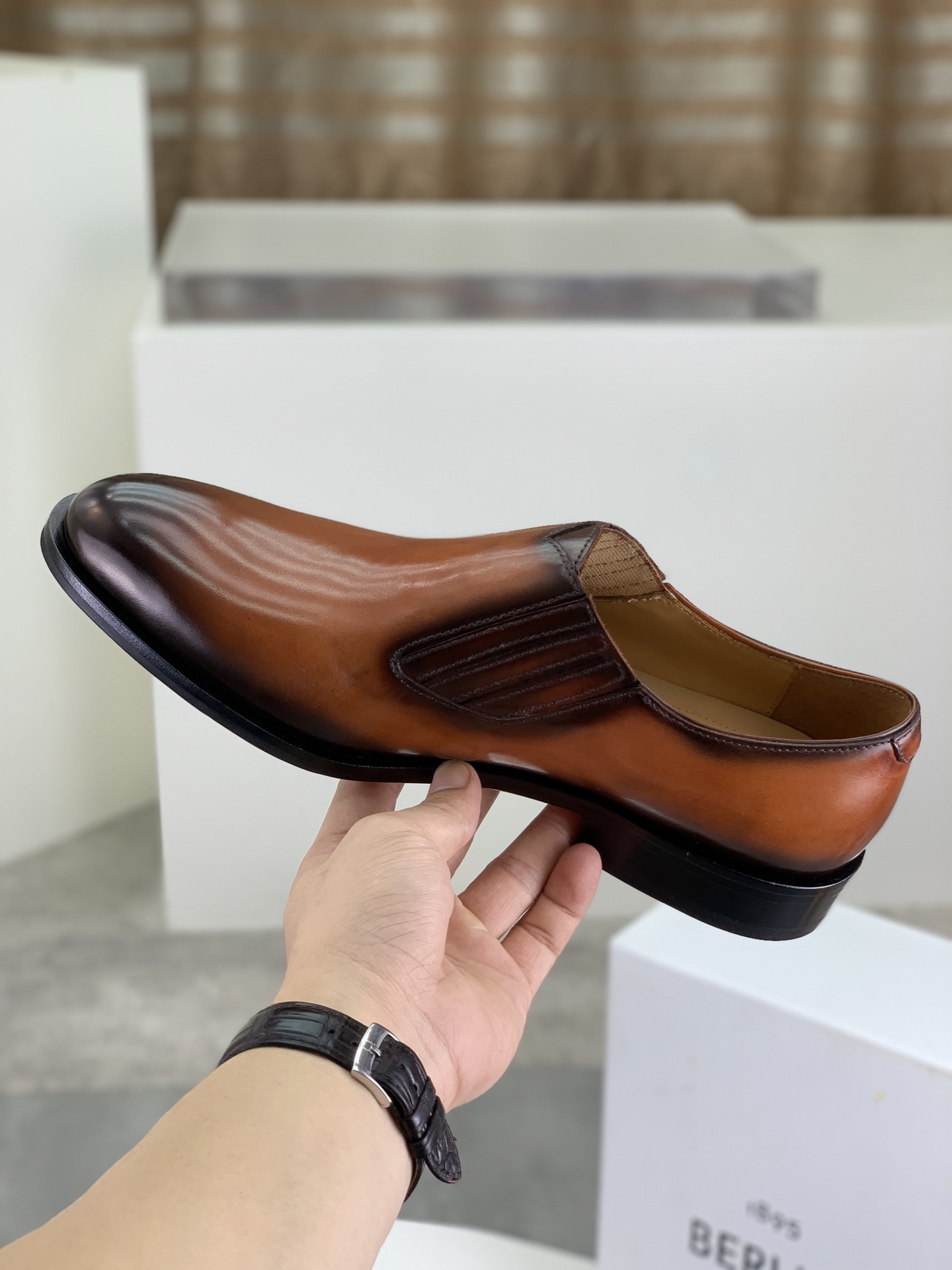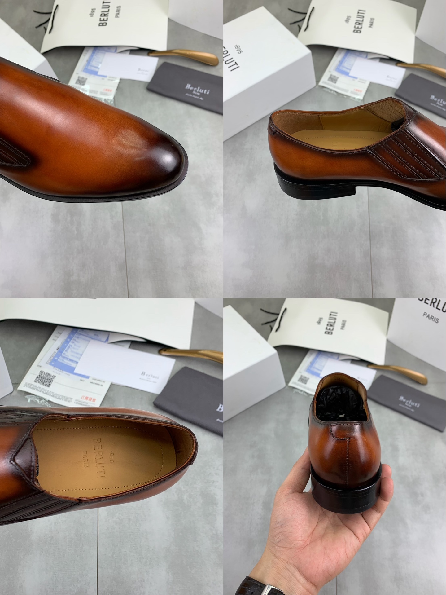 This shoes is AAAAA 1:1 quality (superb). Materials used are identical to the original ones. Berluti trademark marks are indistinguishable to the authentic. Photos take by actual shoes, what you receive will be 100% same with our photos.