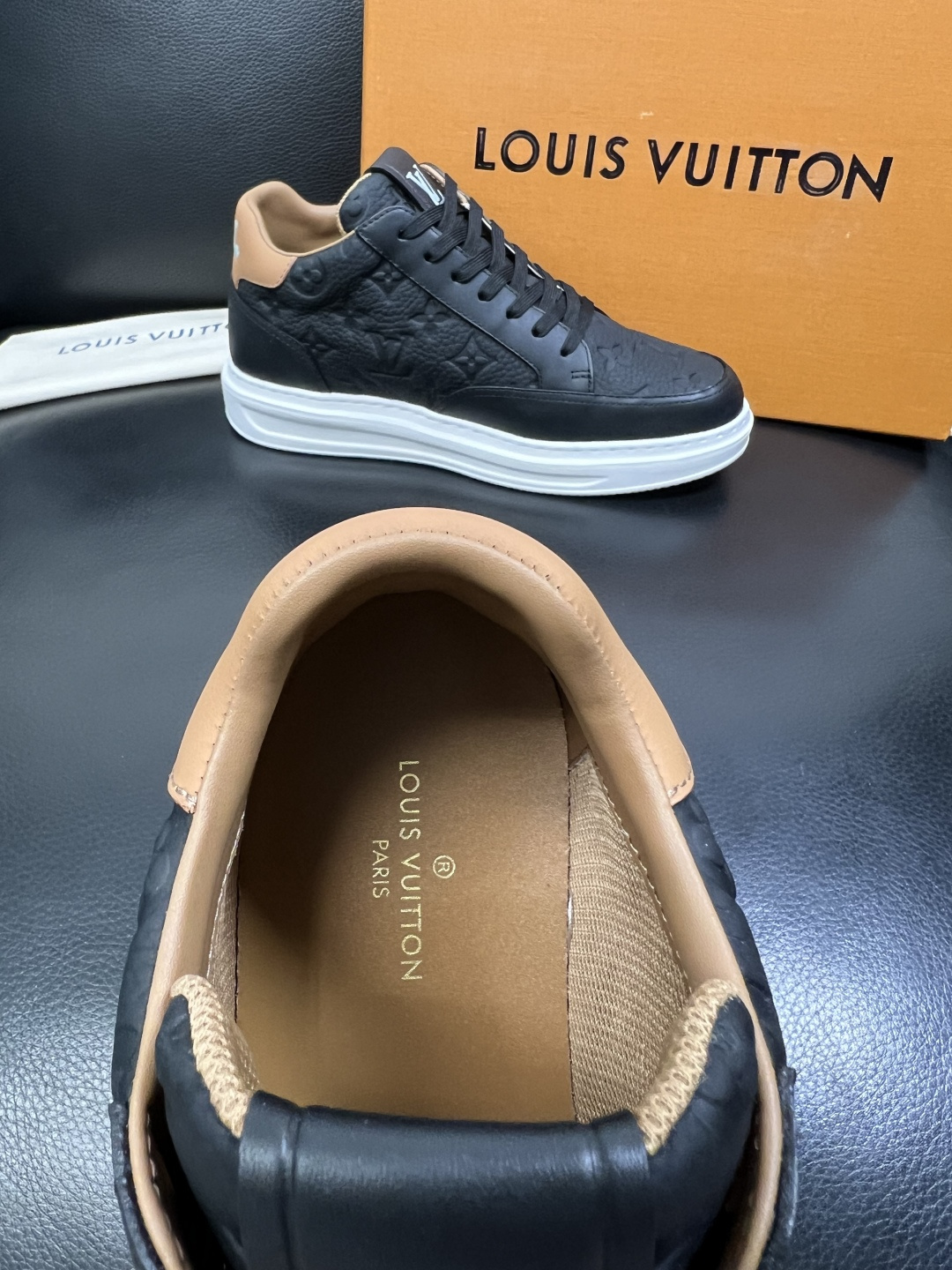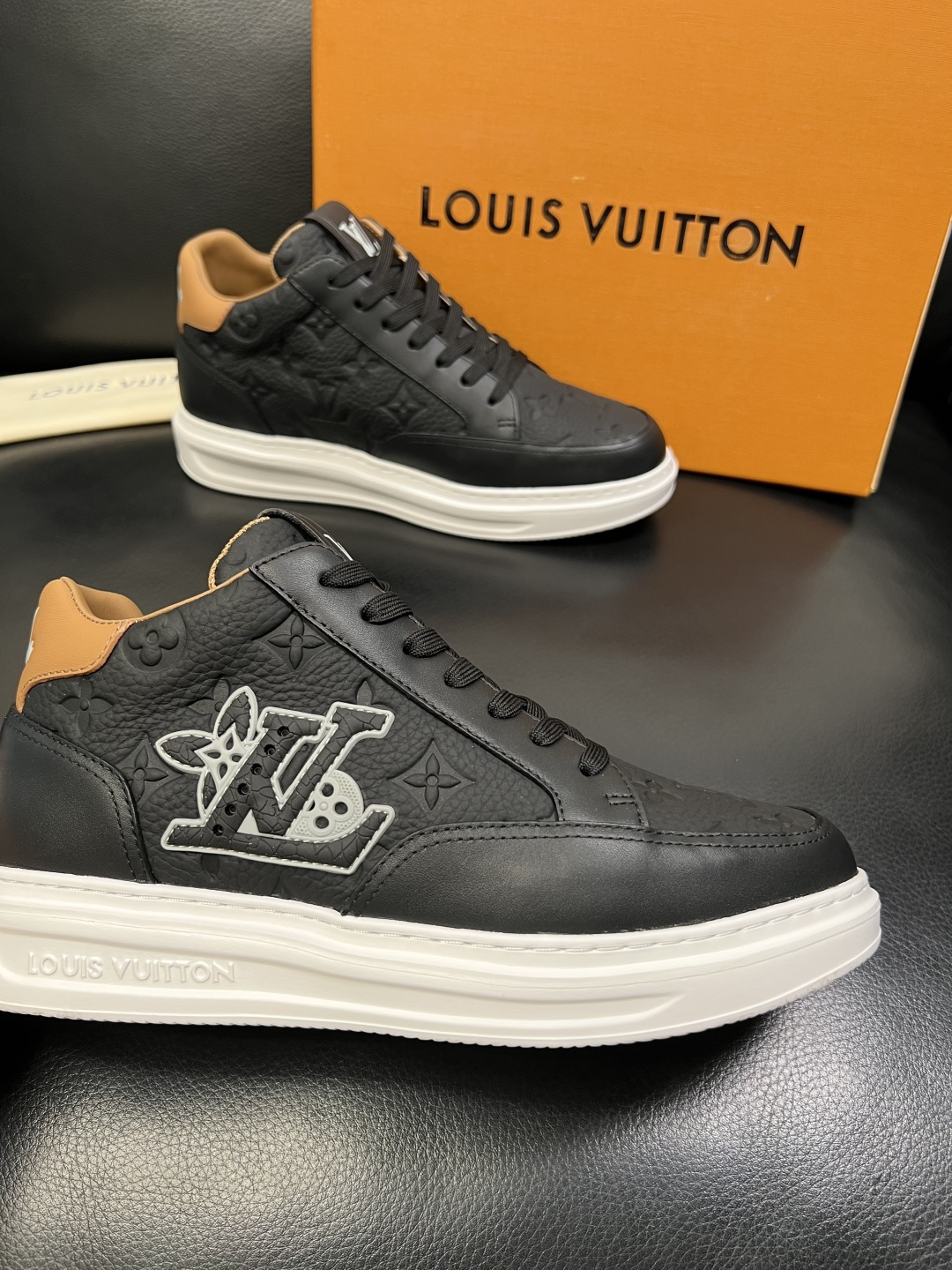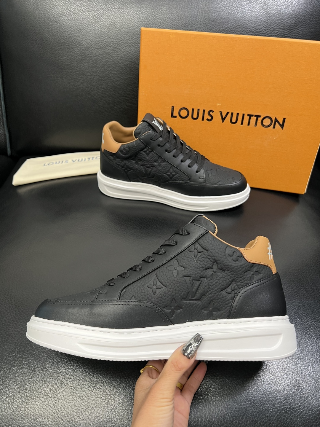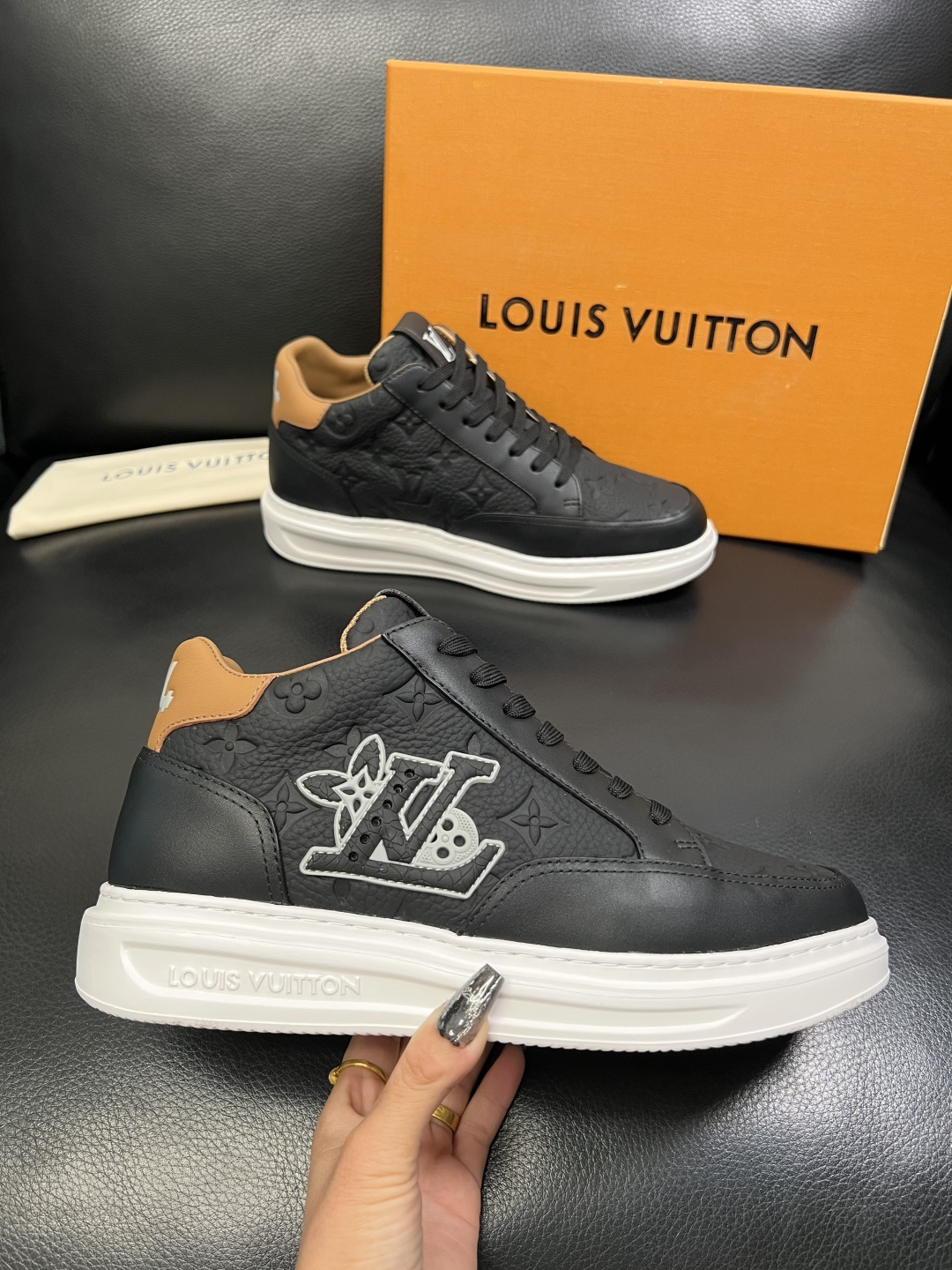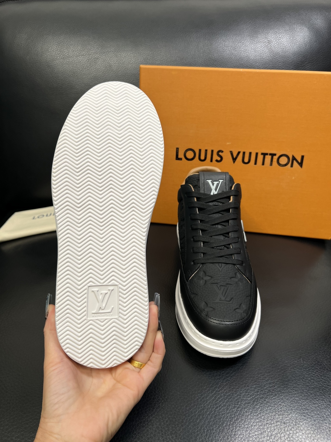 This shoes is AAAAA 1:1 quality (superb). Materials used are identical to the original ones. Louis Vuitton trademark marks are indistinguishable to the authentic. Photos take by actual shoes, what you receive will be 100% same with our photos.