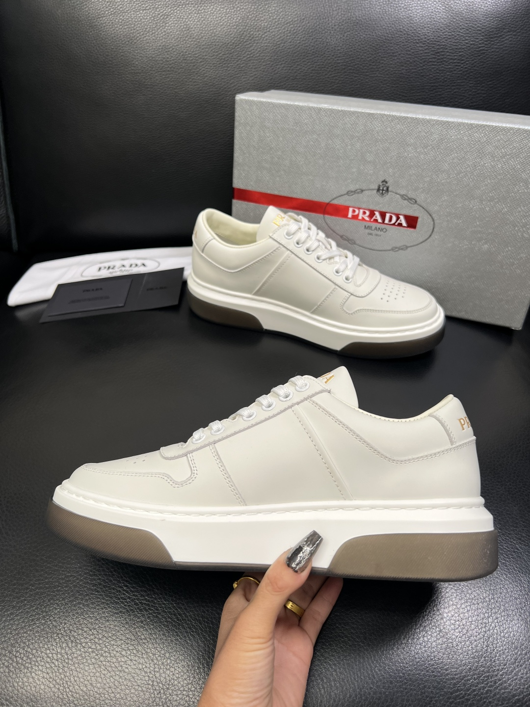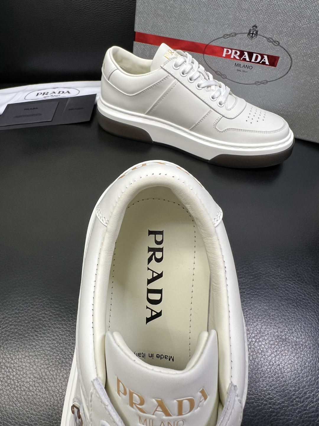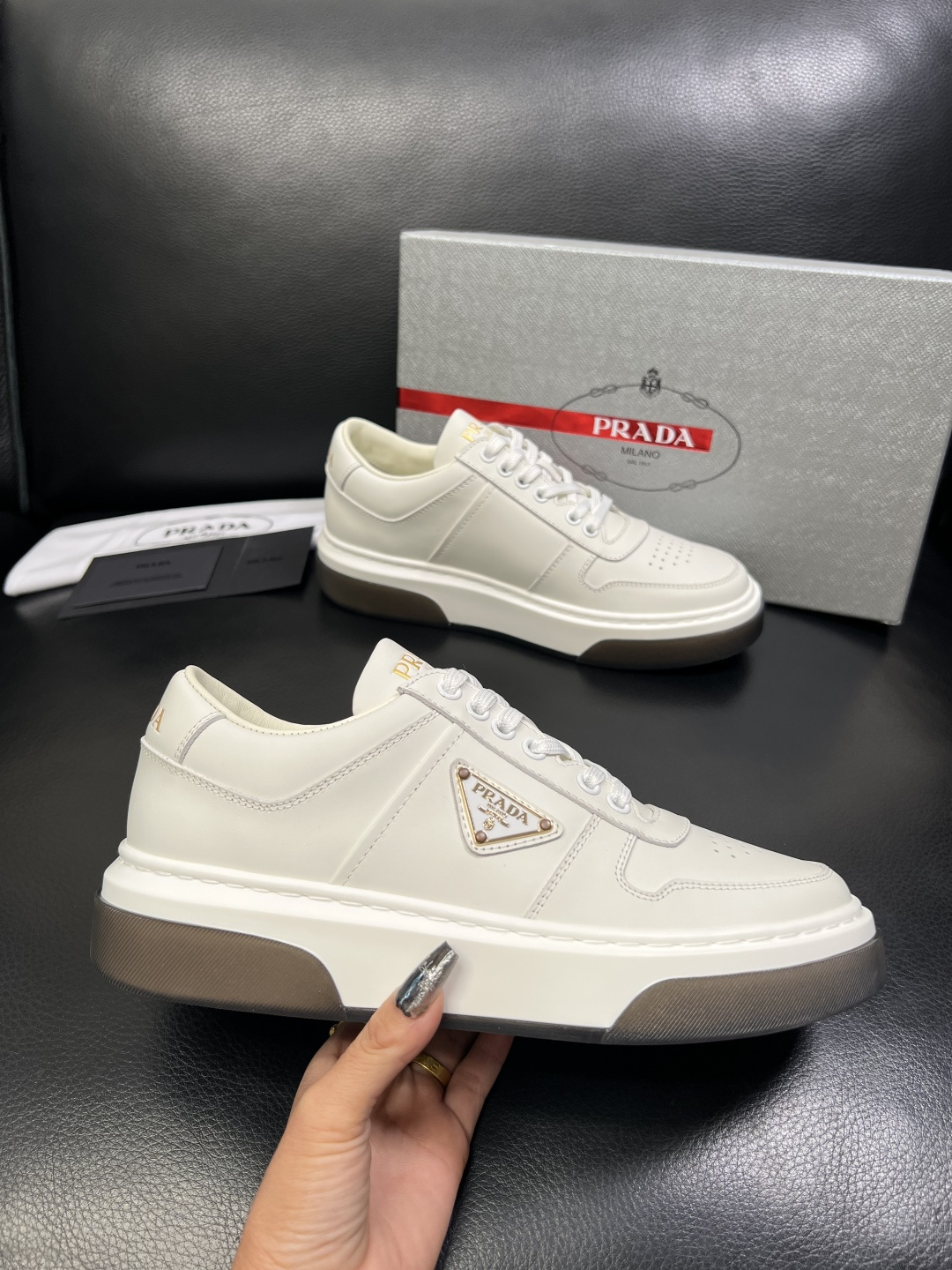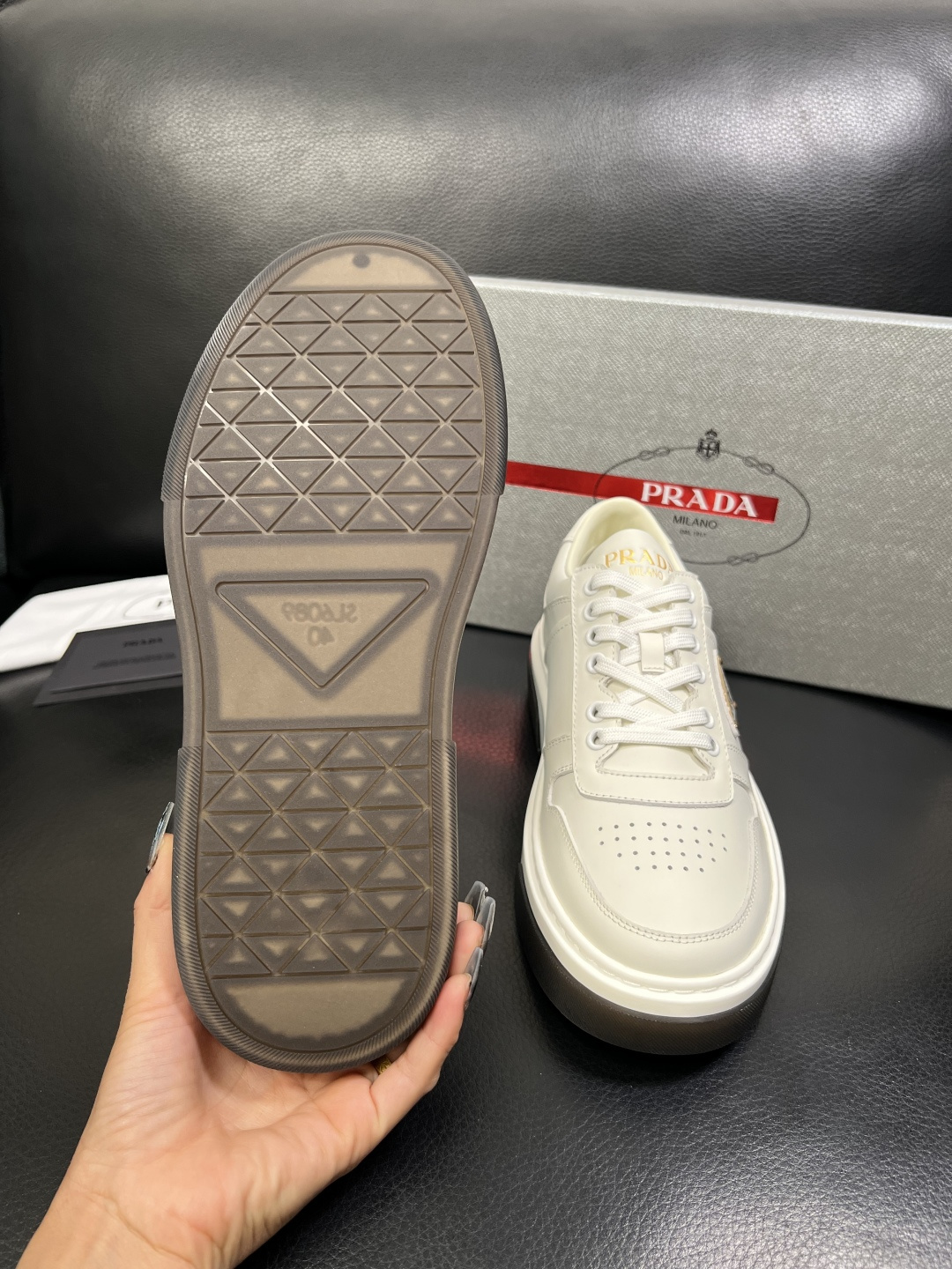 This shoes is AAAAA 1:1 quality (superb). Materials used are identical to the original ones. Prada trademark marks are indistinguishable to the authentic. Photos take by actual shoes, what you receive will be 100% same with our photos.