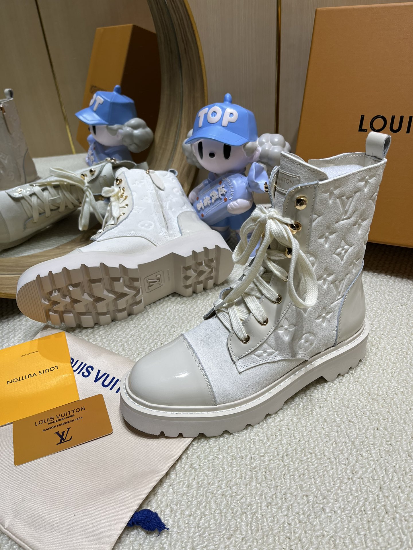 This shoes is AAAAA 1:1 quality (superb). Materials used are identical to the original ones. Louis Vuitton trademark marks are indistinguishable to the authentic. Photos take by actual shoes, what you receive will be 100% same with our photos.