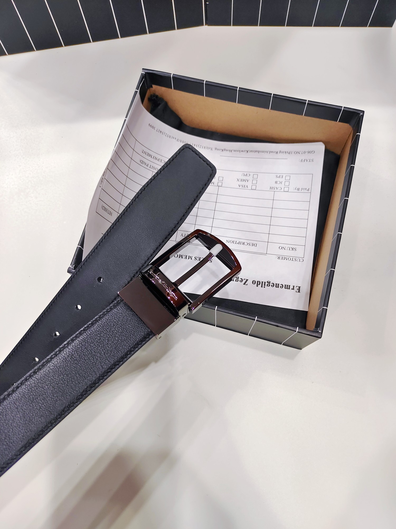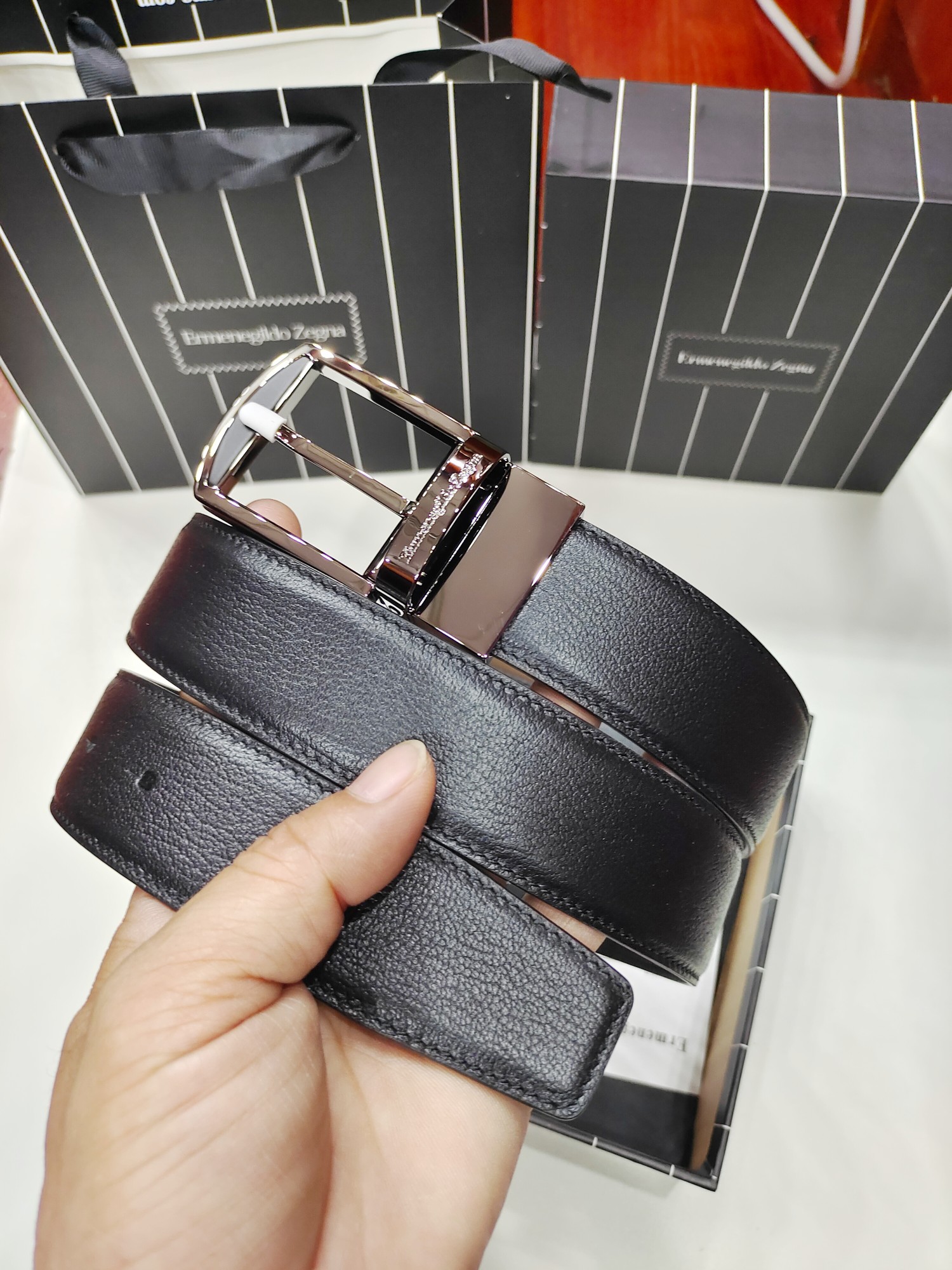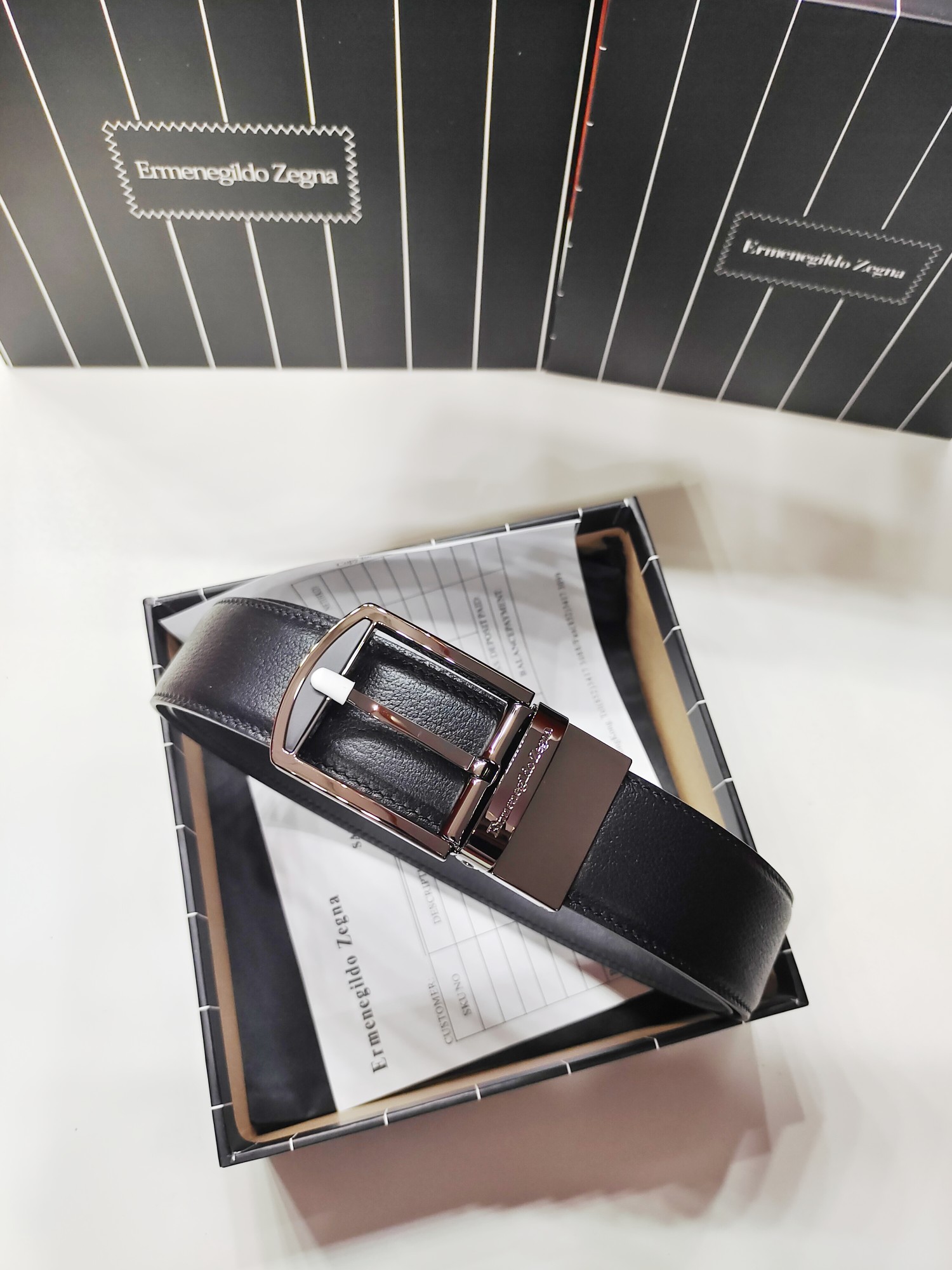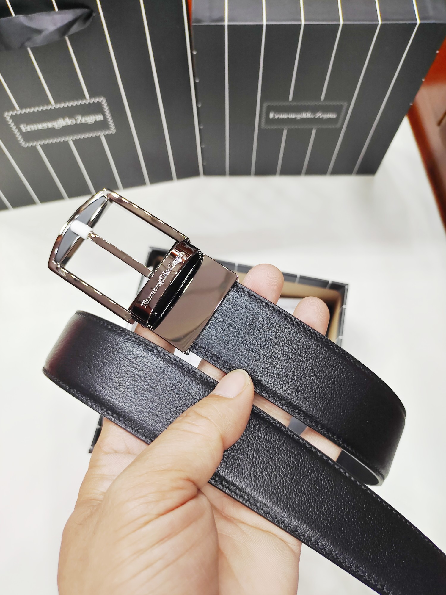 This belt is AAAAA 1:1 quality (superb). Materials used are identical to the original ones. Zegna trademark marks are indistinguishable to the authentic. Photos take by actual belt, what you receive will be 100% same with our photos.