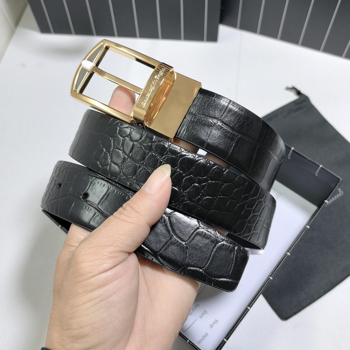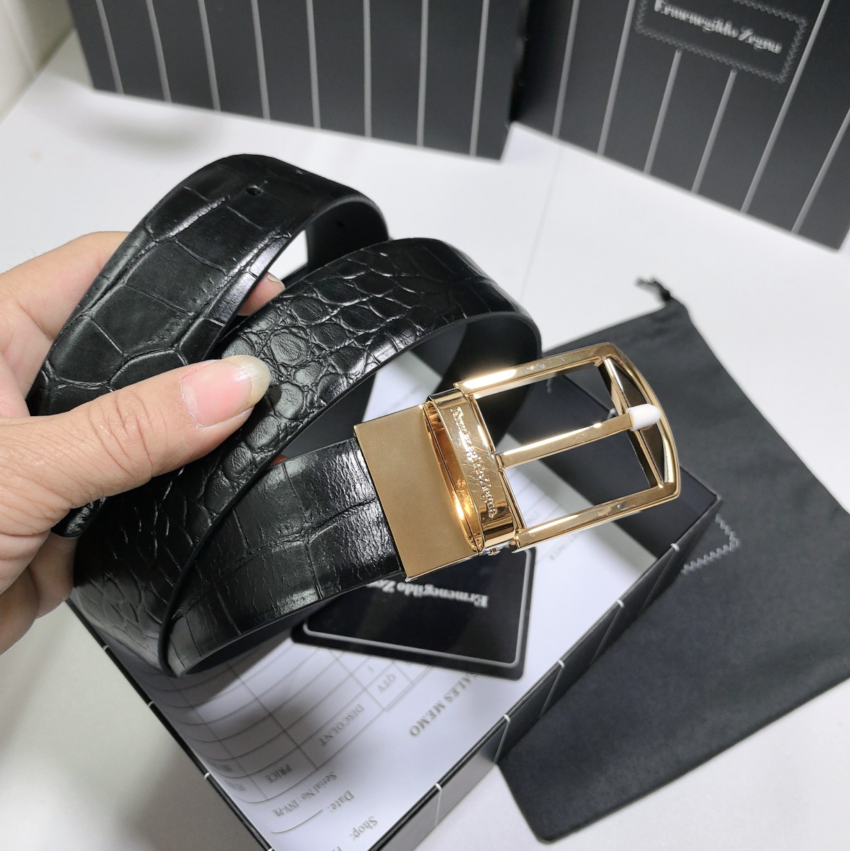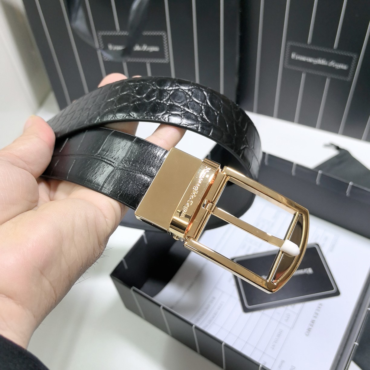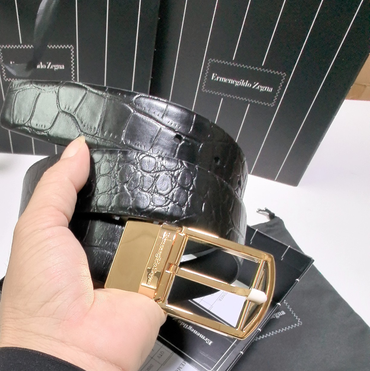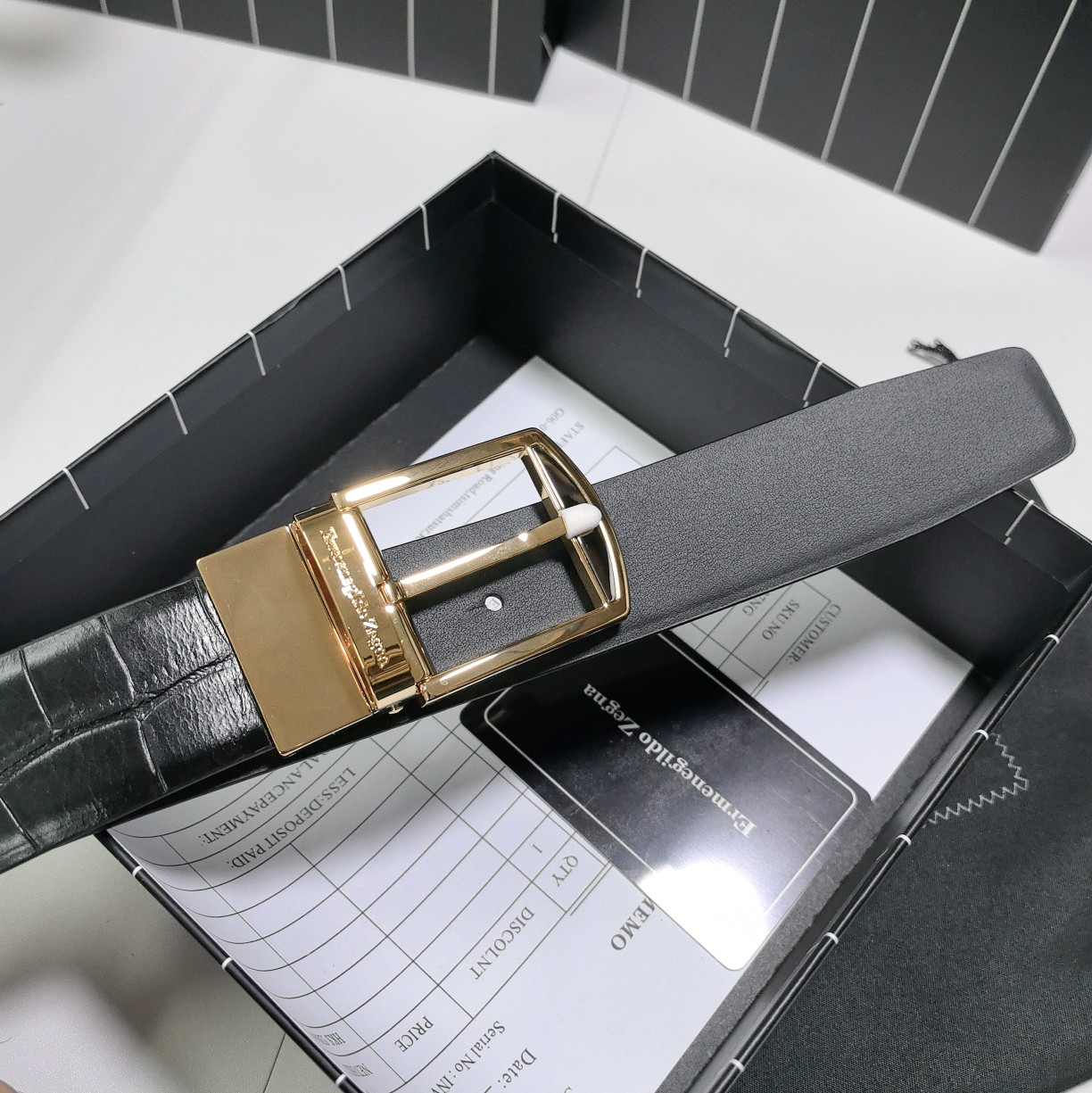 This belt is AAAAA 1:1 quality (superb). Materials used are identical to the original ones. Zegna trademark marks are indistinguishable to the authentic. Photos take by actual belt, what you receive will be 100% same with our photos.