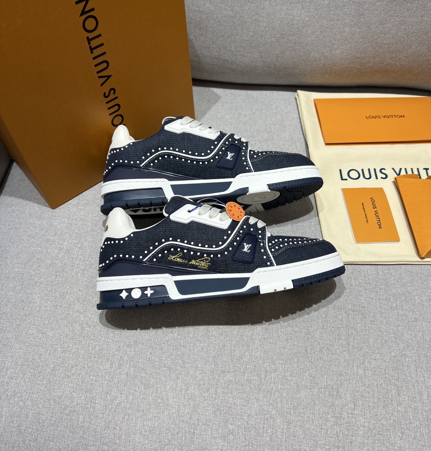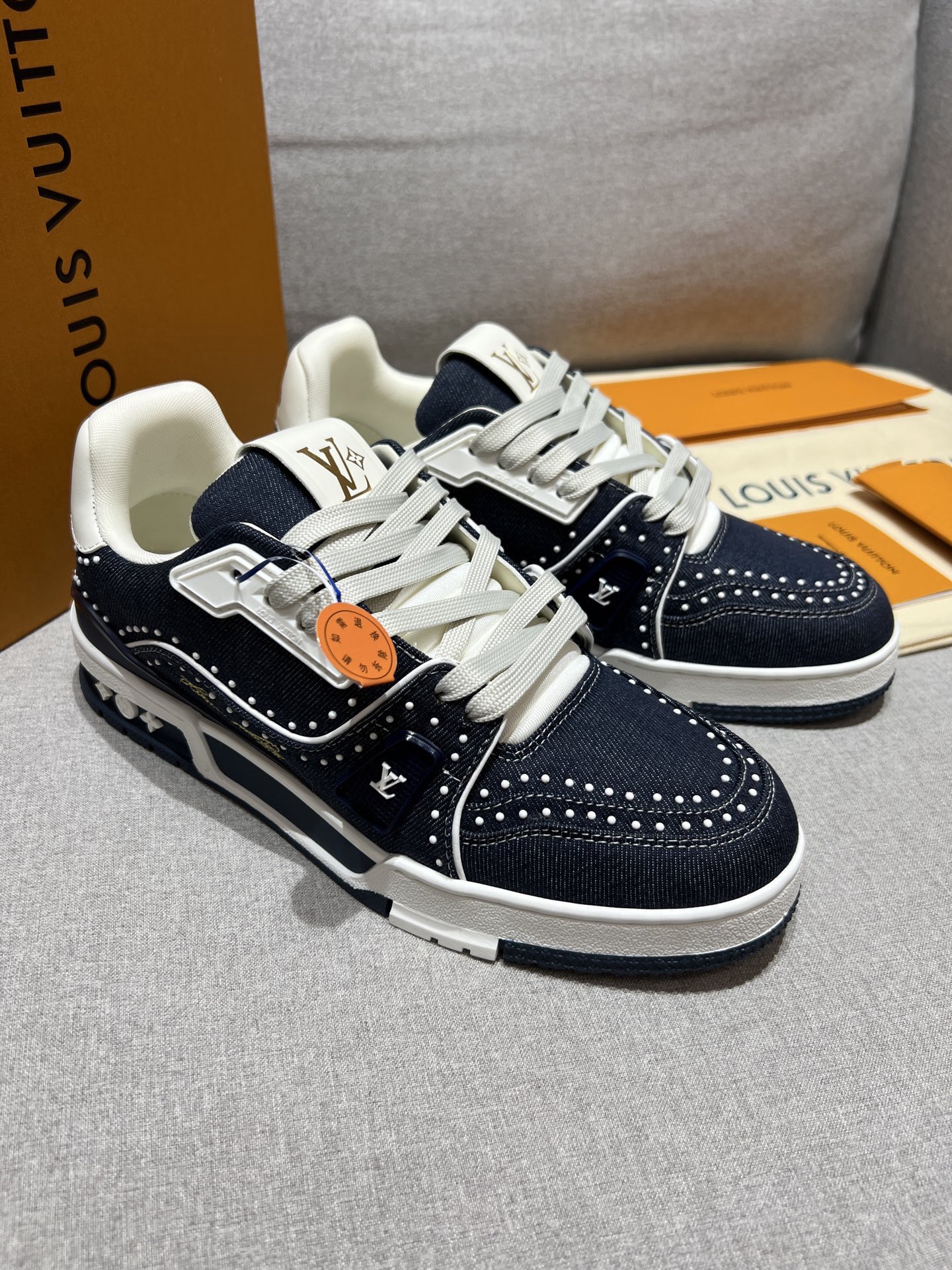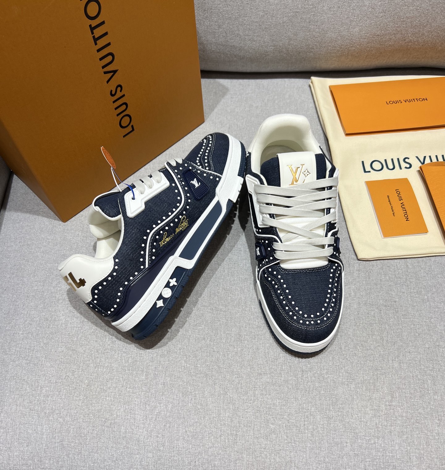 This shoes is AAAAA 1:1 quality (superb). Materials used are identical to the original ones. Louis Vuitton trademark marks are indistinguishable to the authentic. Photos take by actual shoes, what you receive will be 100% same with our photos.