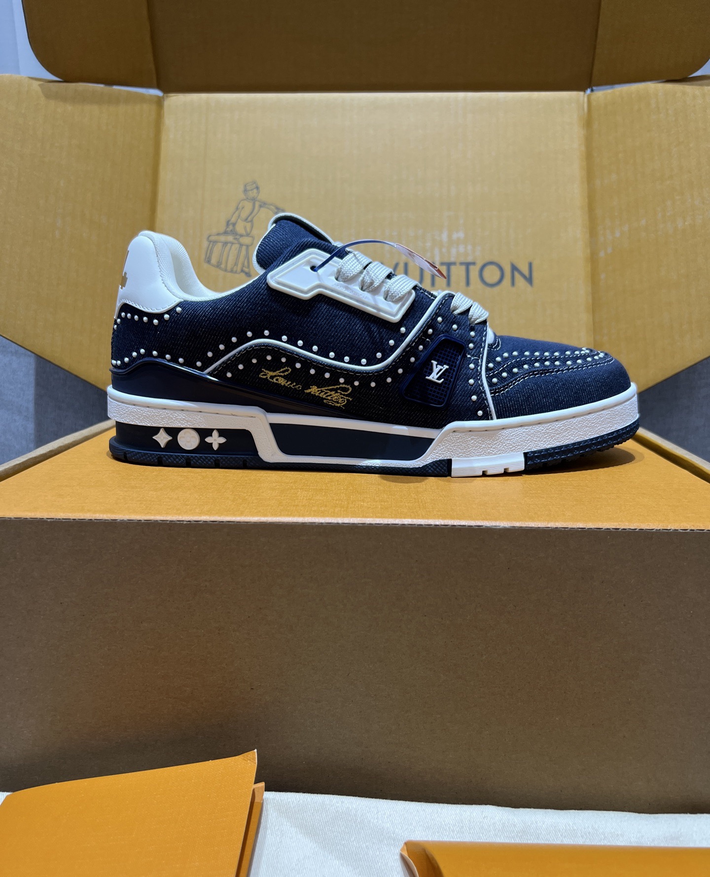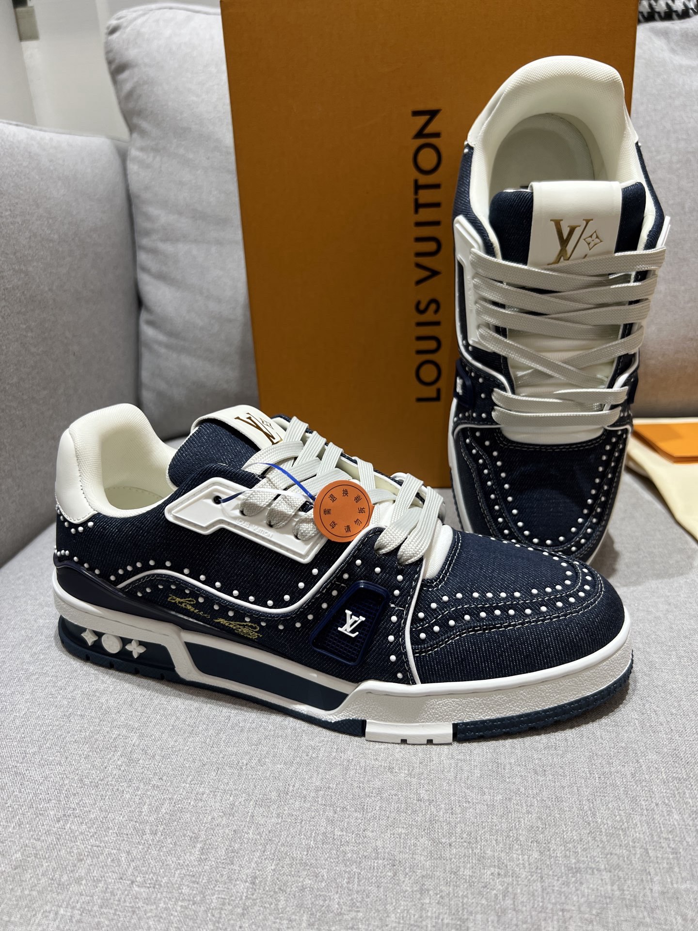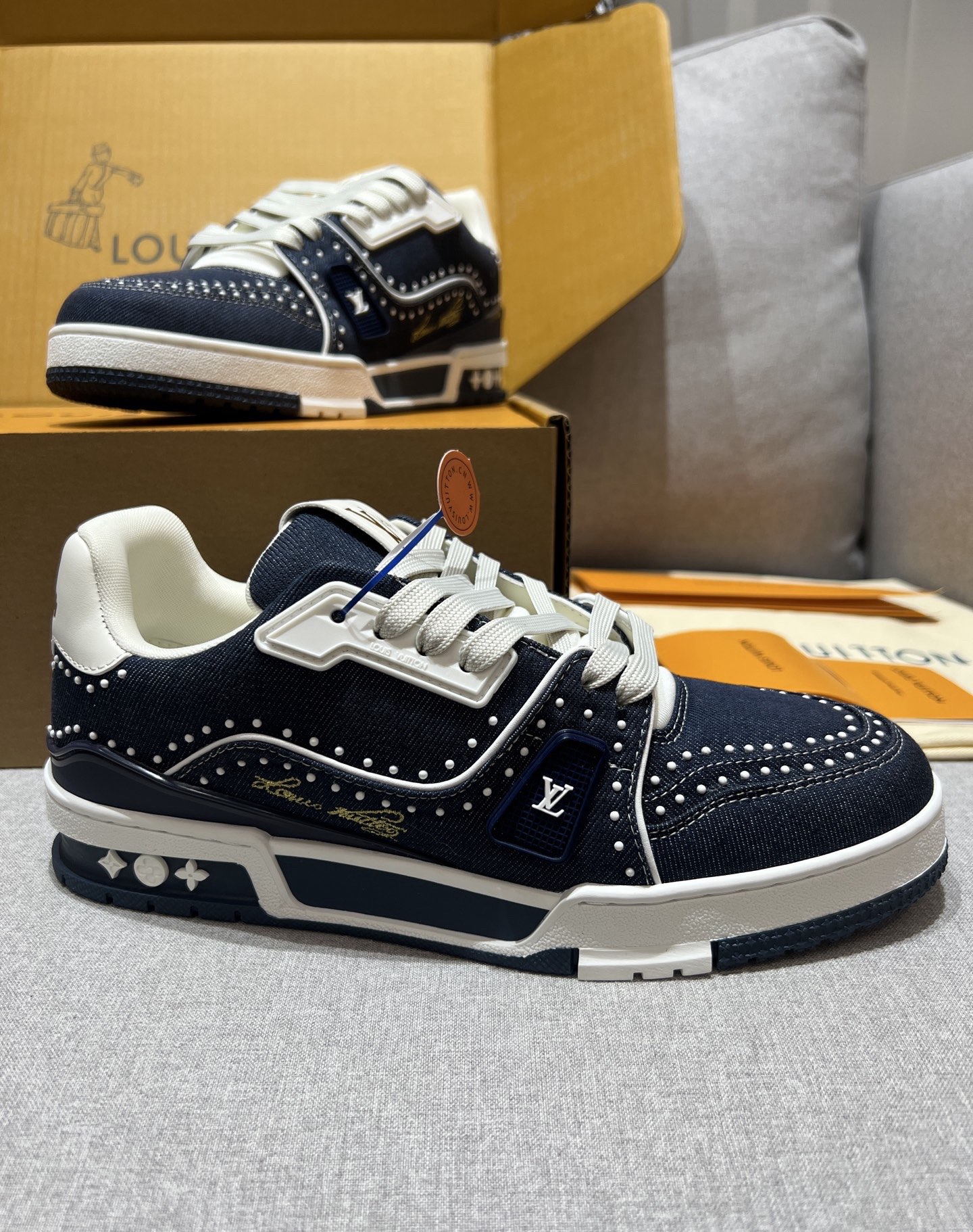 This shoes is AAAAA 1:1 quality (superb). Materials used are identical to the original ones. Louis Vuitton trademark marks are indistinguishable to the authentic. Photos take by actual shoes, what you receive will be 100% same with our photos.