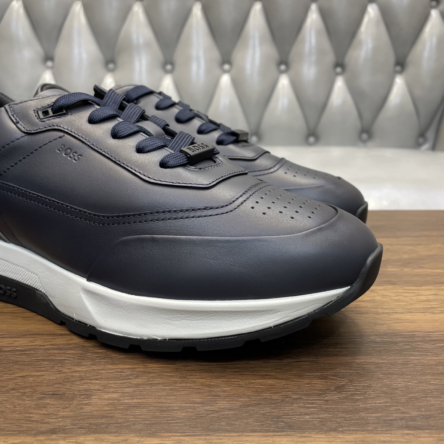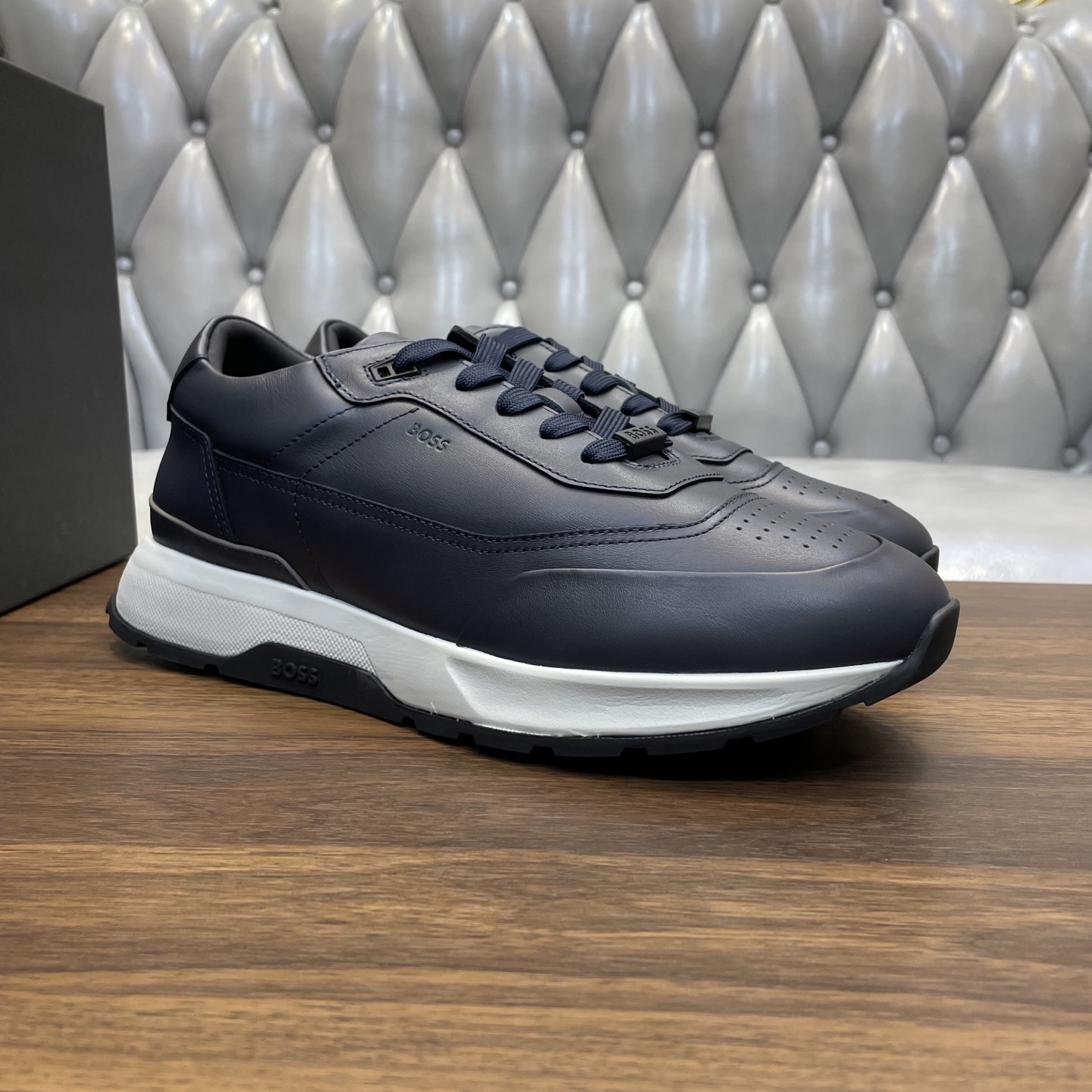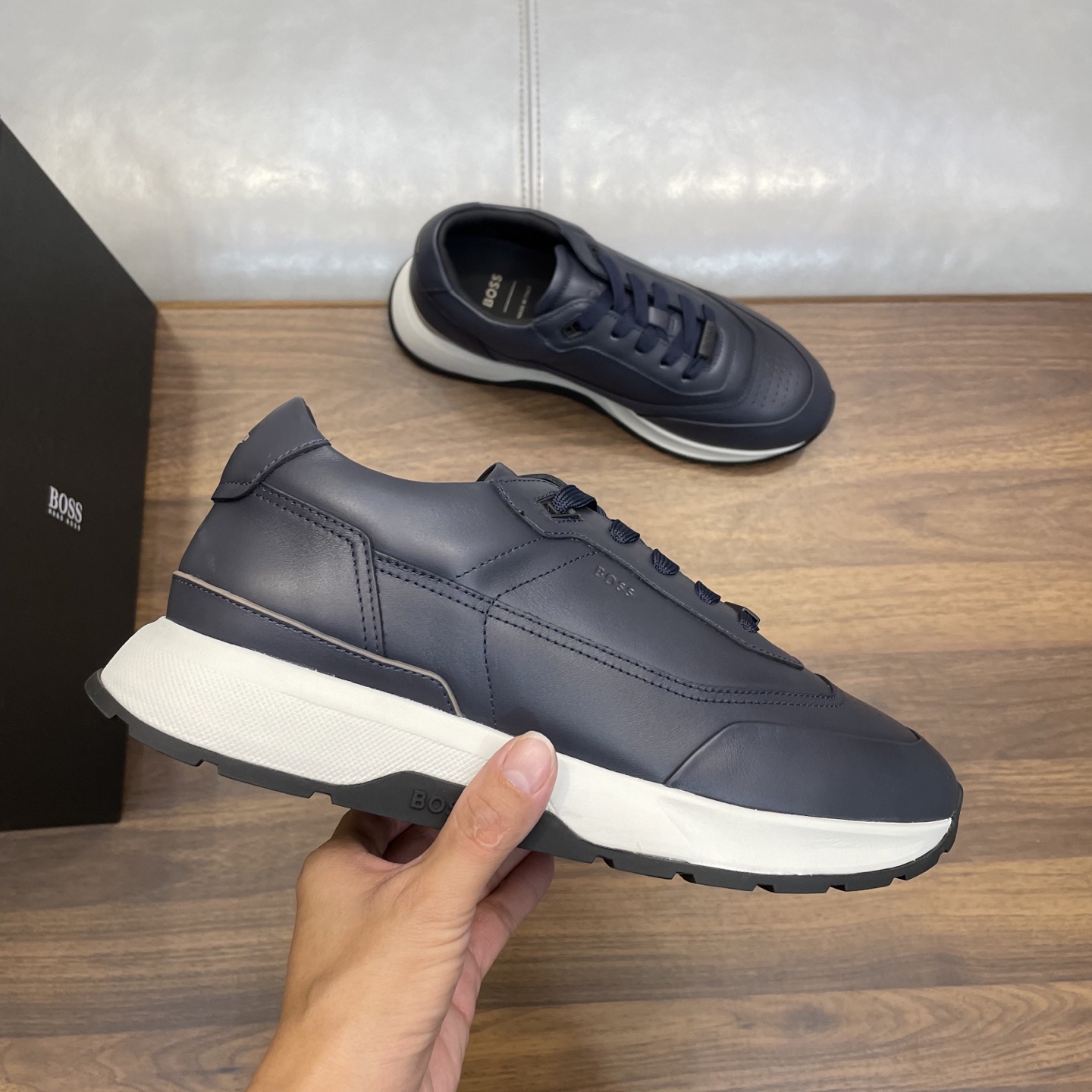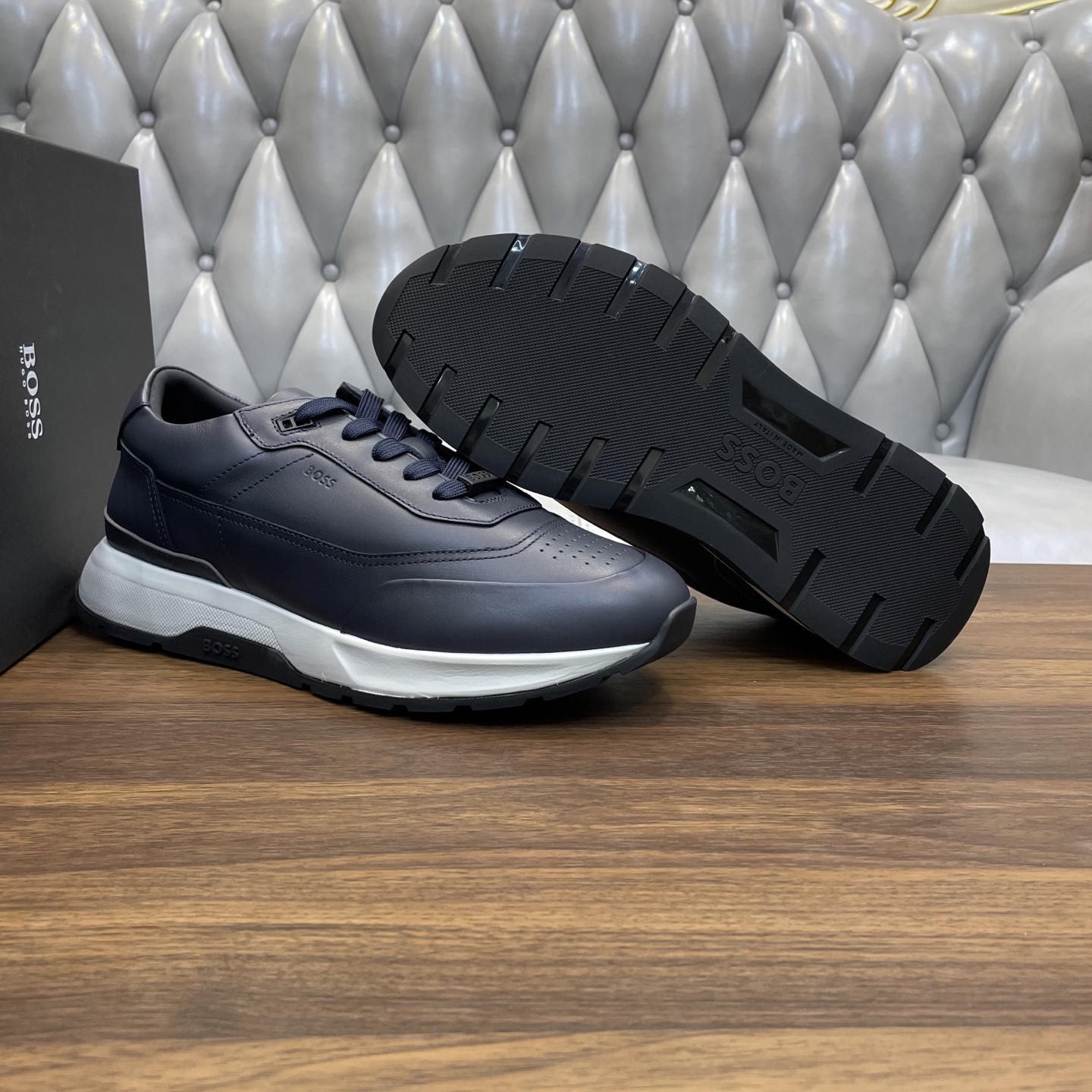 This shoes is AAAAA 1:1 quality (superb). Materials used are identical to the original ones. BOSS trademark marks are indistinguishable to the authentic. Photos take by actual shoes, what you receive will be 100% same with our photos.