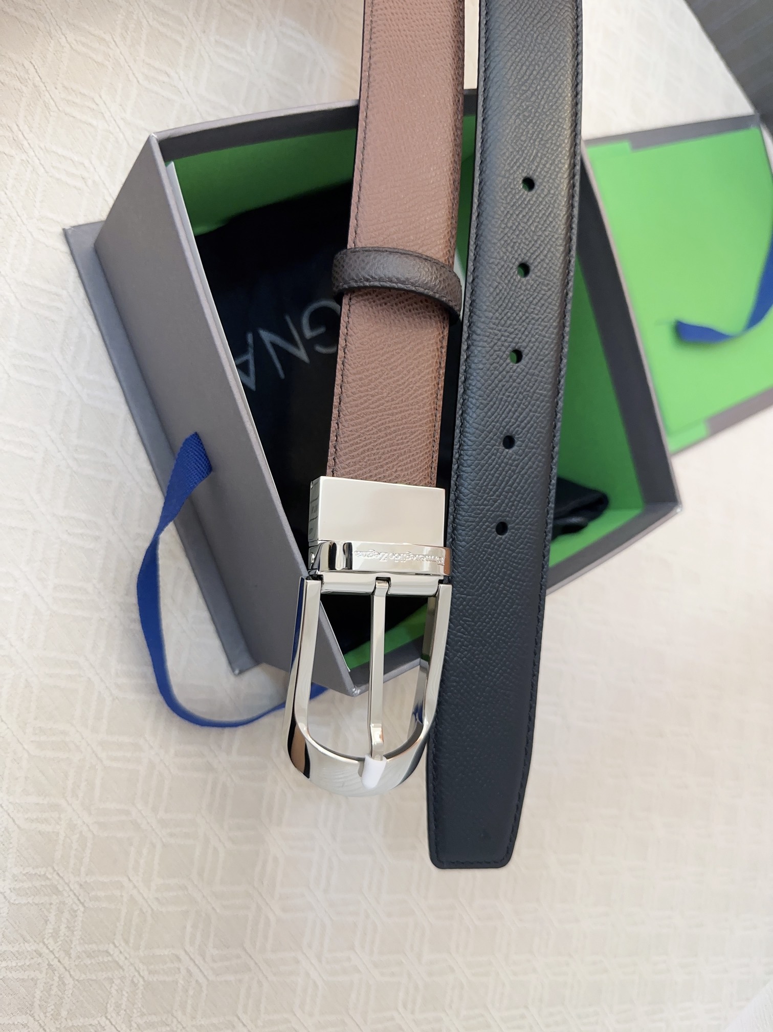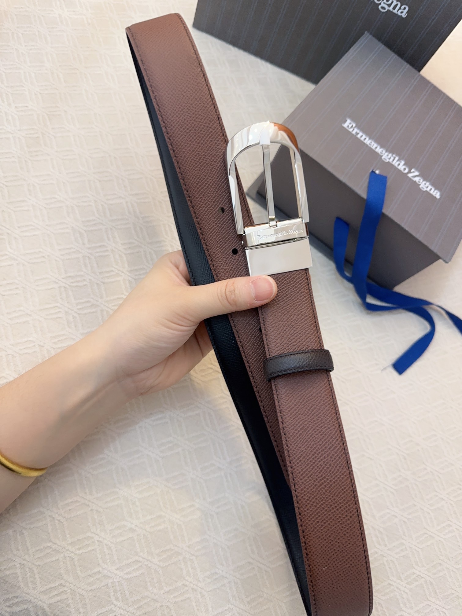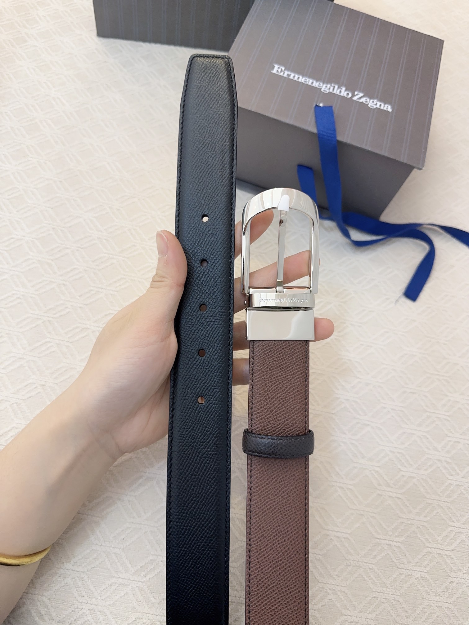 This belt is AAAAA 1:1 quality (superb). Materials used are identical to the original ones. Zegna trademark marks are indistinguishable to the authentic. Photos take by actual belt, what you receive will be 100% same with our photos.