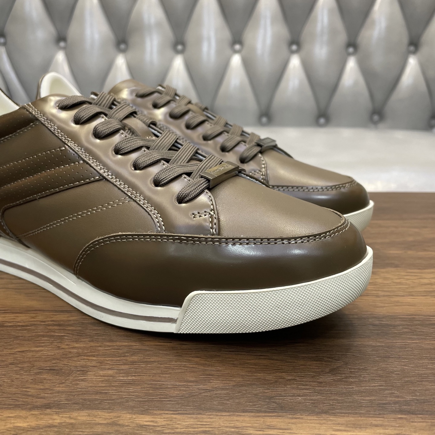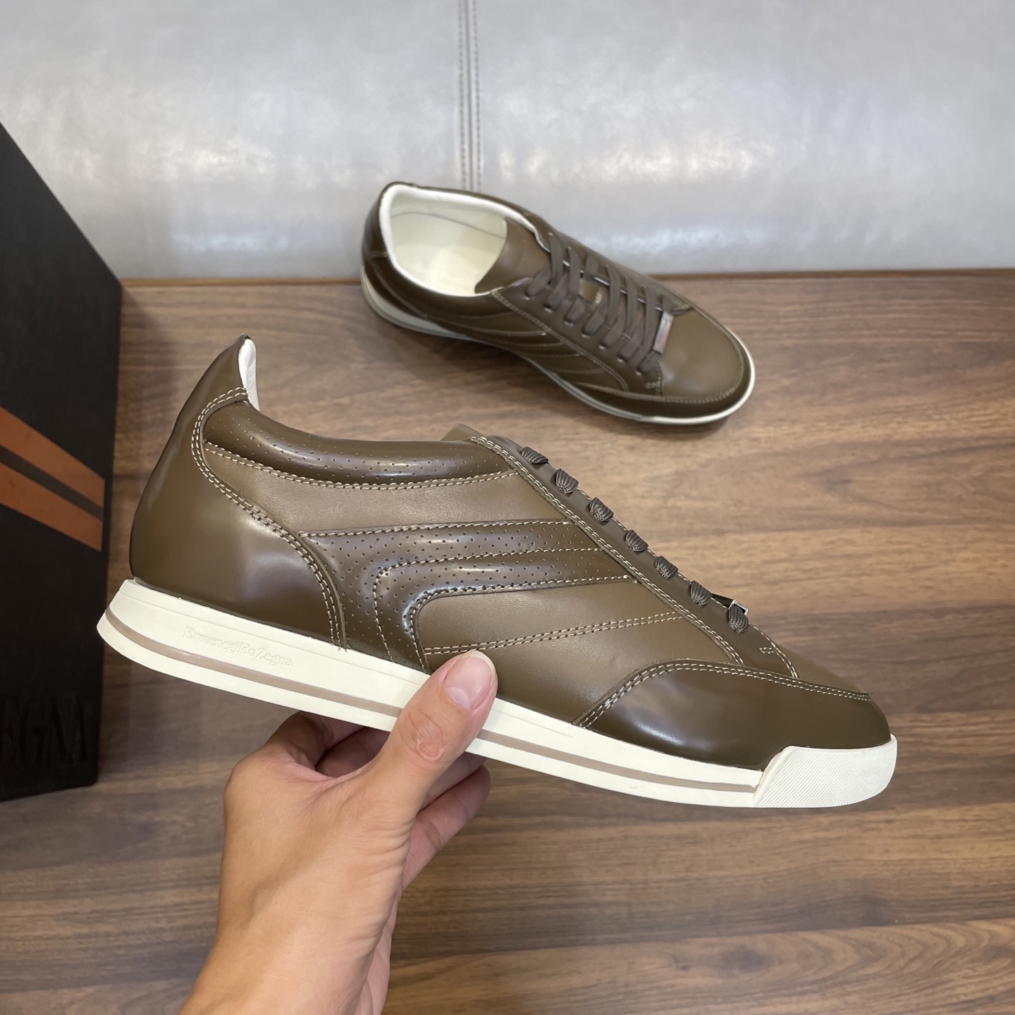 This shoes is AAAAA 1:1 quality (superb). Materials used are identical to the original ones. Zegna trademark marks are indistinguishable to the authentic. Photos take by actual shoes, what you receive will be 100% same with our photos.