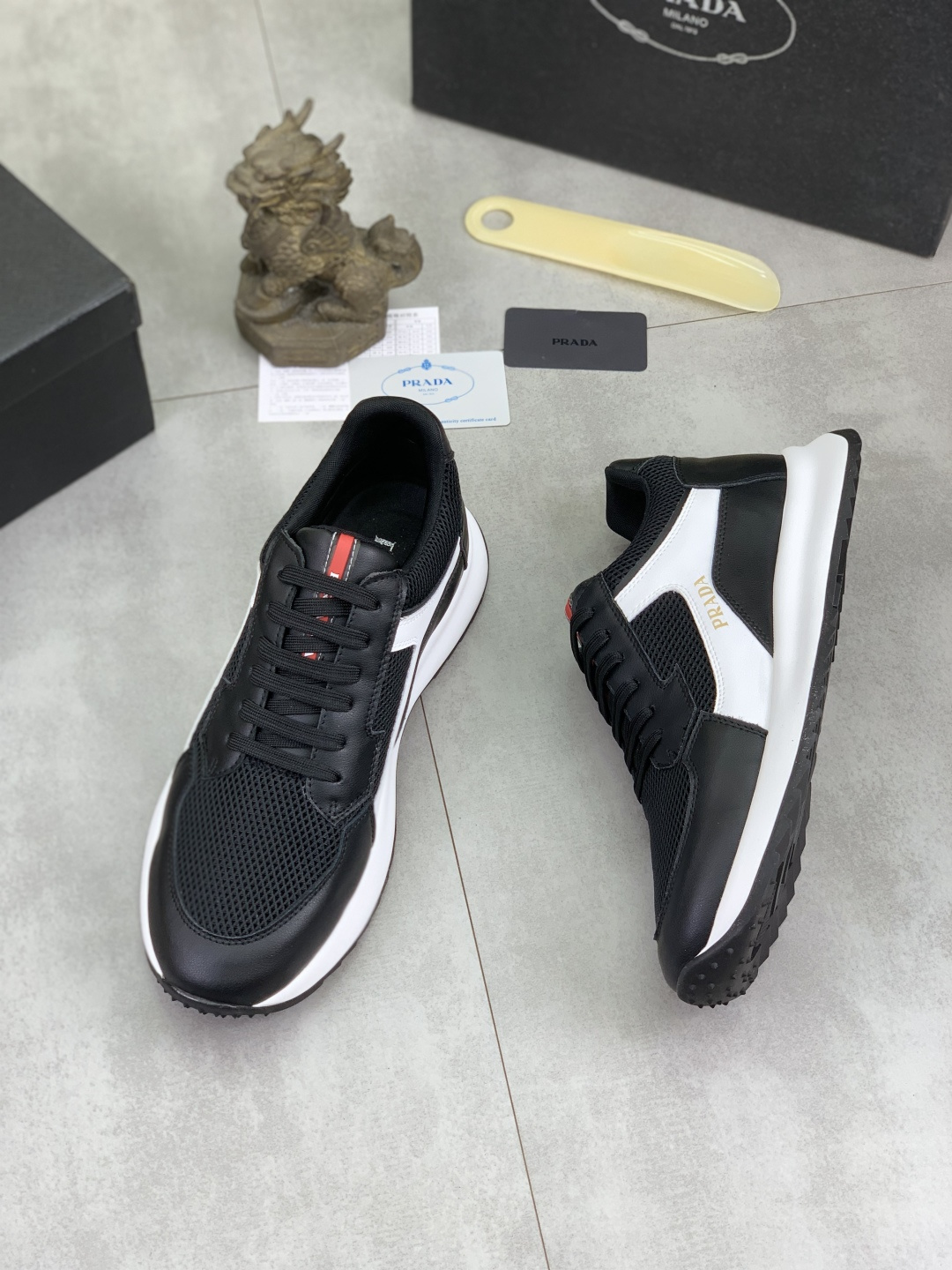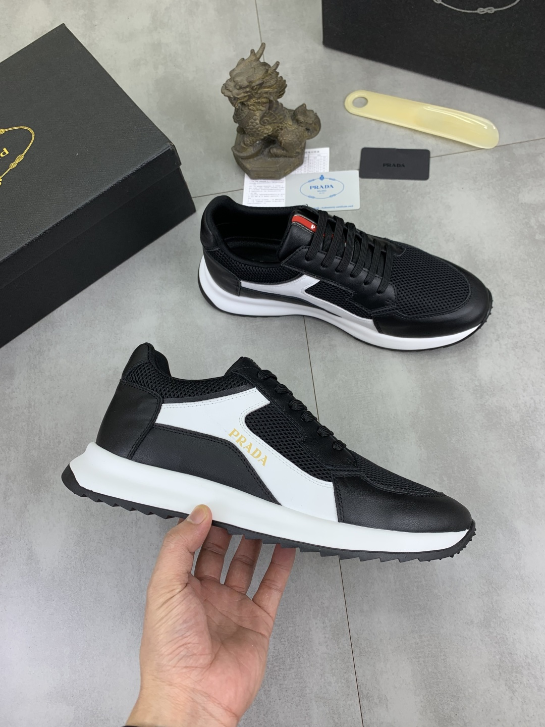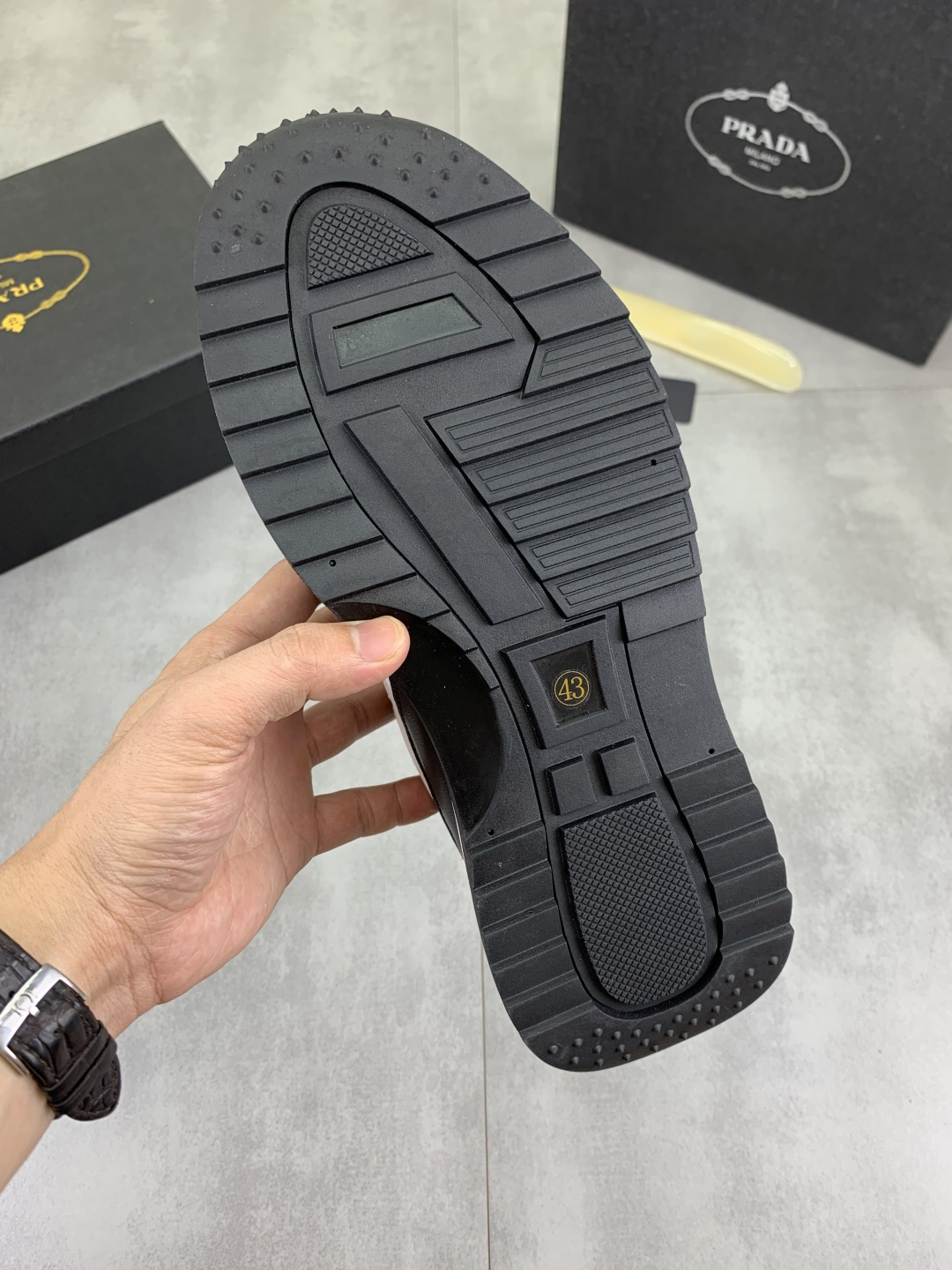 This shoes is AAAAA 1:1 quality (superb). Materials used are identical to the original ones. Prada trademark marks are indistinguishable to the authentic. Photos take by actual shoes, what you receive will be 100% same with our photos.