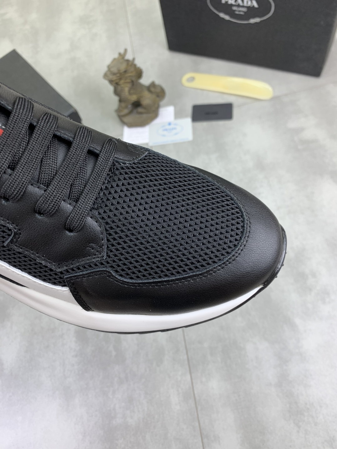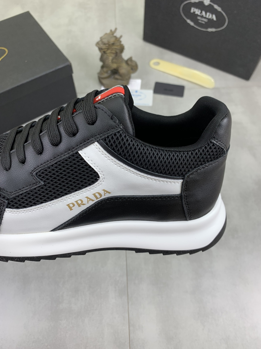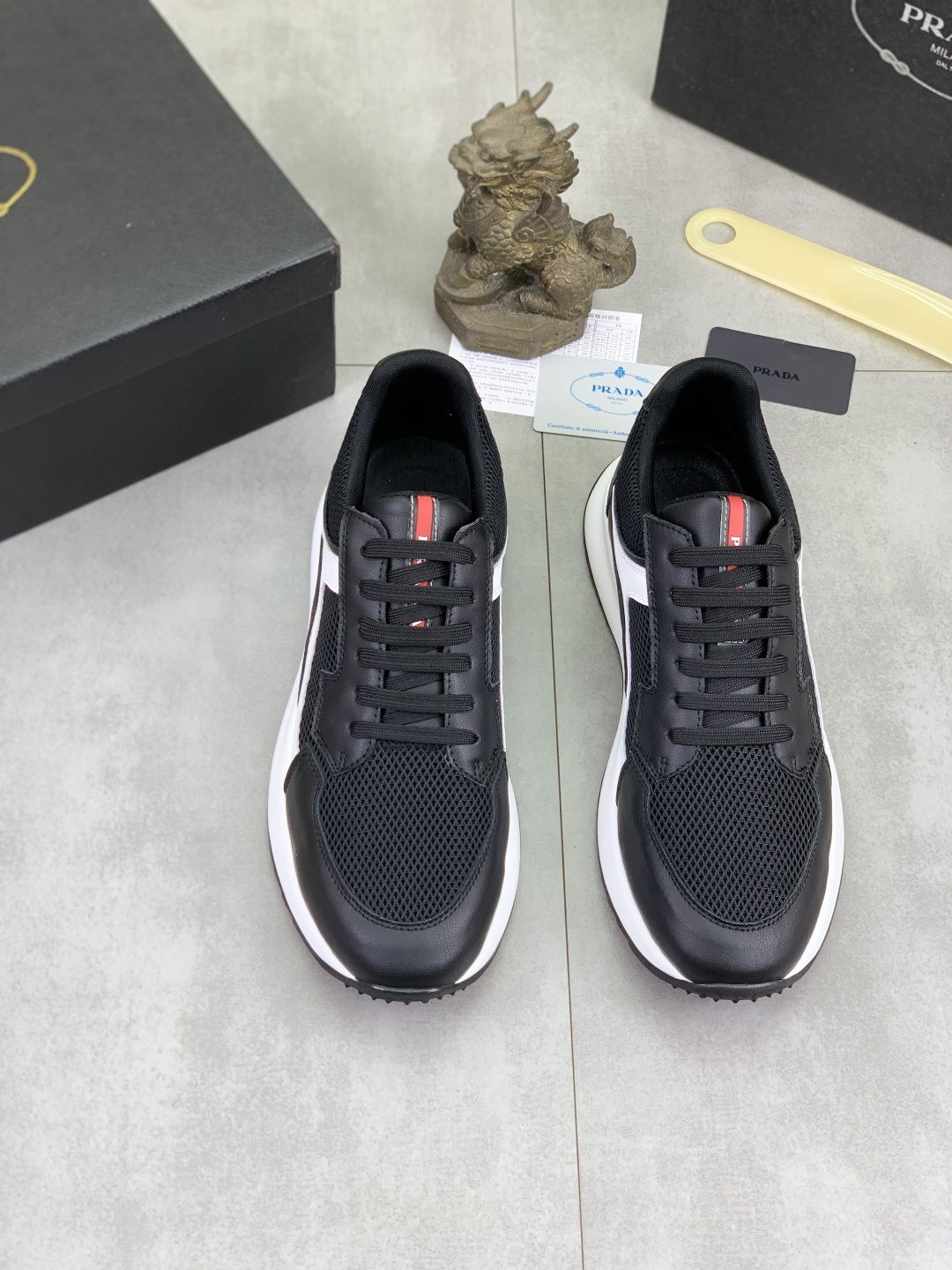 This shoes is AAAAA 1:1 quality (superb). Materials used are identical to the original ones. Prada trademark marks are indistinguishable to the authentic. Photos take by actual shoes, what you receive will be 100% same with our photos.