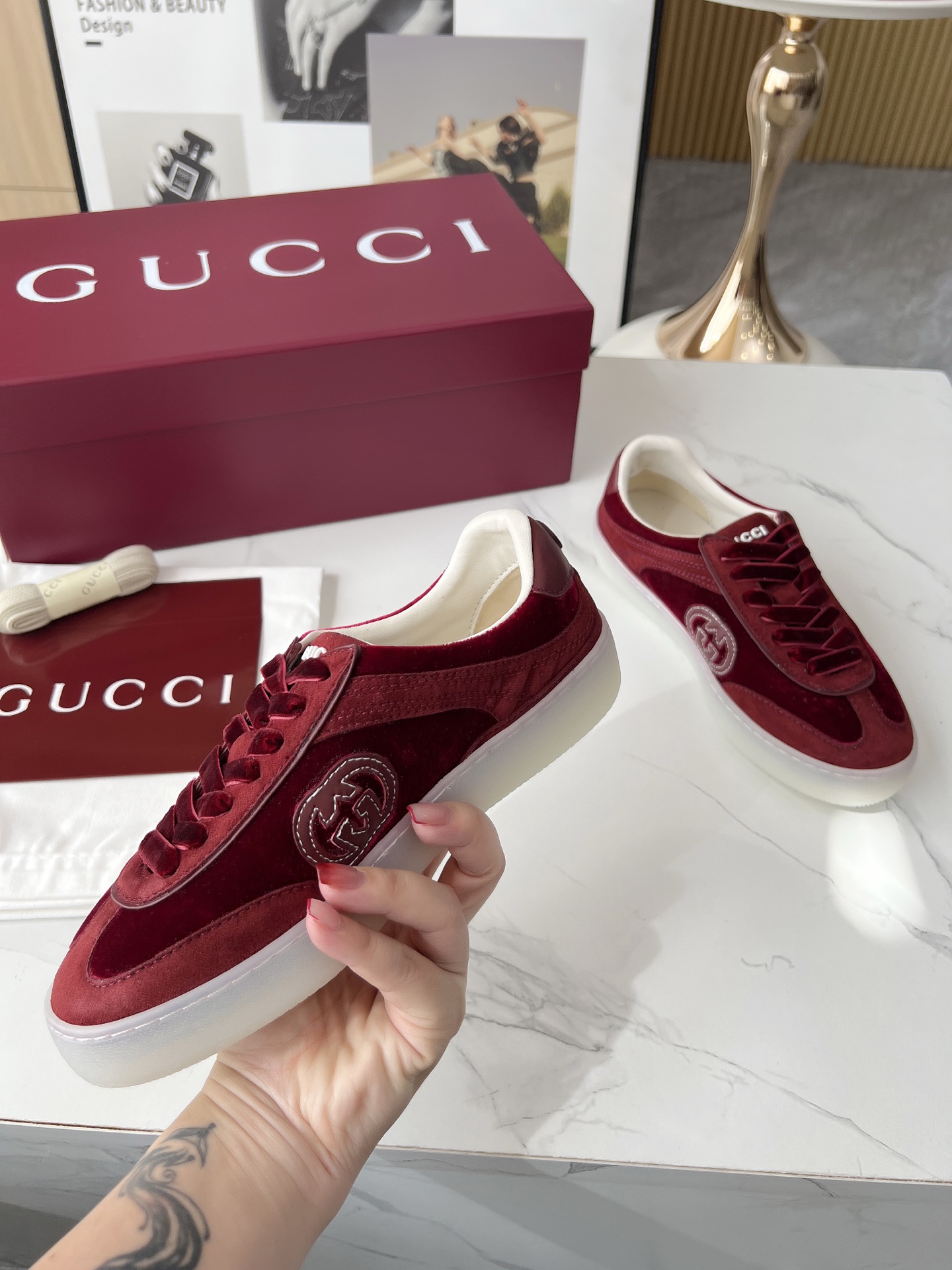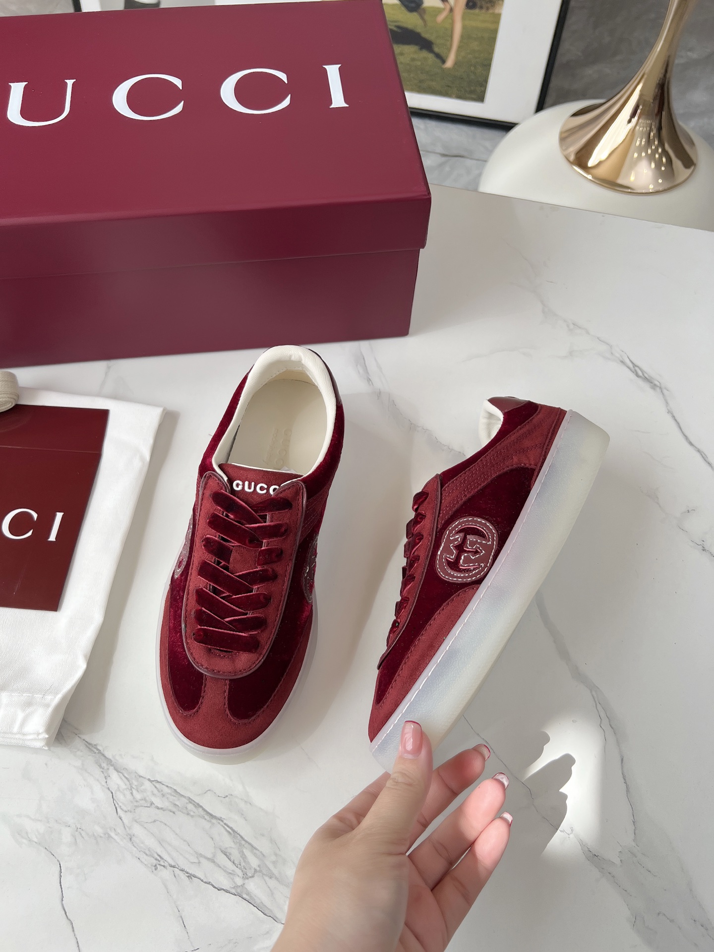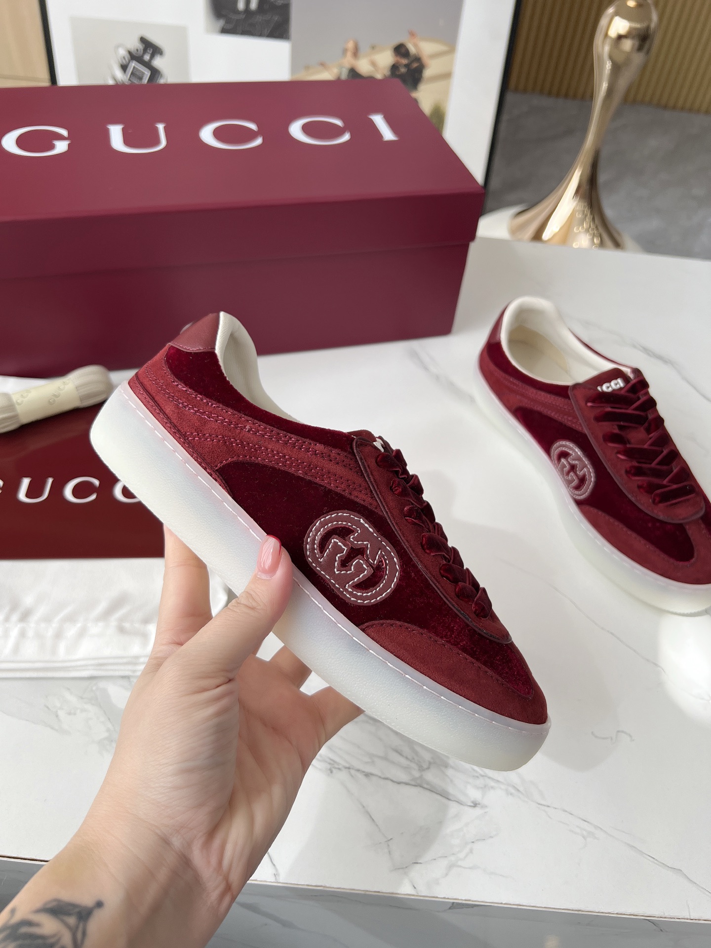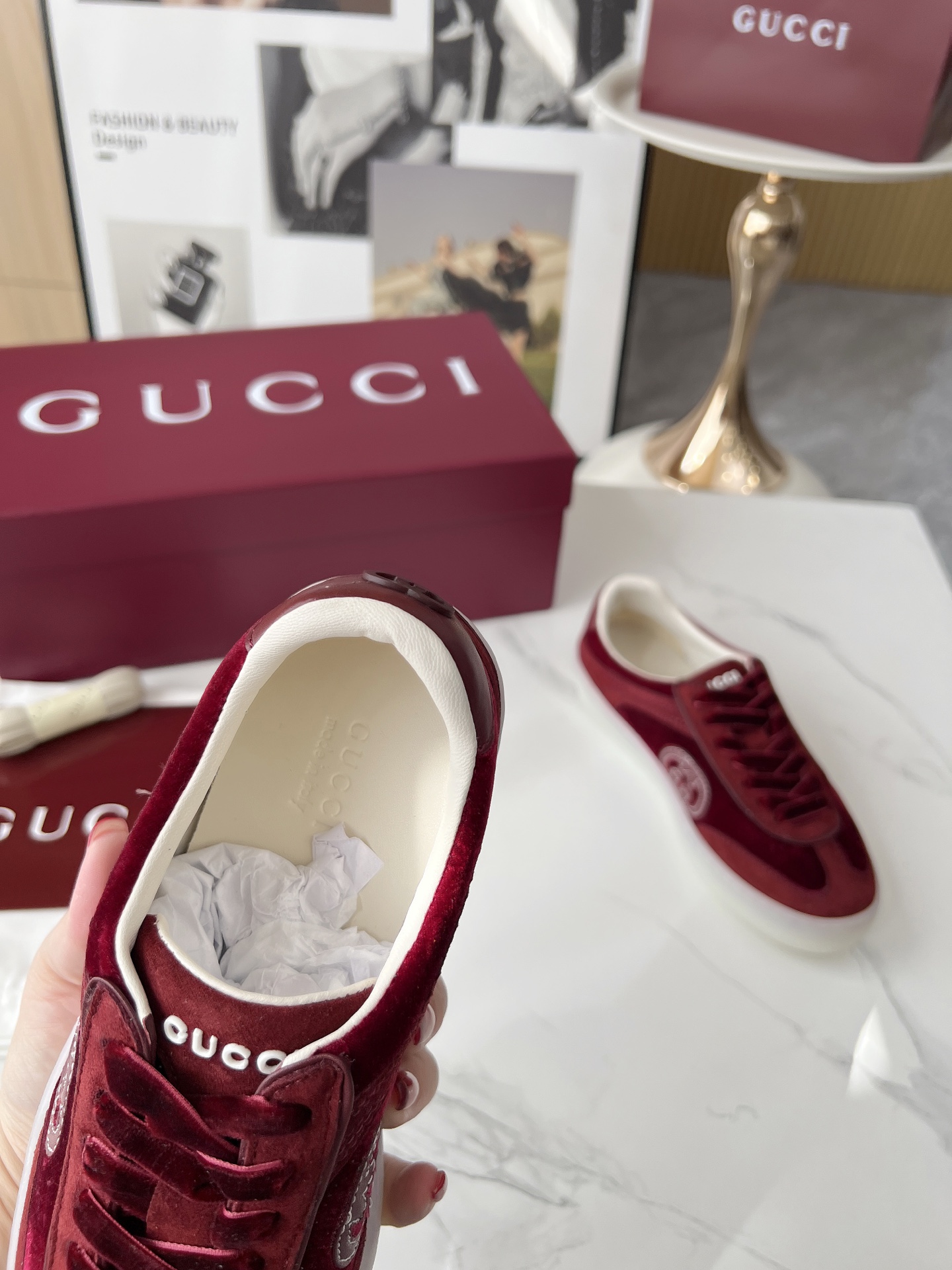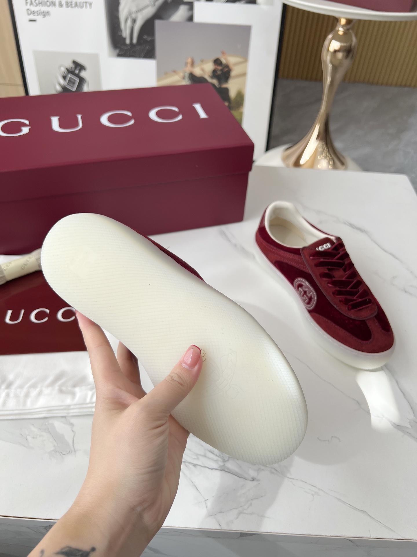 This shoes is AAAAA 1:1 quality (superb). Materials used are identical to the original ones. Gucci trademark marks are indistinguishable to the authentic. Photos take by actual shoes, what you receive will be 100% same with our photos.