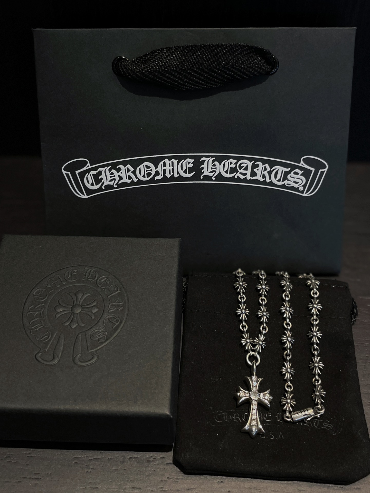 This jewelry is AAAAA 1:1 quality (superb). Materials used are identical to the original ones. Chrome Hearts trademark marks are indistinguishable to the authentic. Photos take by actual jewelry, what you receive will be 100% same with our photos.