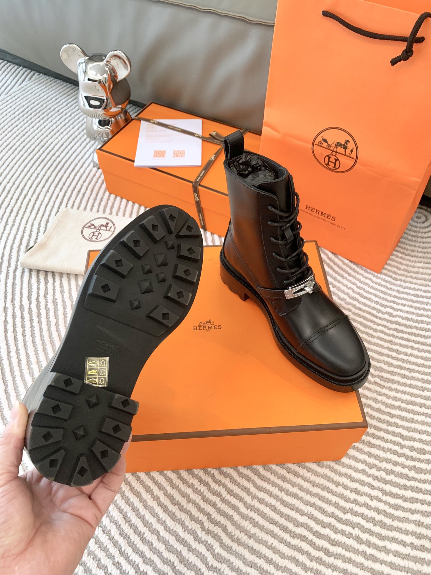 This shoes is AAAAA 1:1 quality (superb). Materials used are identical to the original ones. Hermes trademark marks are indistinguishable to the authentic. Photos take by actual shoes, what you receive will be 100% same with our photos.