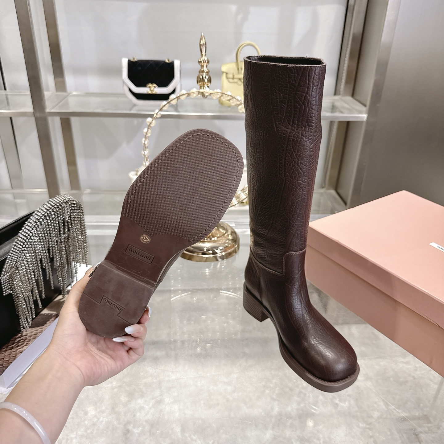 This shoes is AAAAA 1:1 quality (superb). Materials used are identical to the original ones. Miu Miu trademark marks are indistinguishable to the authentic. Photos take by actual shoes, what you receive will be 100% same with our photos.