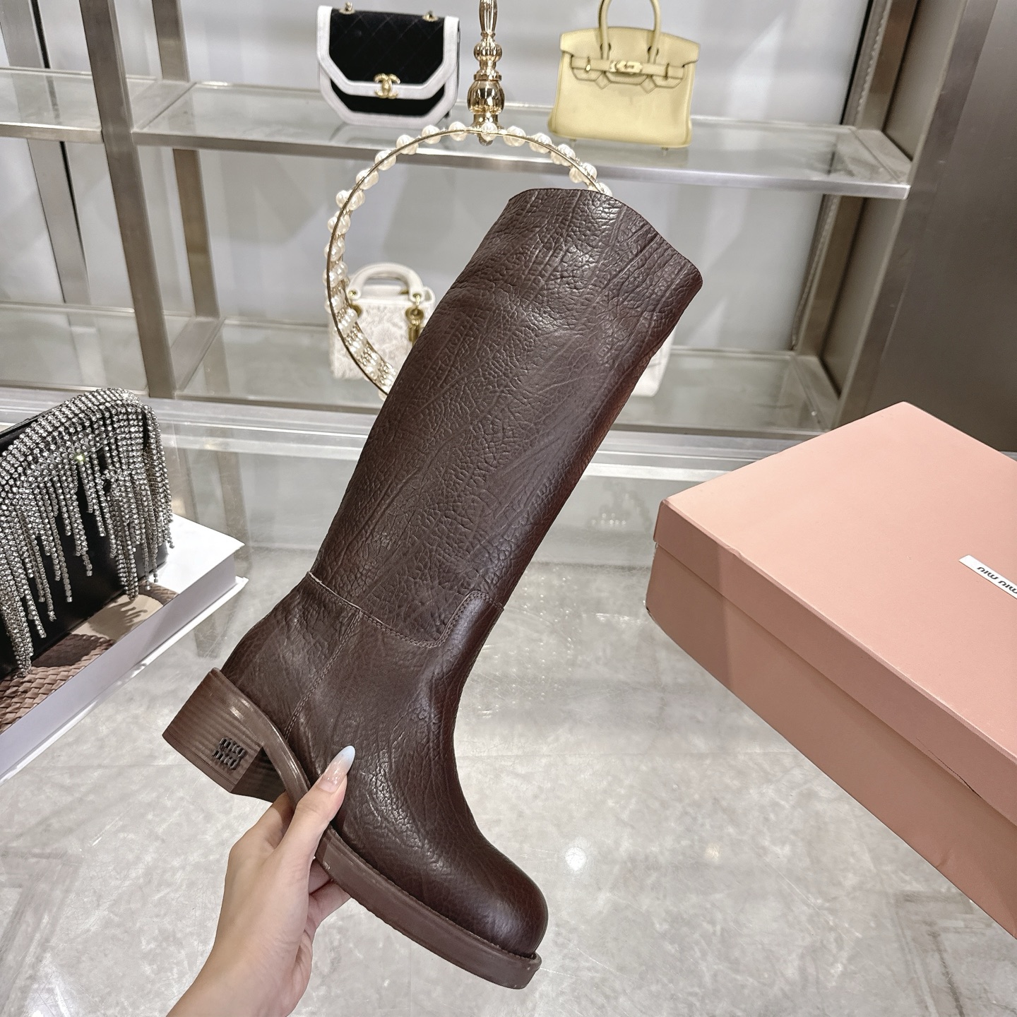NO:3836992. The shoes is from Miu Miu designer.
