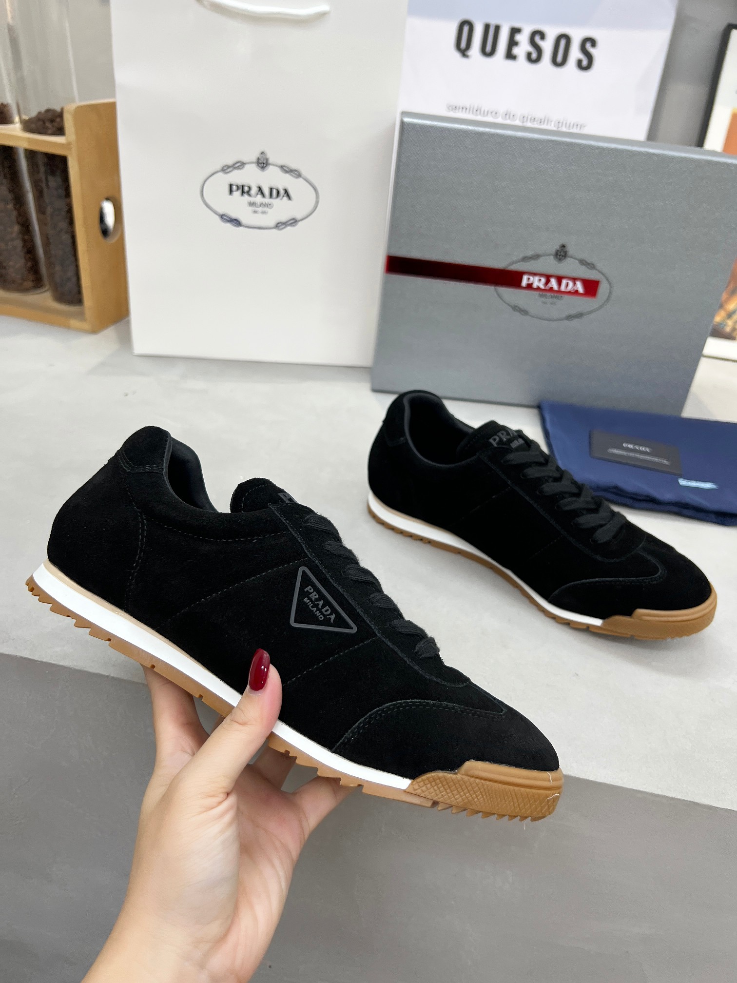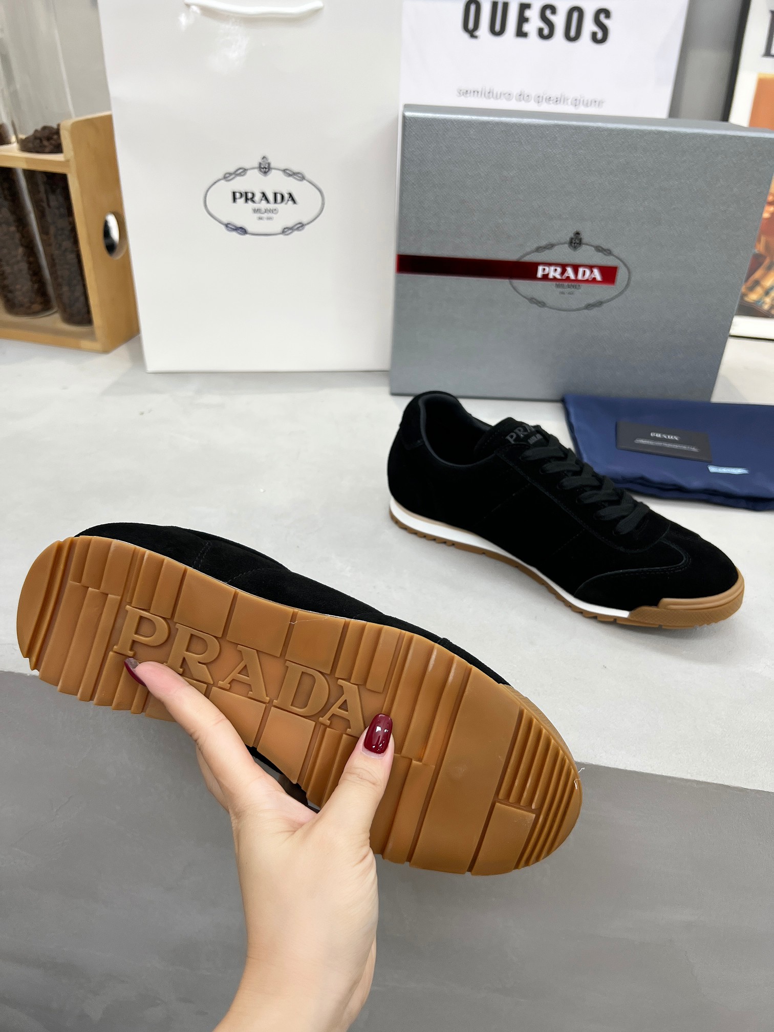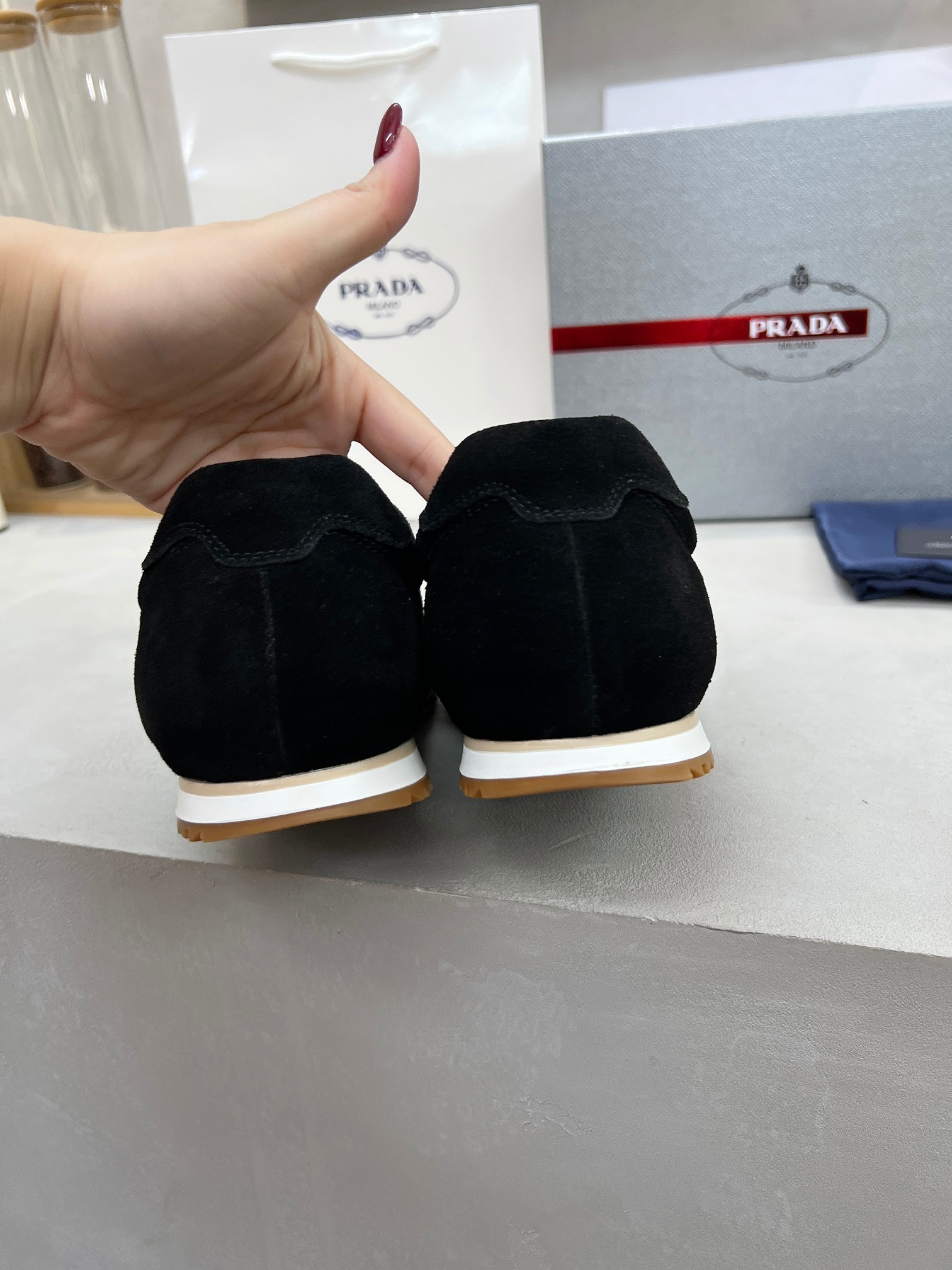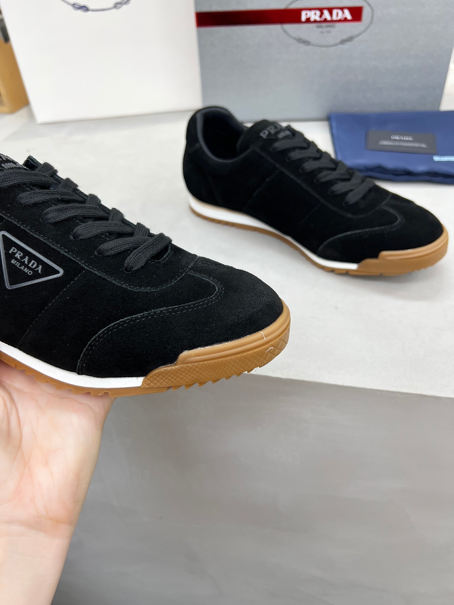 This shoes is AAAAA 1:1 quality (superb). Materials used are identical to the original ones. Prada trademark marks are indistinguishable to the authentic. Photos take by actual shoes, what you receive will be 100% same with our photos.