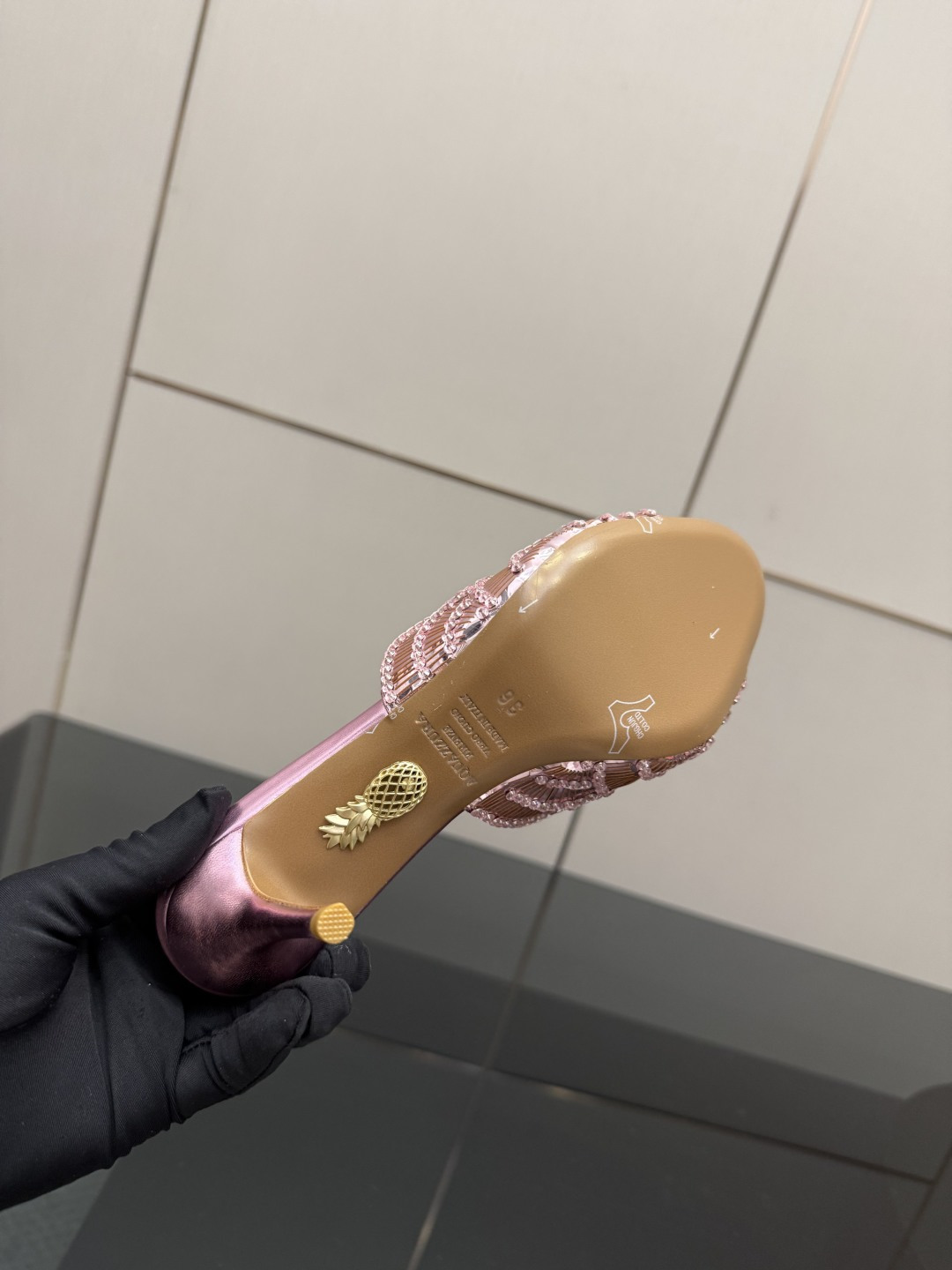 This shoes is AAAAA 1:1 quality (superb). Materials used are identical to the original ones. Aquazzura trademark marks are indistinguishable to the authentic. Photos take by actual shoes, what you receive will be 100% same with our photos.