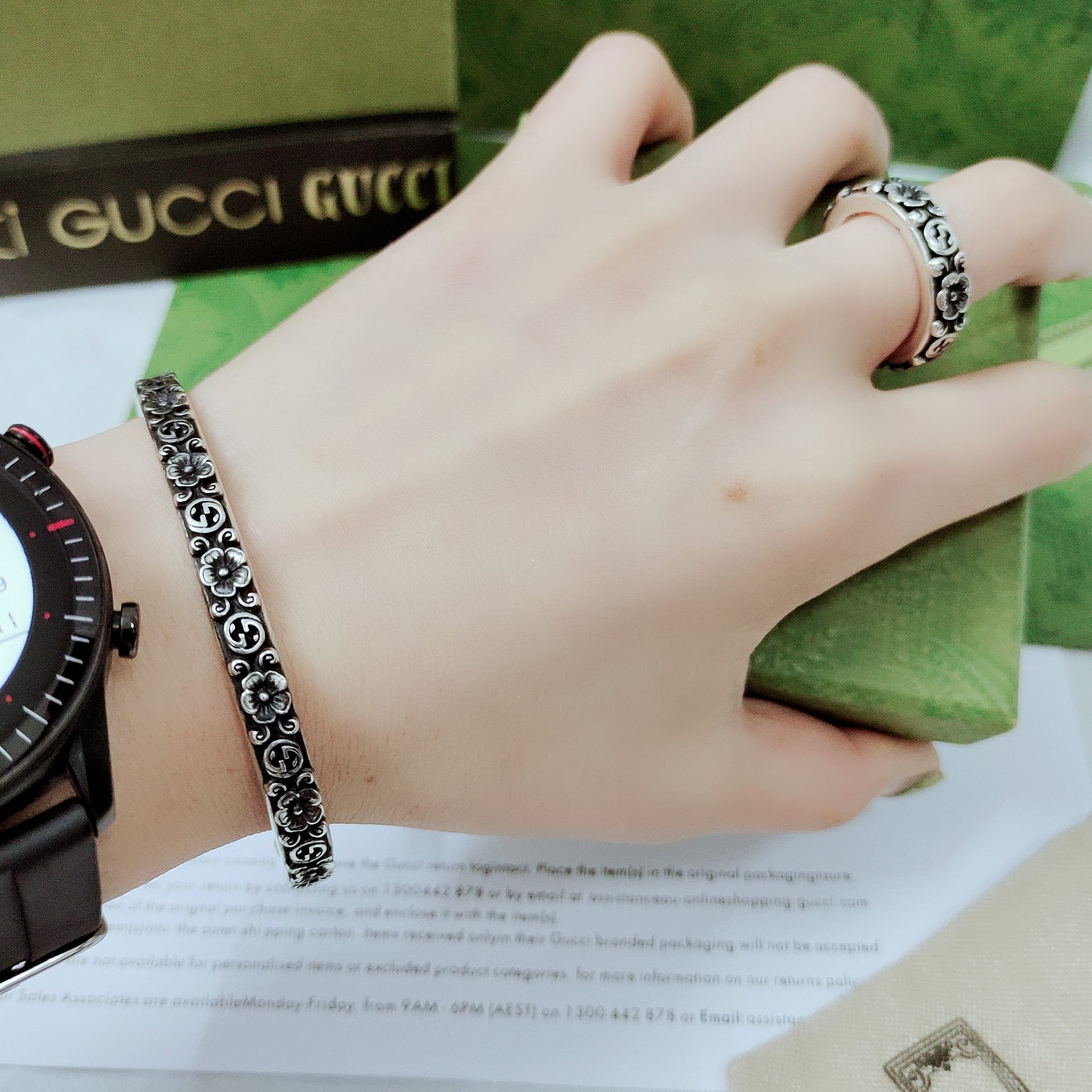 This jewelry is AAAAA 1:1 quality (superb). Materials used are identical to the original ones. Gucci trademark marks are indistinguishable to the authentic. Photos take by actual jewelry, what you receive will be 100% same with our photos.