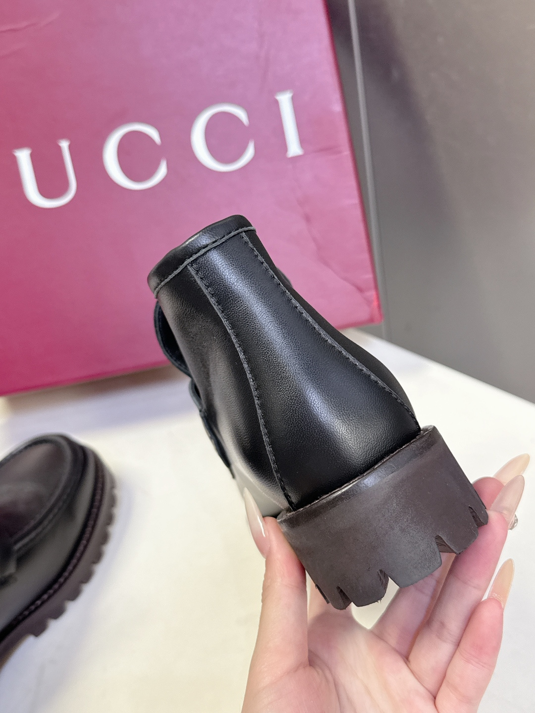 This shoes is AAAAA 1:1 quality (superb). Materials used are identical to the original ones. Gucci trademark marks are indistinguishable to the authentic. Photos take by actual shoes, what you receive will be 100% same with our photos.