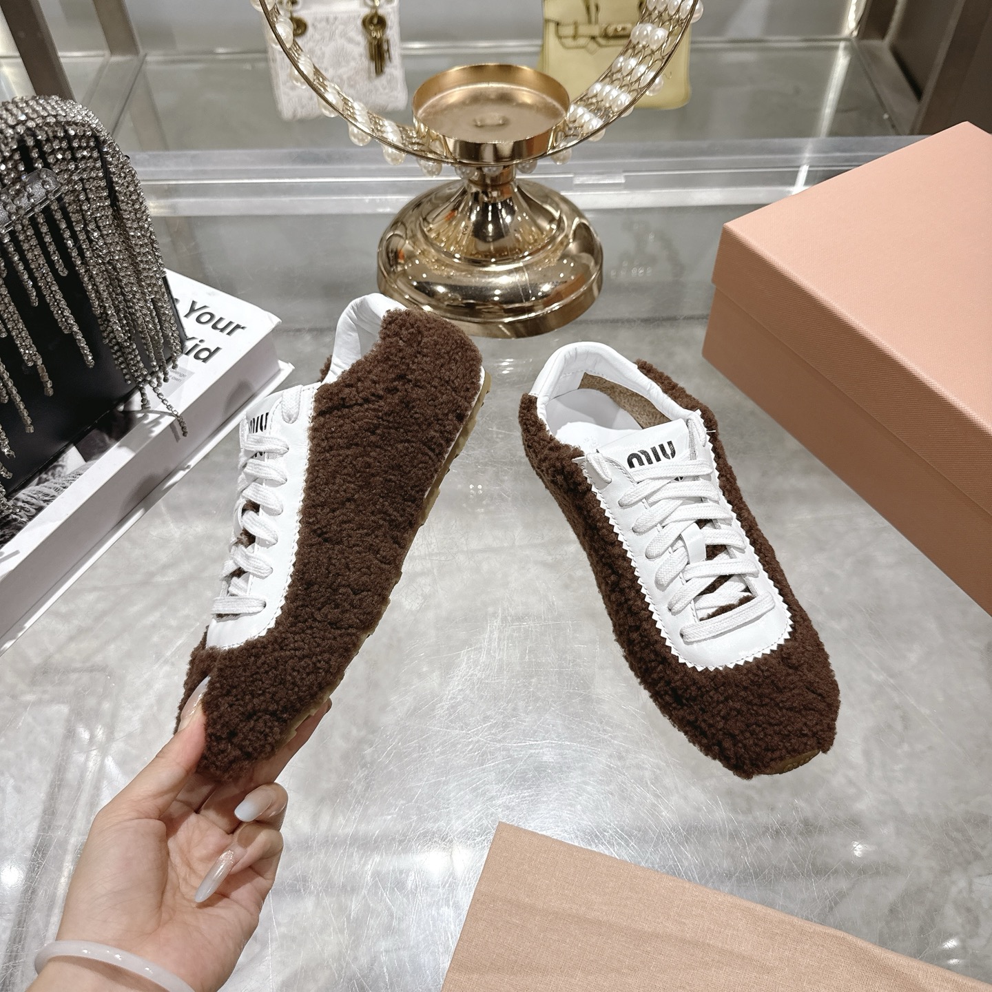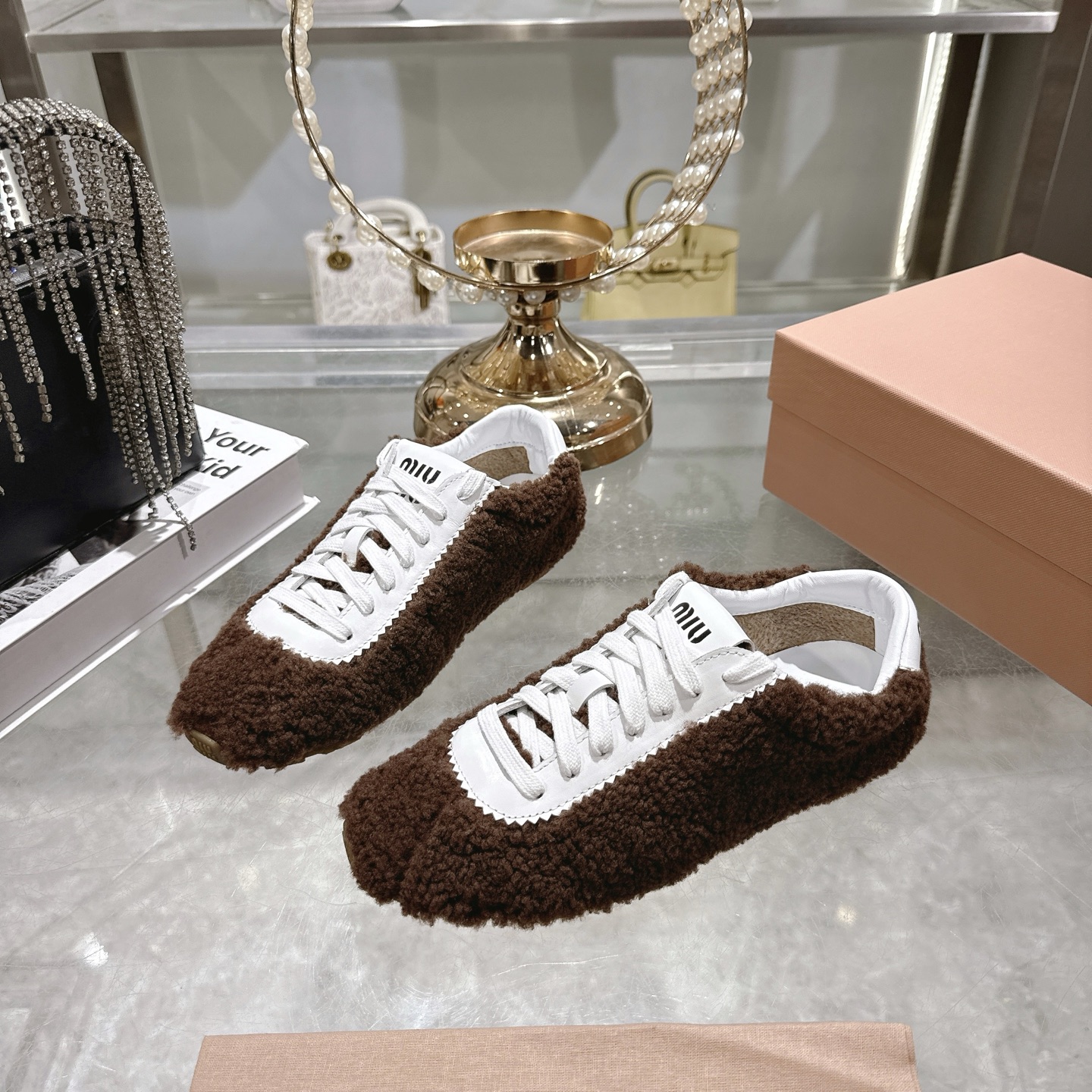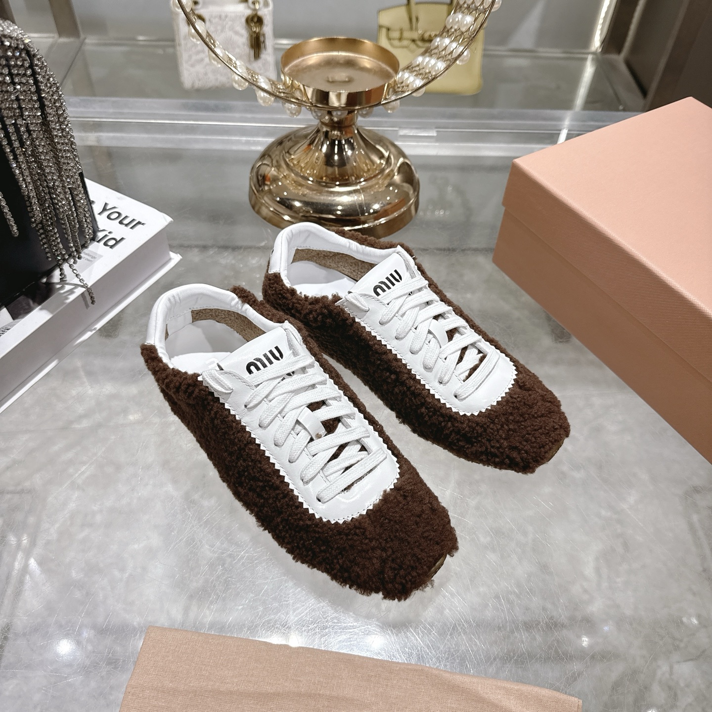 NO:3857120. The shoes is from Miu Miu designer.
