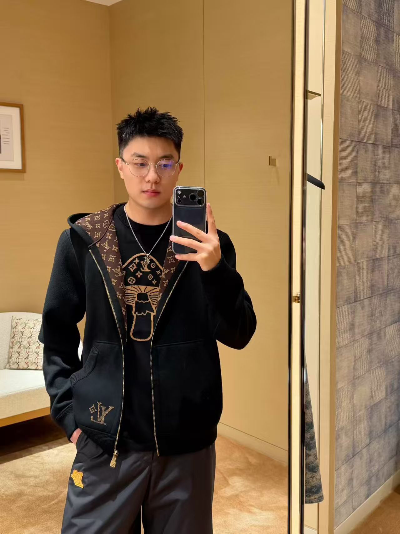 NO:3859240. The clothes is from Louis Vuitton designer.