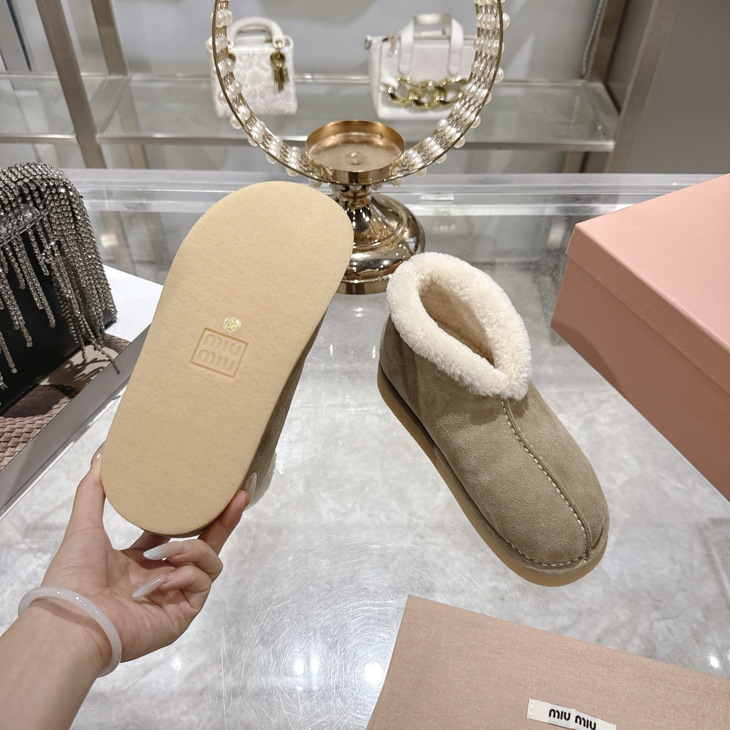 This shoes is AAAAA 1:1 quality (superb). Materials used are identical to the original ones. Miu Miu trademark marks are indistinguishable to the authentic. Photos take by actual shoes, what you receive will be 100% same with our photos.