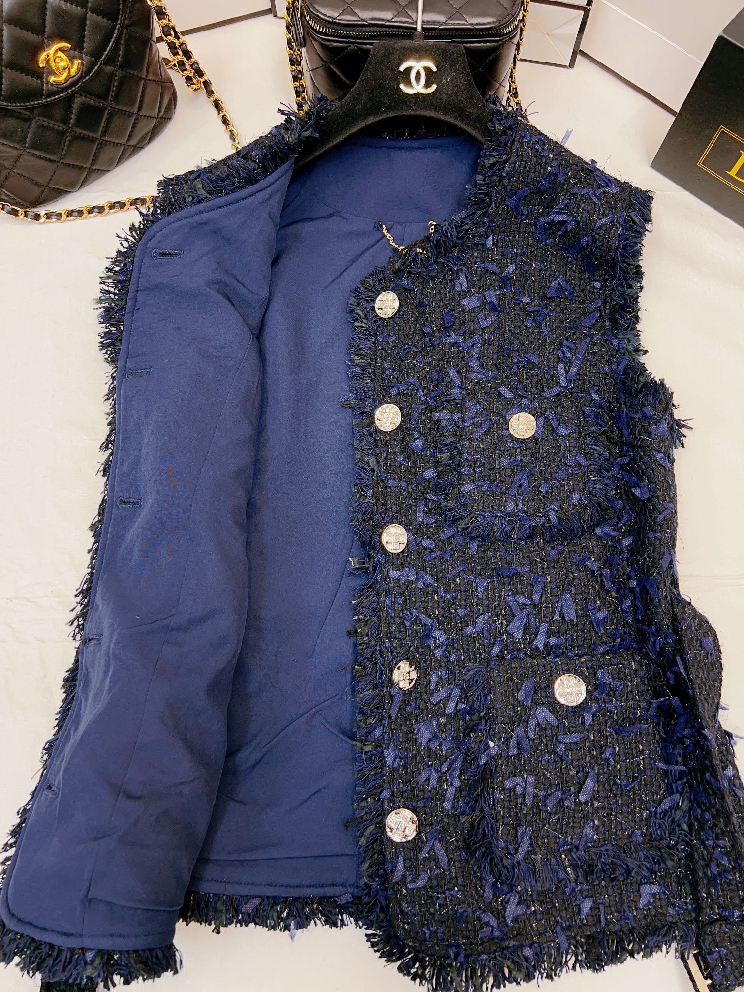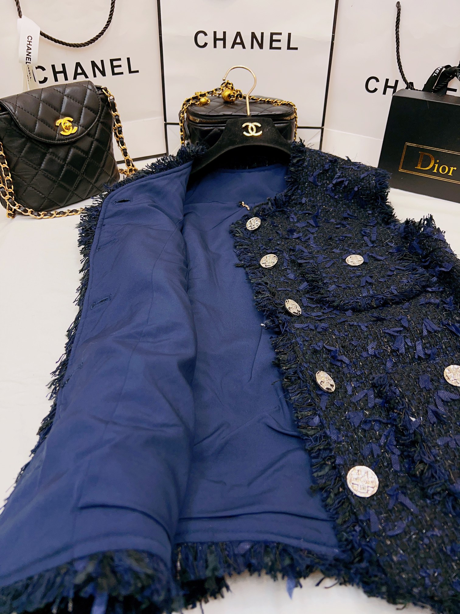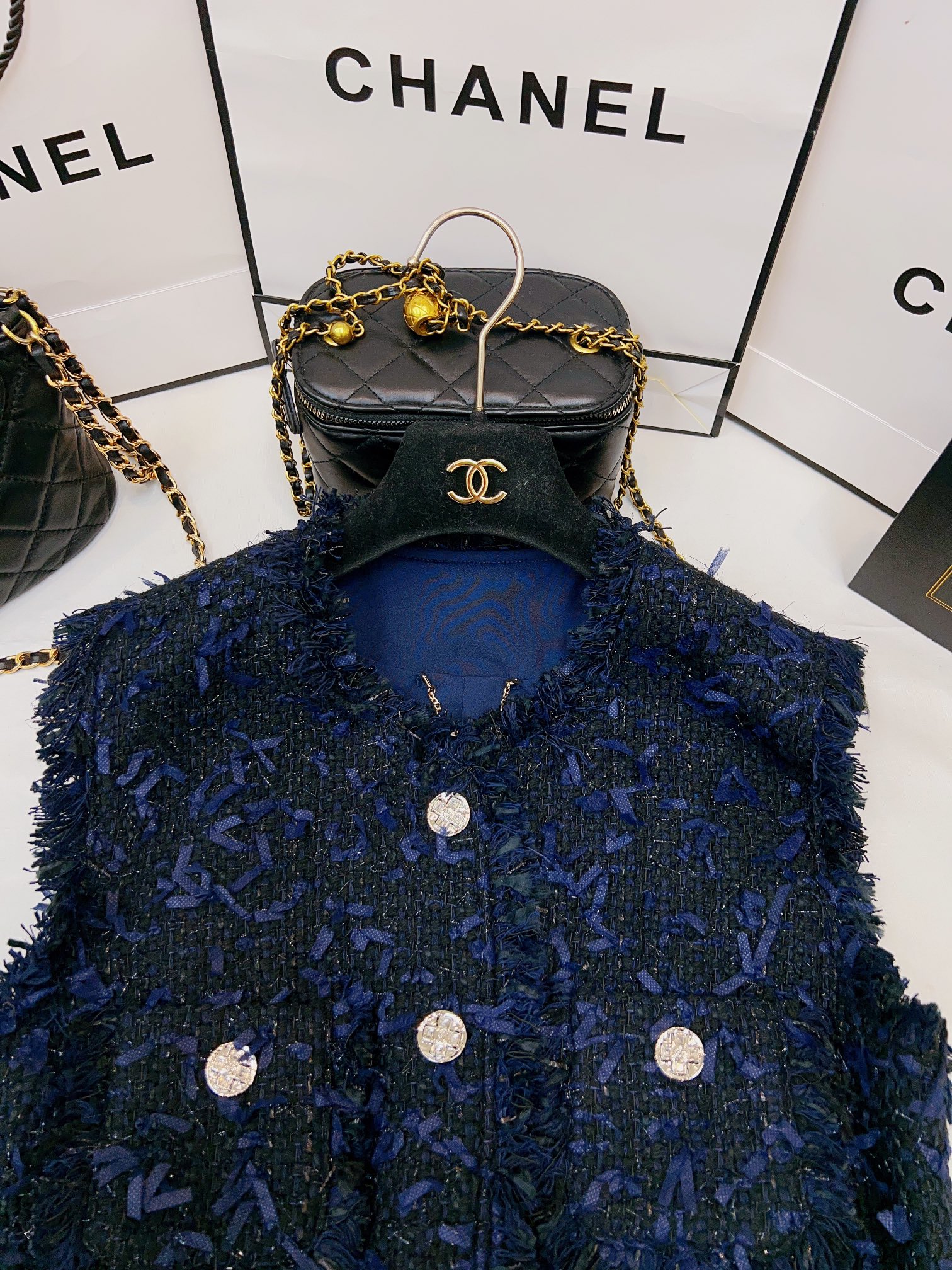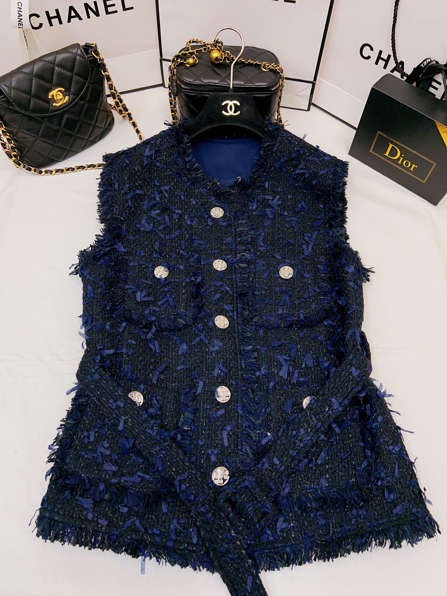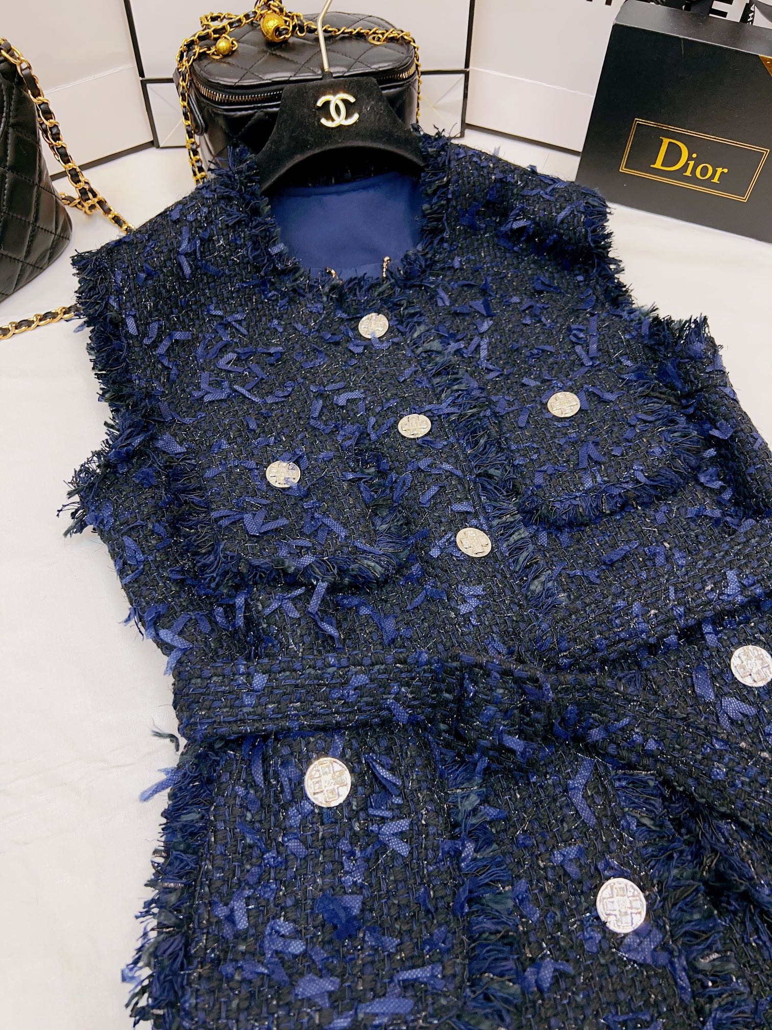 This clothes is AAAAA 1:1 quality (superb). Materials used are identical to the original ones. Chanel trademark marks are indistinguishable to the authentic. Photos take by actual clothes, what you receive will be 100% same with our photos.