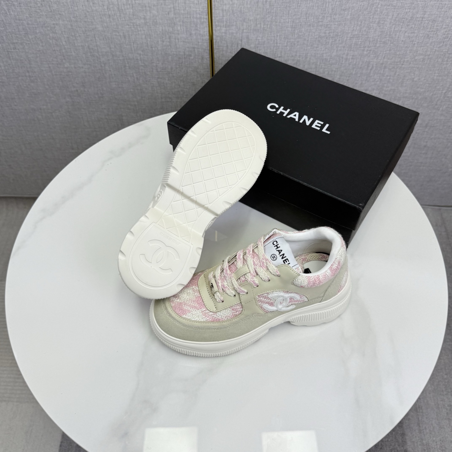 This shoes is AAAAA 1:1 quality (superb). Materials used are identical to the original ones. Chanel trademark marks are indistinguishable to the authentic. Photos take by actual shoes, what you receive will be 100% same with our photos.