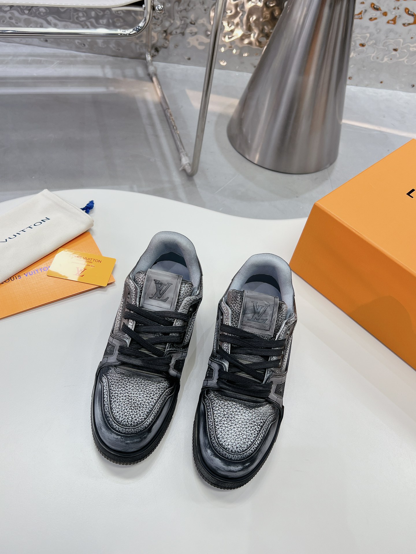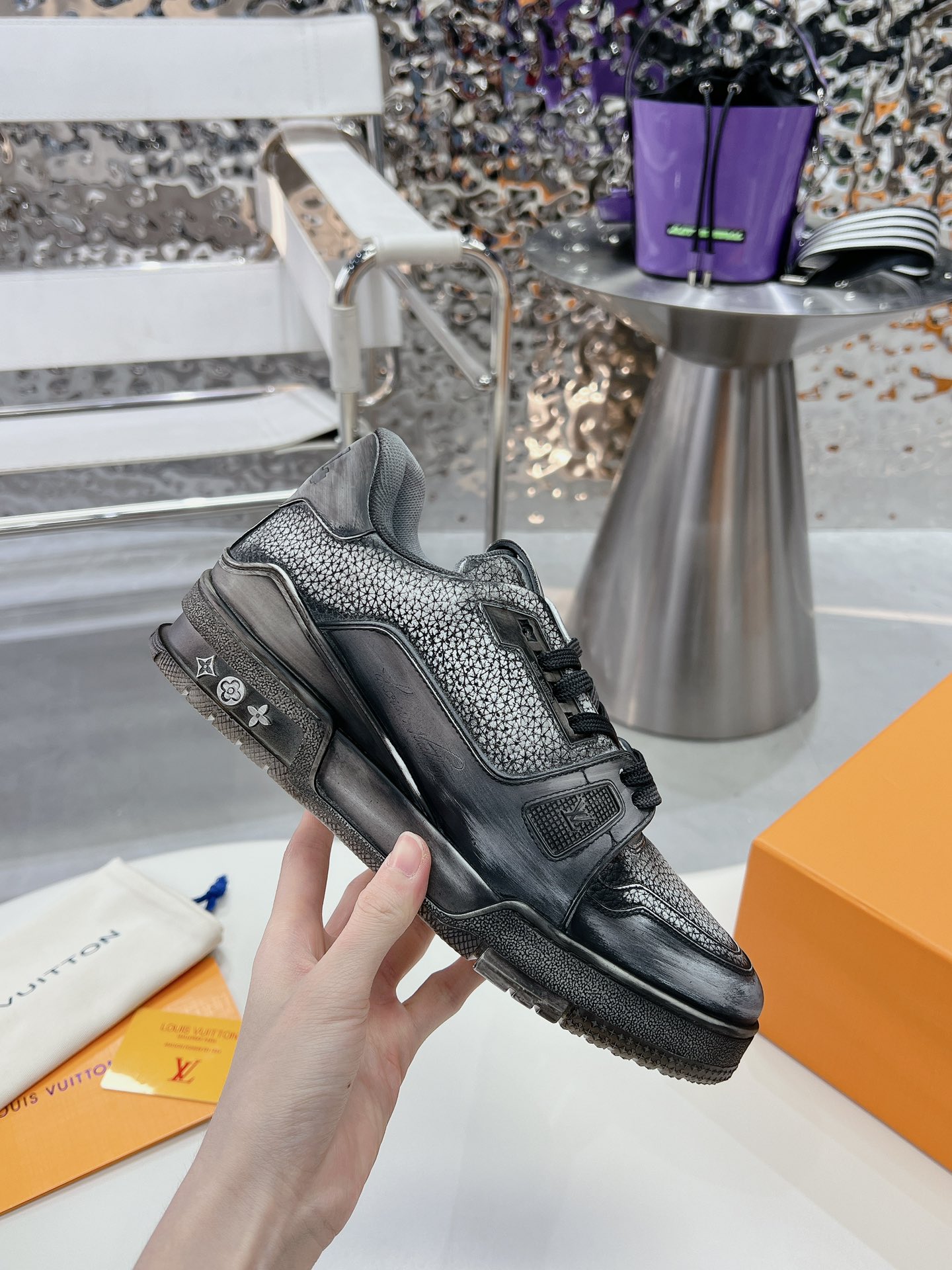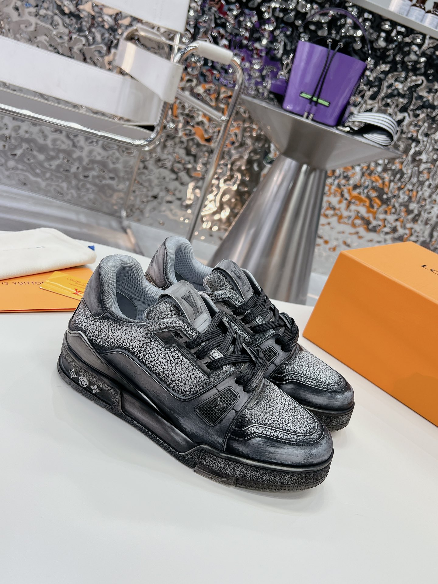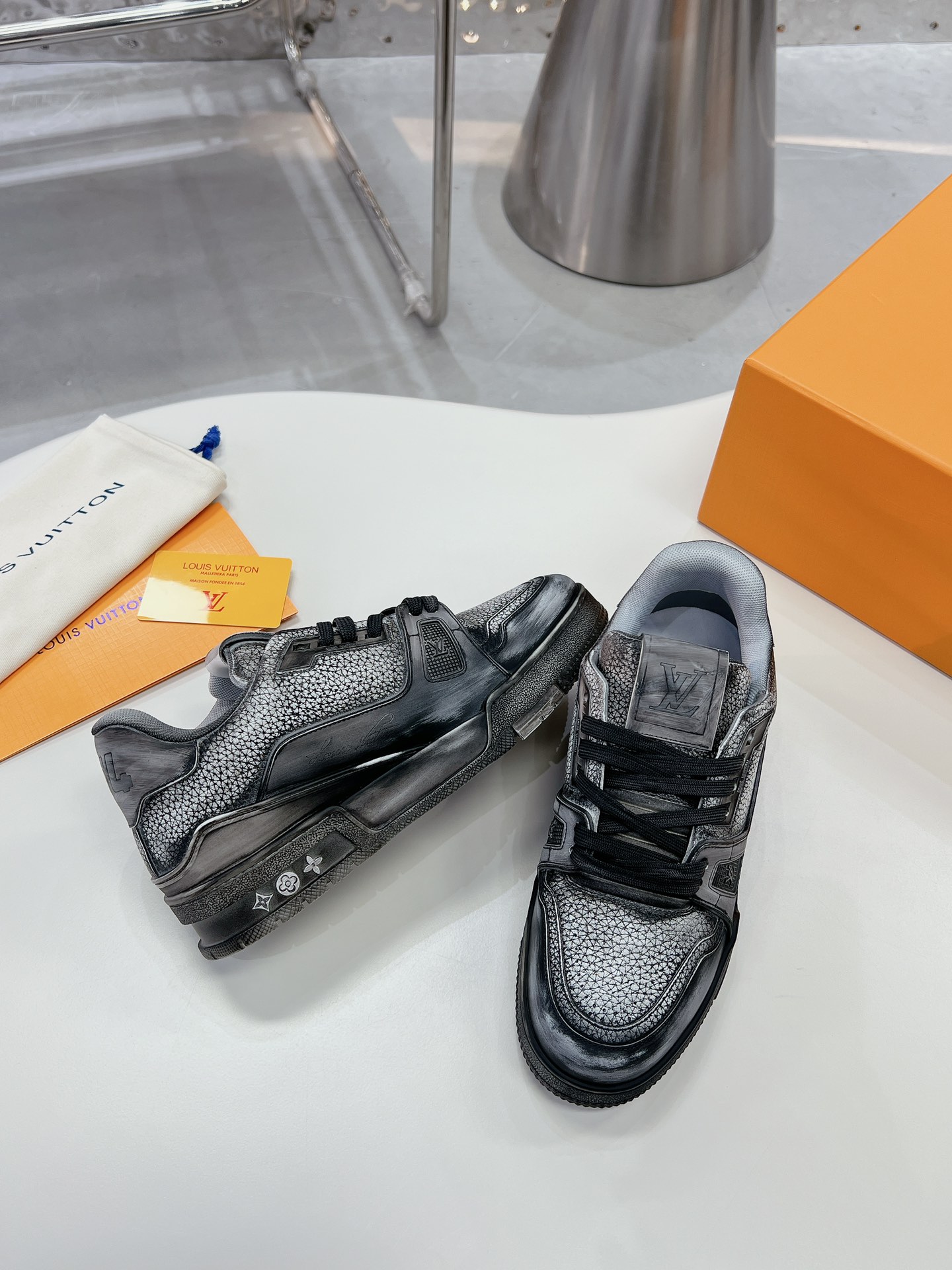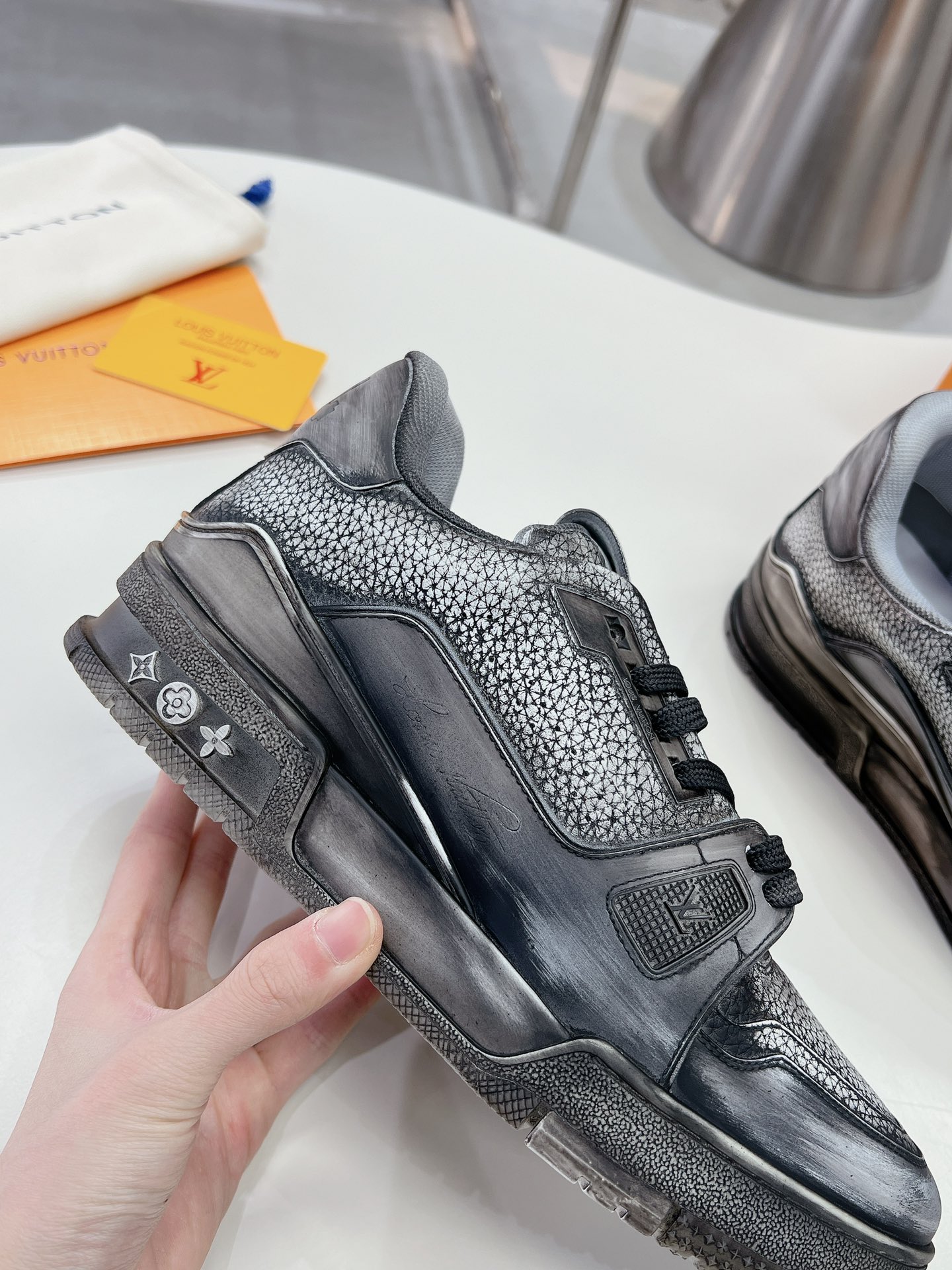 This shoes is AAAAA 1:1 quality (superb). Materials used are identical to the original ones. Louis Vuitton trademark marks are indistinguishable to the authentic. Photos take by actual shoes, what you receive will be 100% same with our photos.