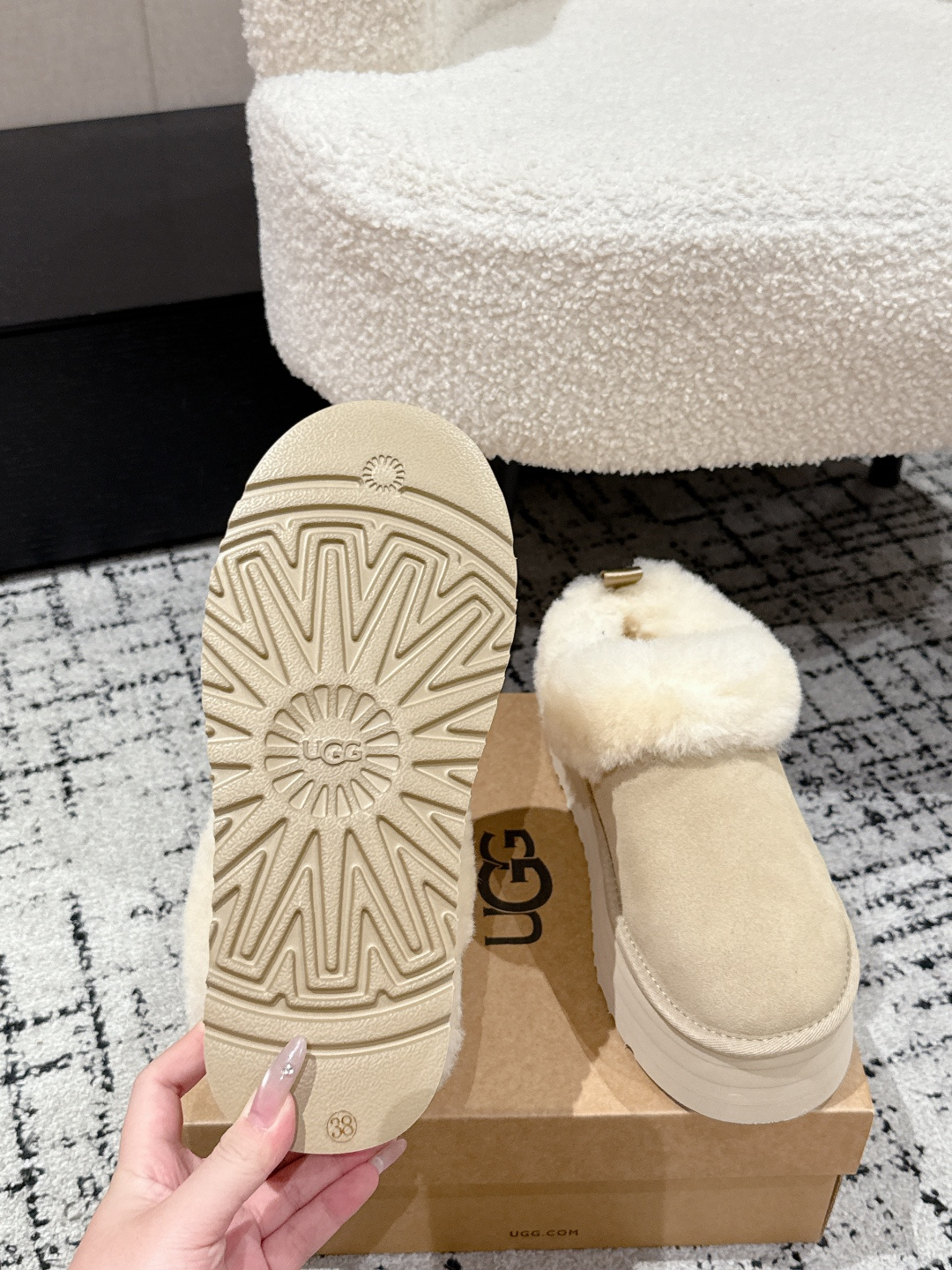 This shoes is AAAAA 1:1 quality (superb). Materials used are identical to the original ones. UGG trademark marks are indistinguishable to the authentic. Photos take by actual shoes, what you receive will be 100% same with our photos.