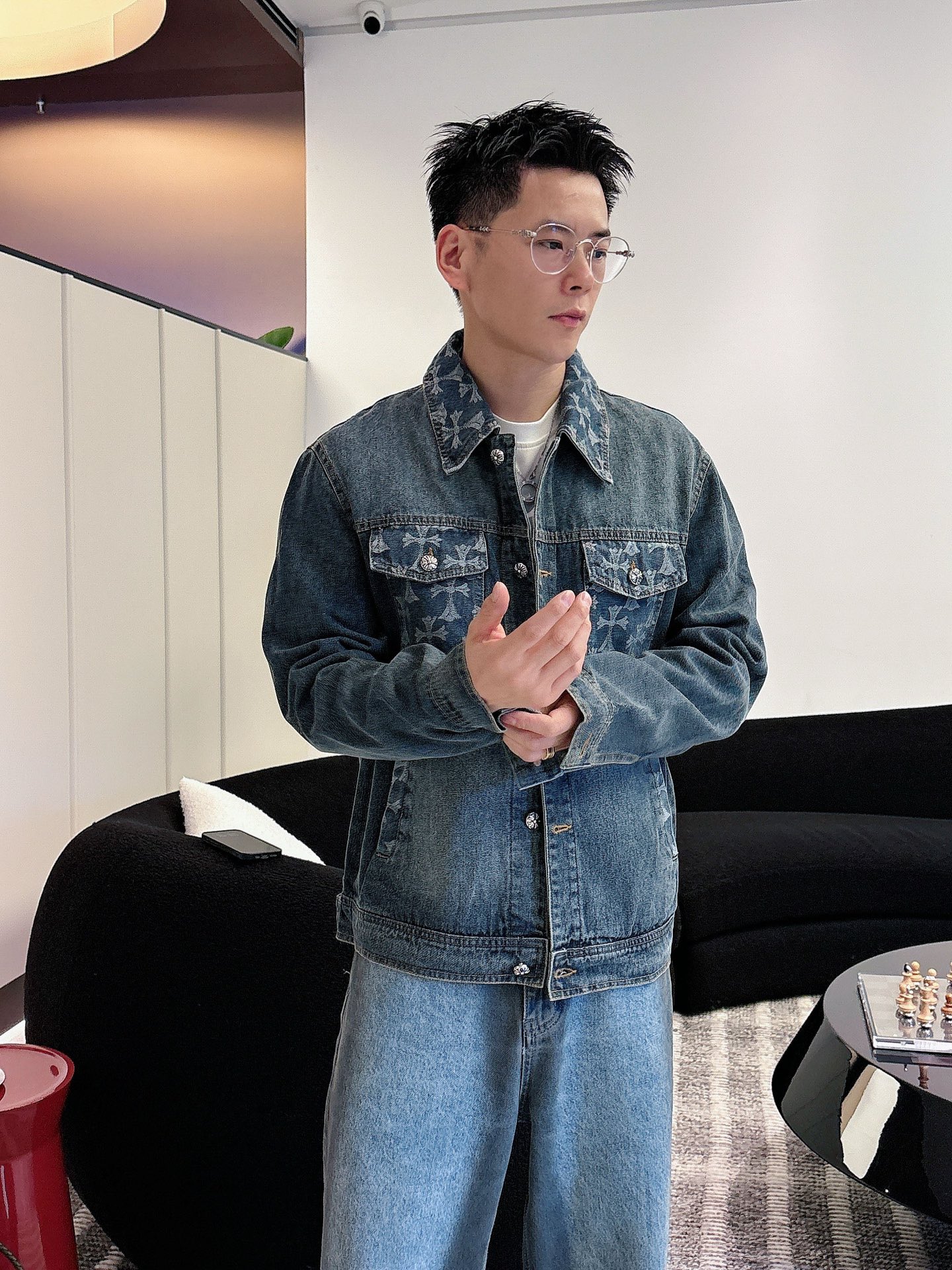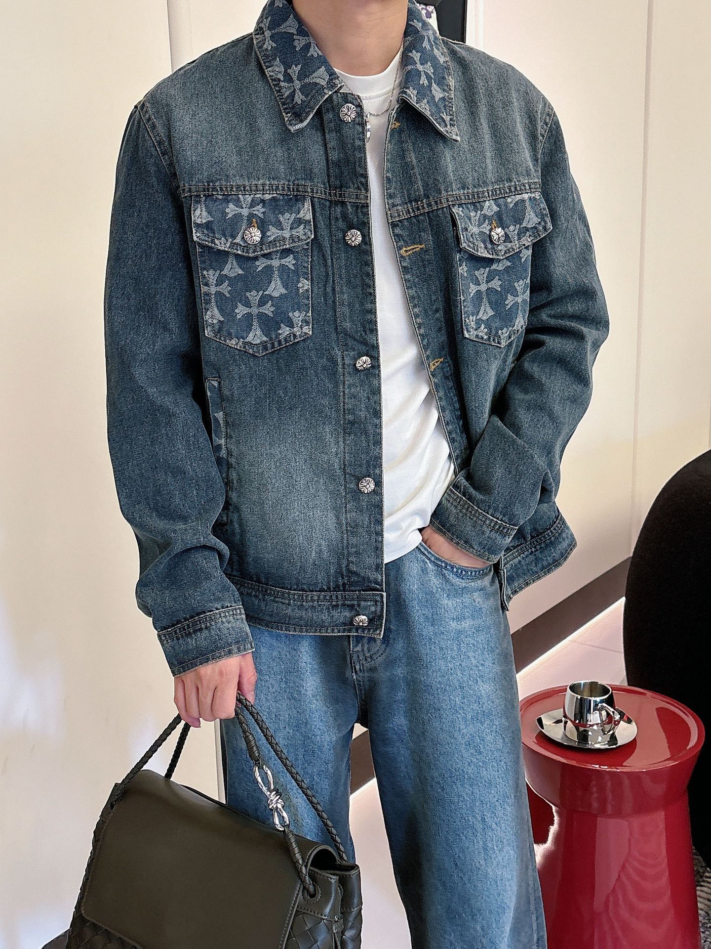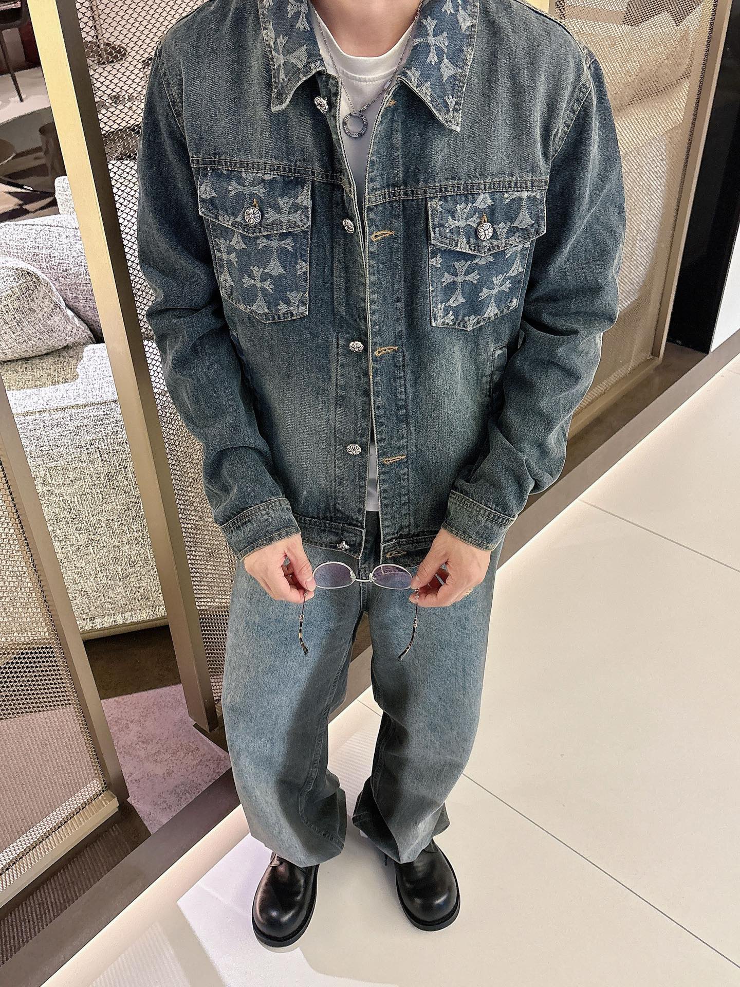 NO:3894453. The clothes is from Chrome Hearts designer.