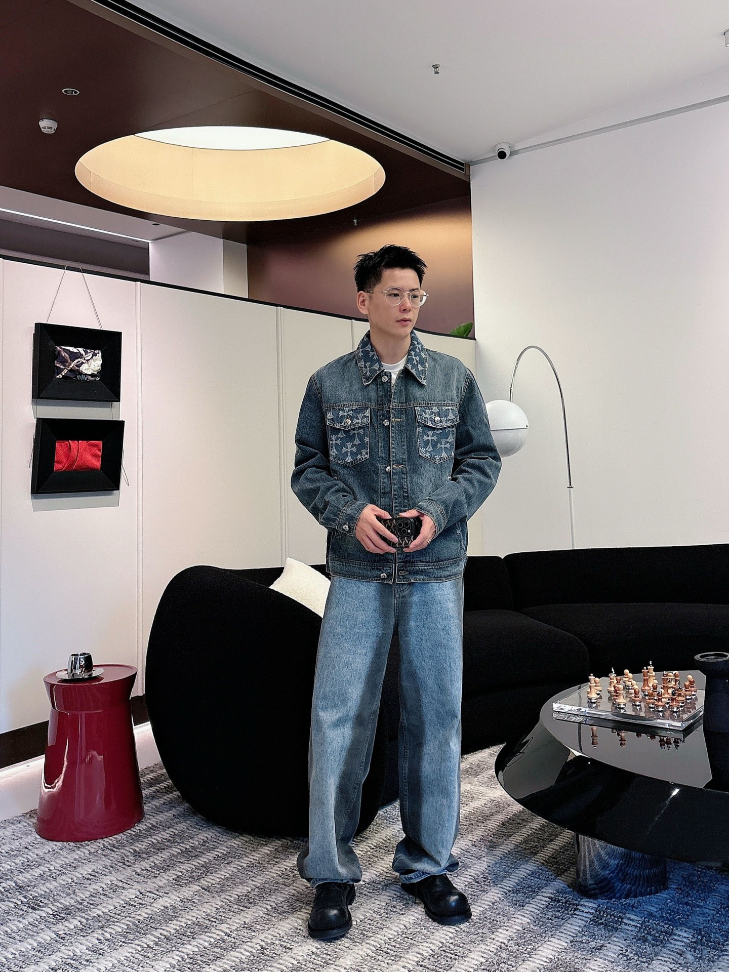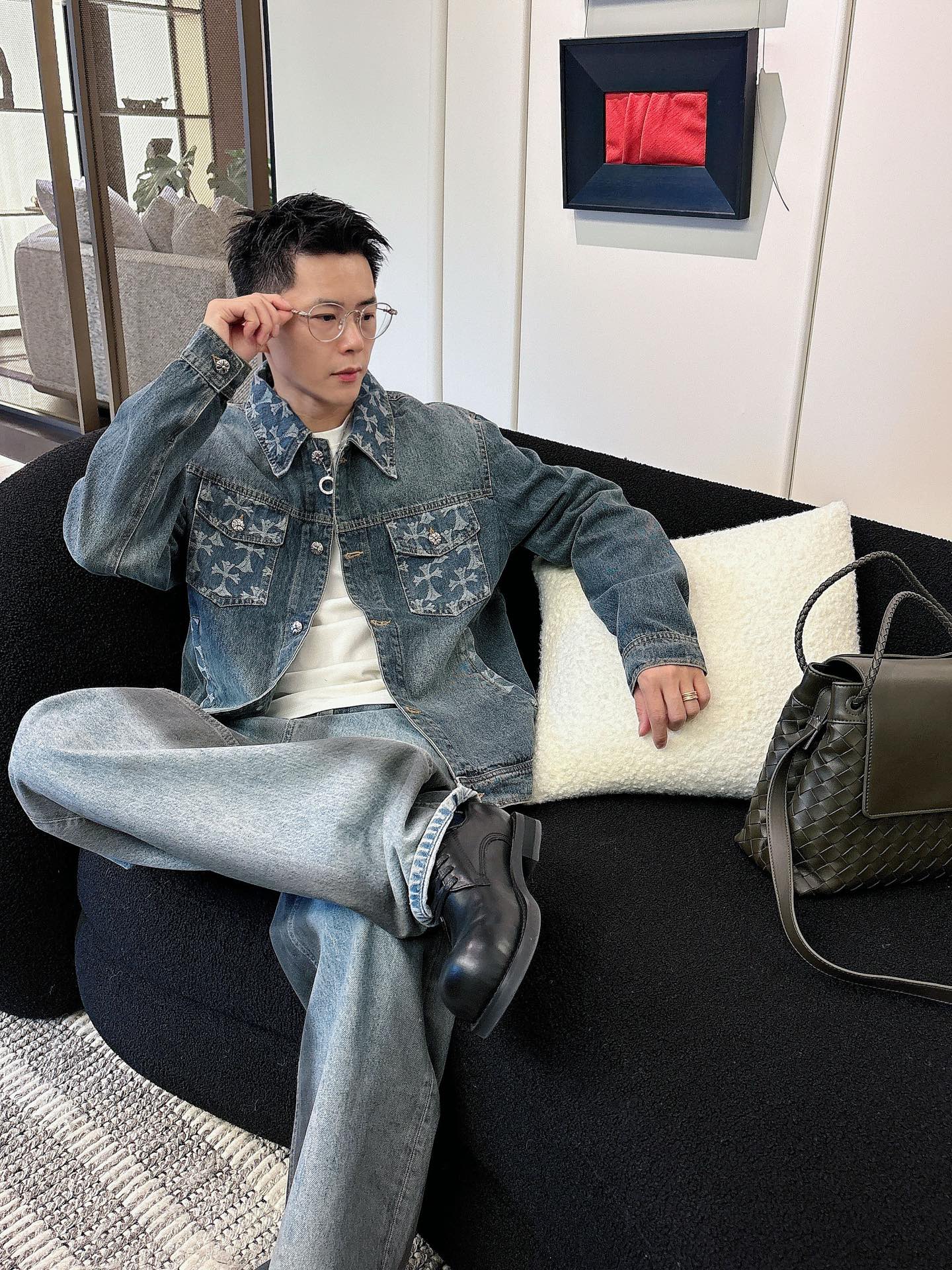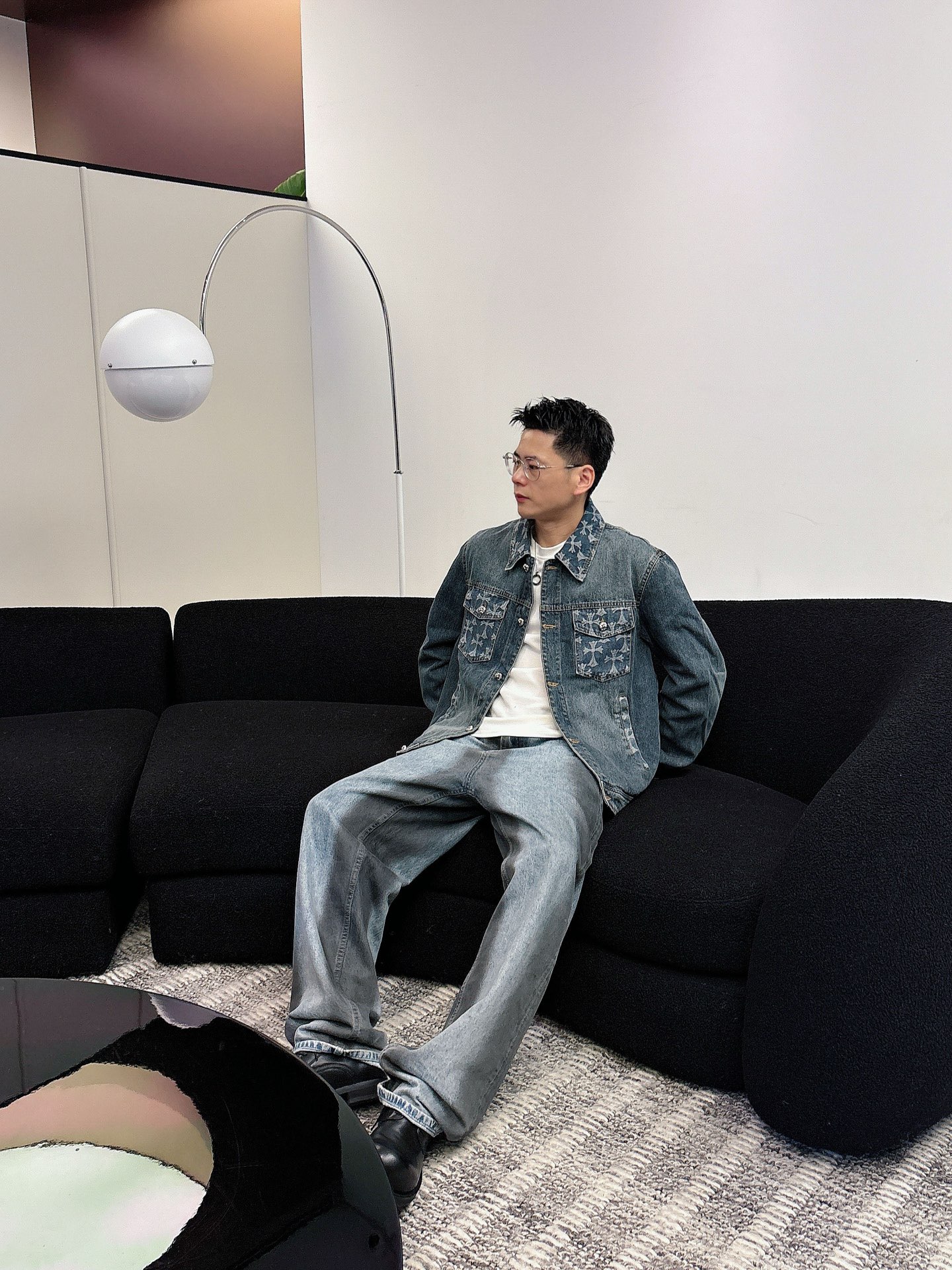 NO:3894453. The clothes is from Chrome Hearts designer.