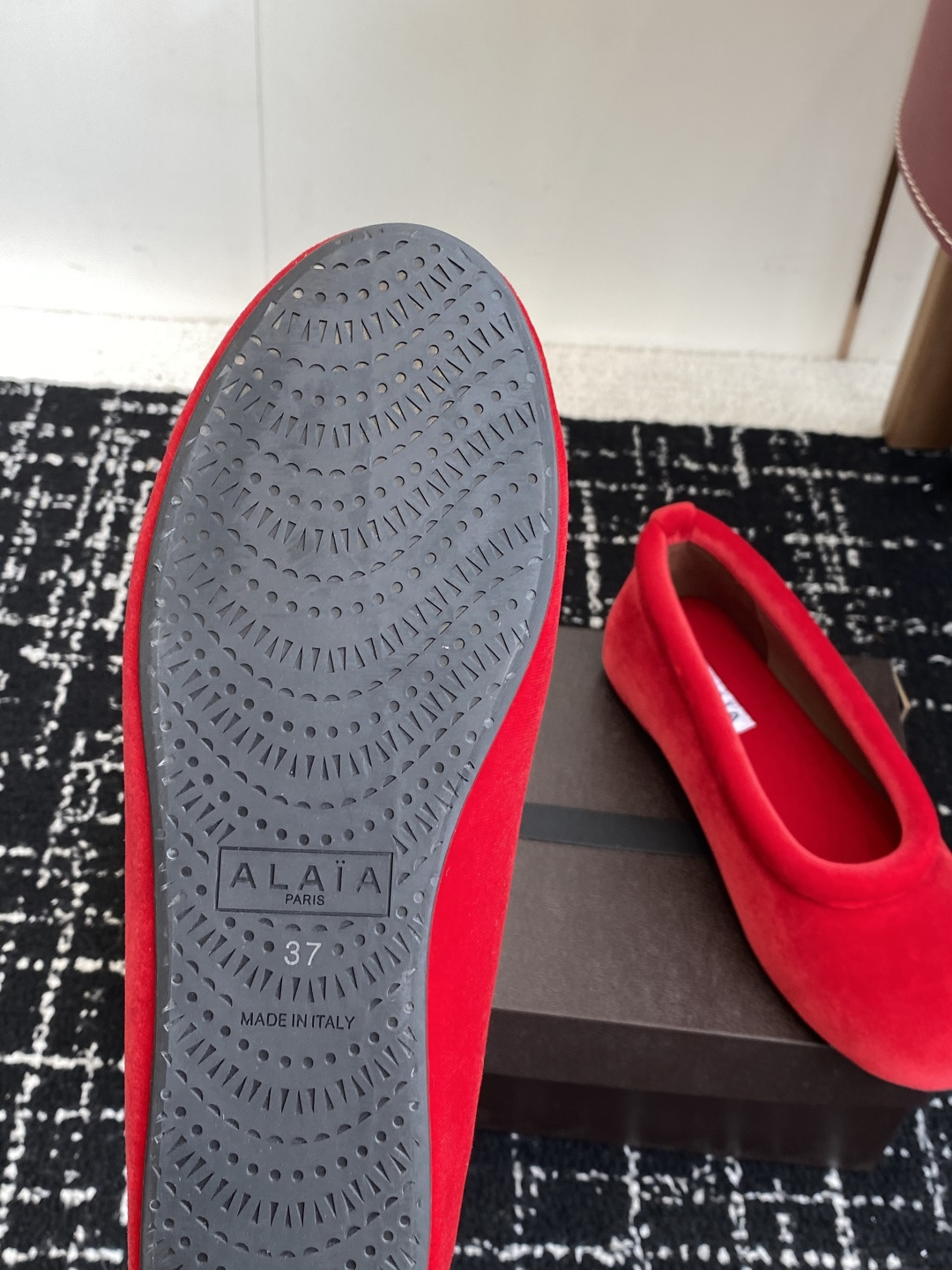 This shoes is AAAAA 1:1 quality (superb). Materials used are identical to the original ones. Alaia trademark marks are indistinguishable to the authentic. Photos take by actual shoes, what you receive will be 100% same with our photos.