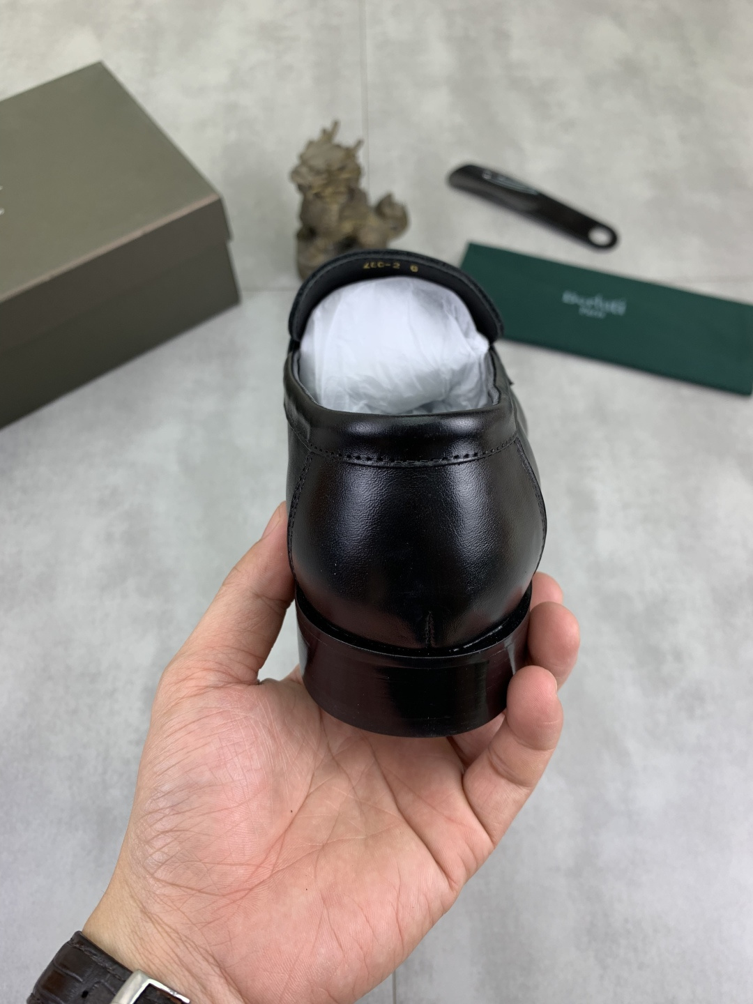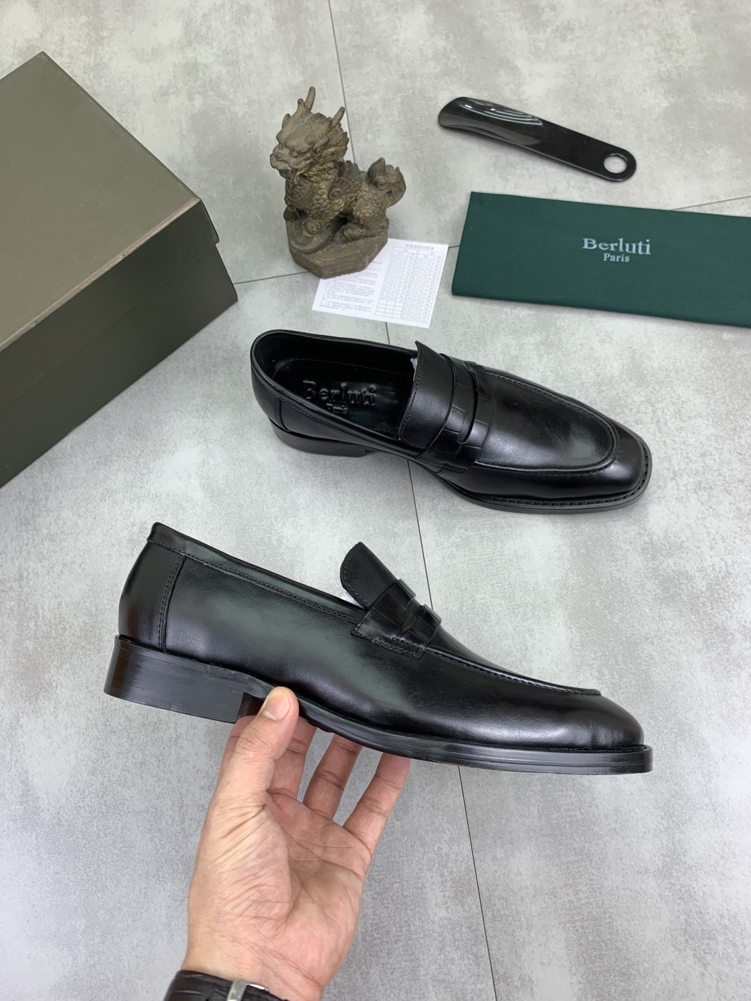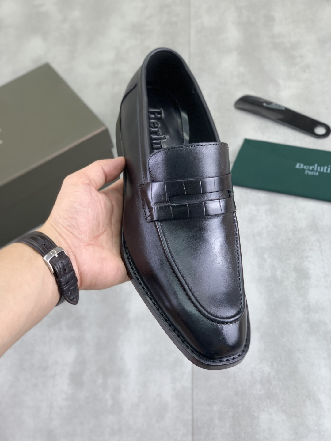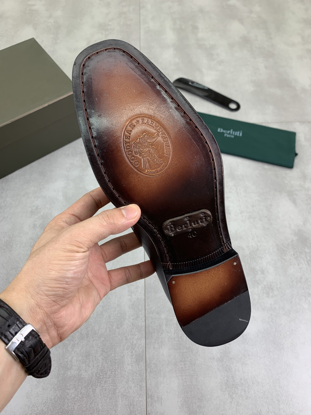 This shoes is AAAAA 1:1 quality (superb). Materials used are identical to the original ones. Berluti trademark marks are indistinguishable to the authentic. Photos take by actual shoes, what you receive will be 100% same with our photos.