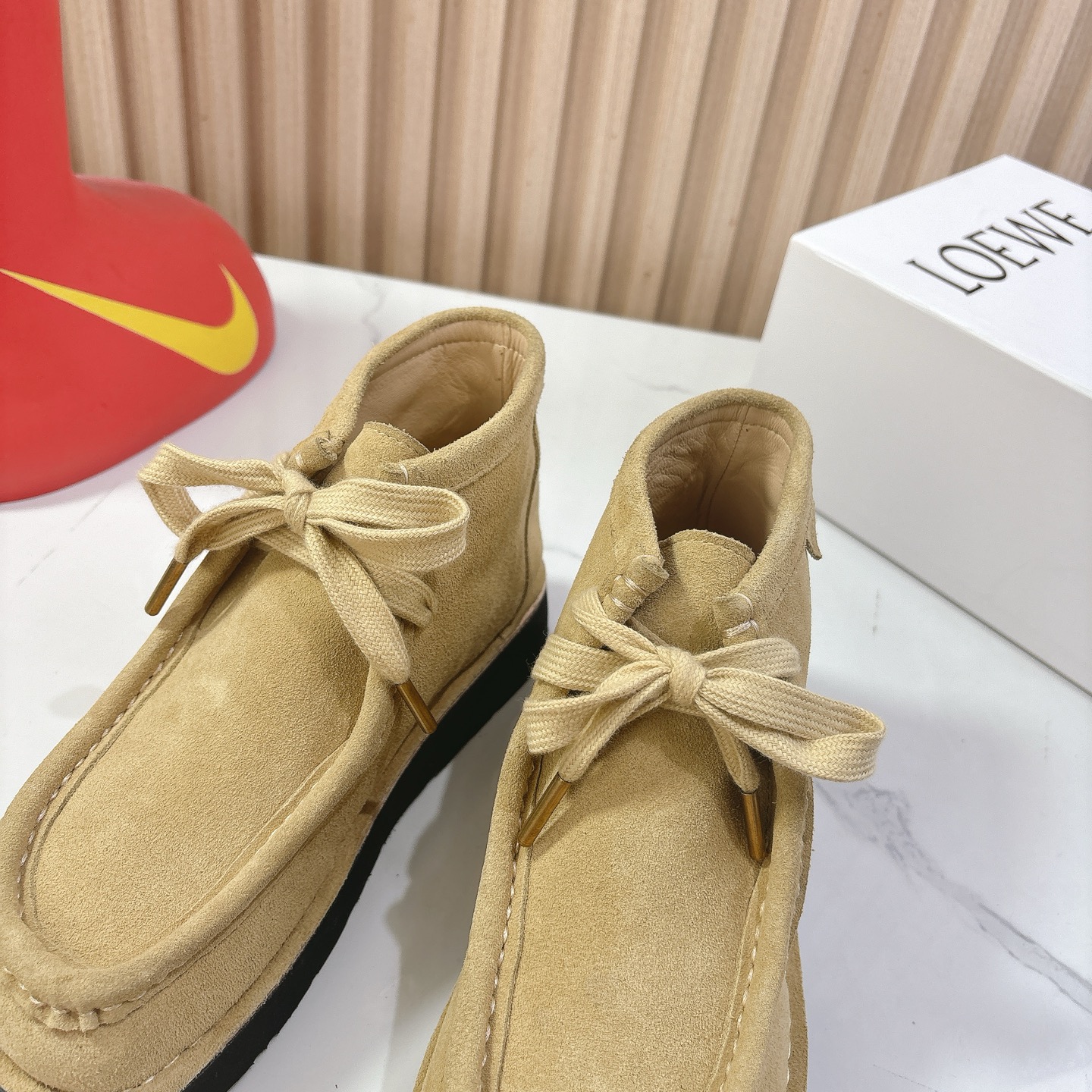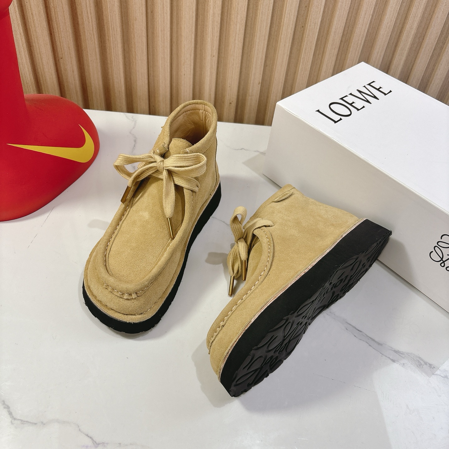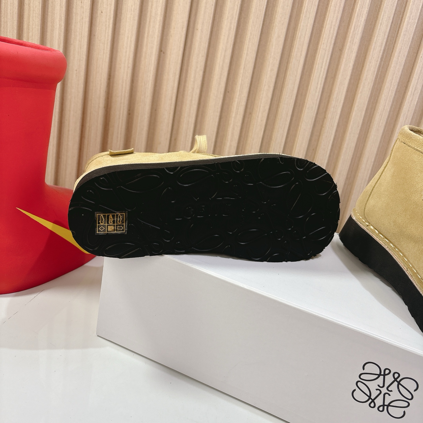This shoes is AAAAA 1:1 quality (superb). Materials used are identical to the original ones. Loewe trademark marks are indistinguishable to the authentic. Photos take by actual shoes, what you receive will be 100% same with our photos.