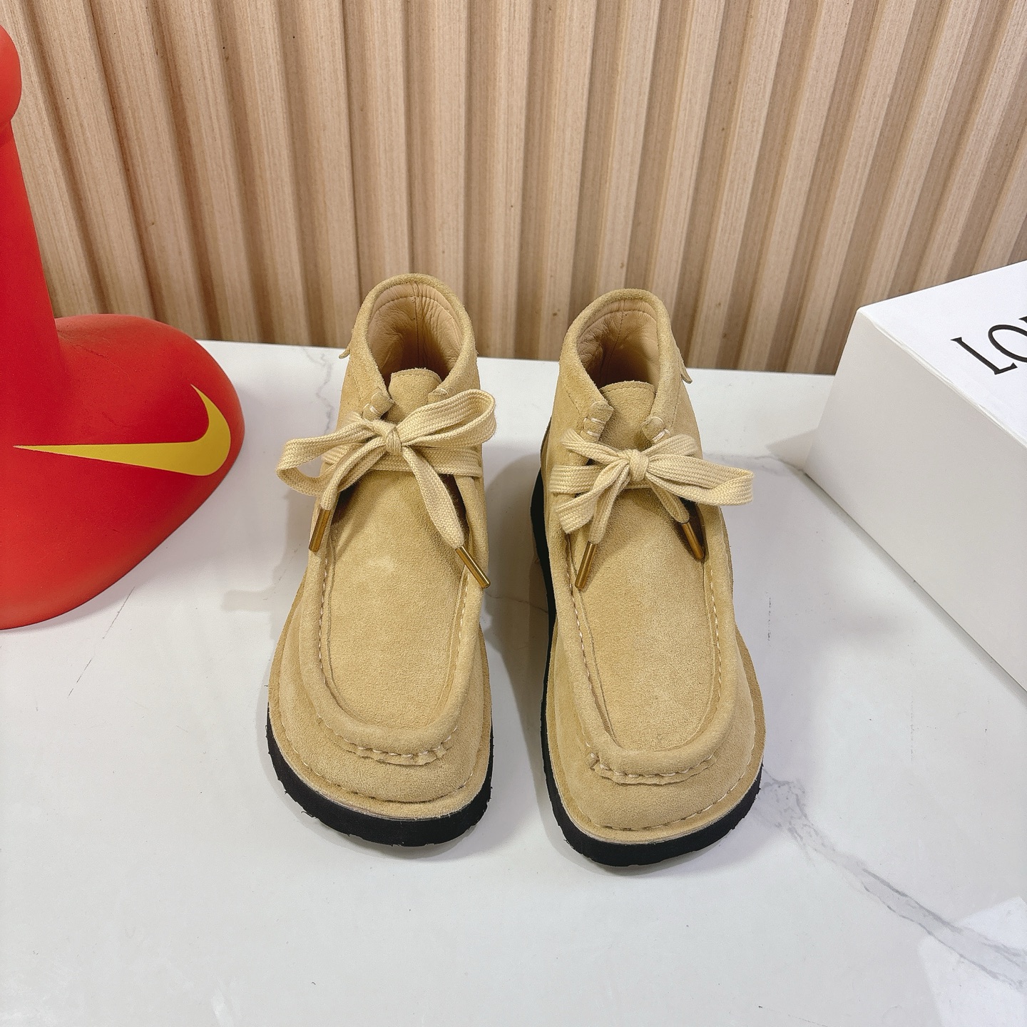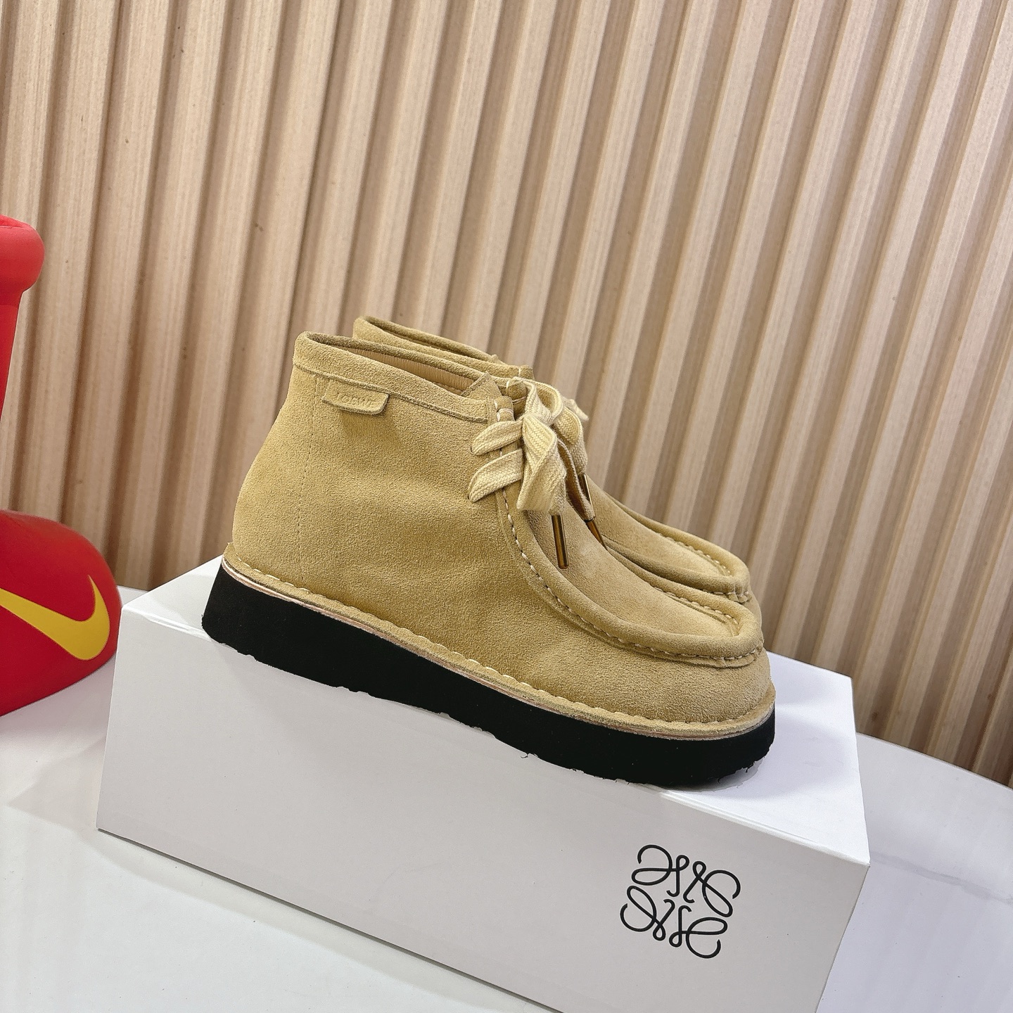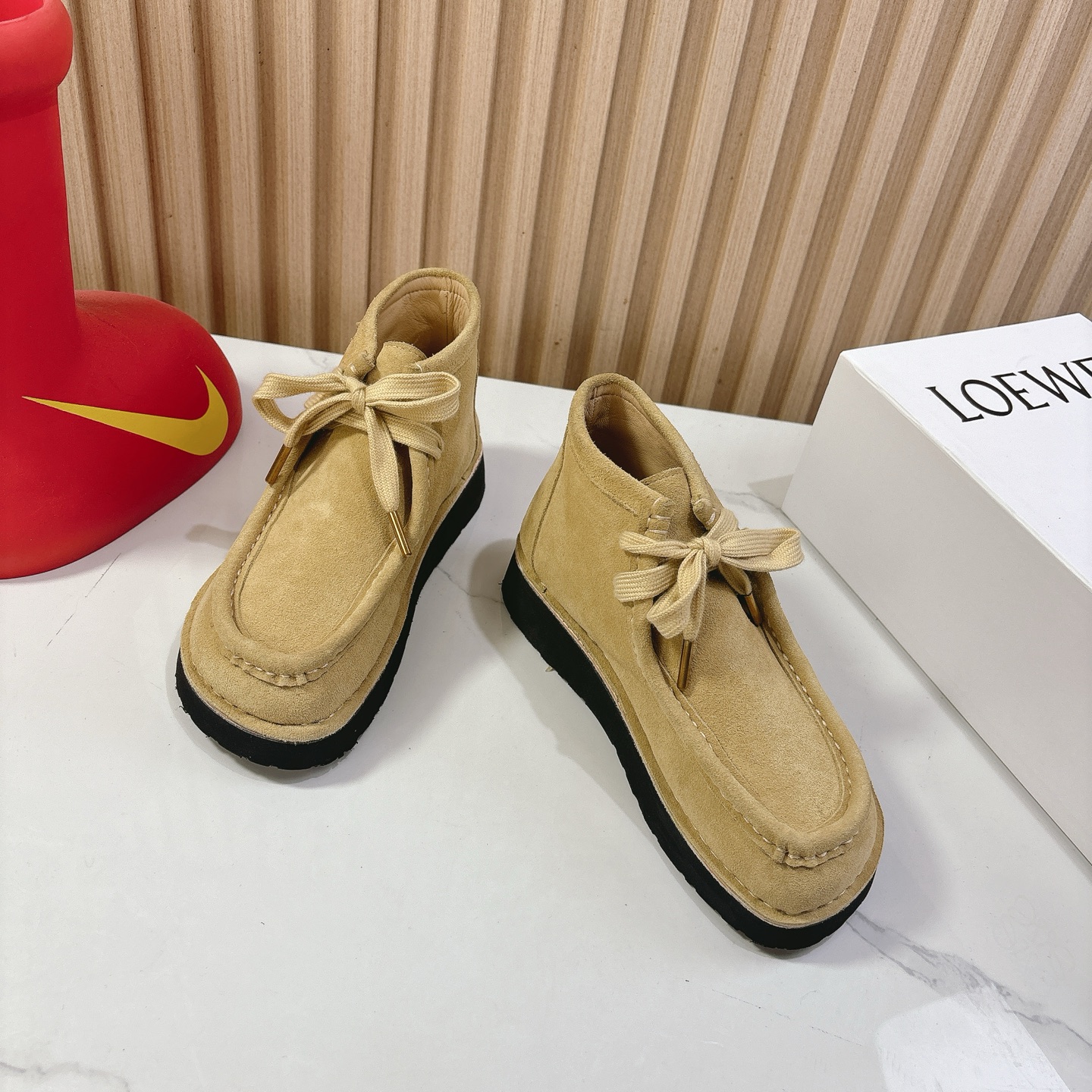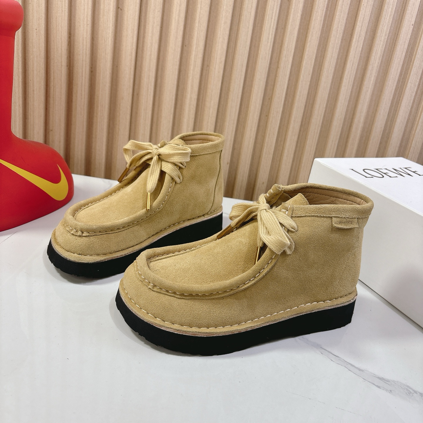 This shoes is AAAAA 1:1 quality (superb). Materials used are identical to the original ones. Loewe trademark marks are indistinguishable to the authentic. Photos take by actual shoes, what you receive will be 100% same with our photos.