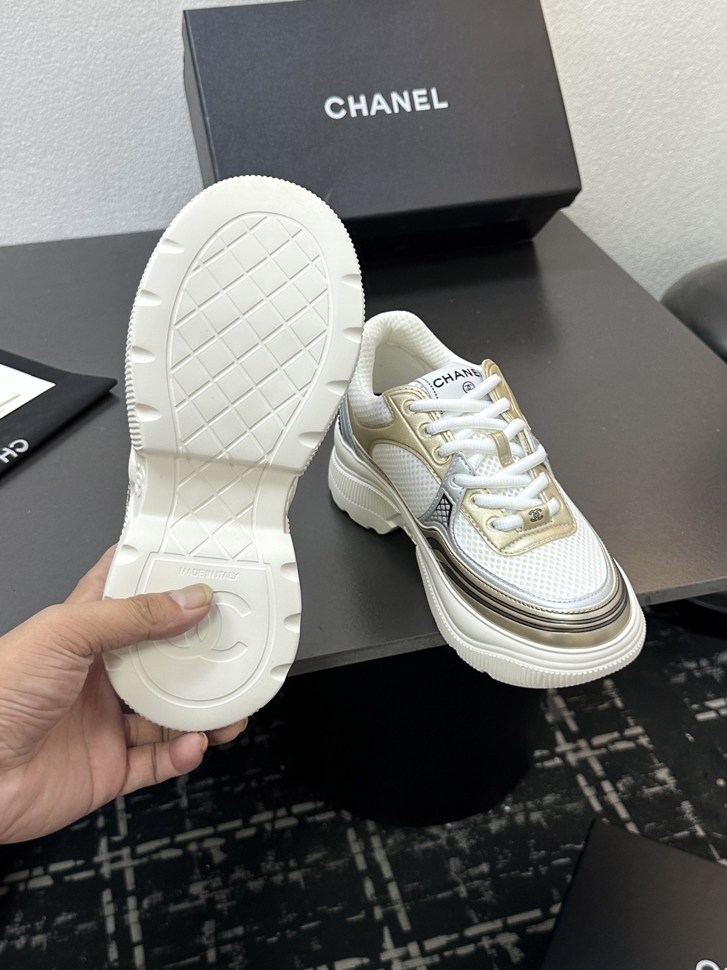 This shoes is AAAAA 1:1 quality (superb). Materials used are identical to the original ones. Chanel trademark marks are indistinguishable to the authentic. Photos take by actual shoes, what you receive will be 100% same with our photos.