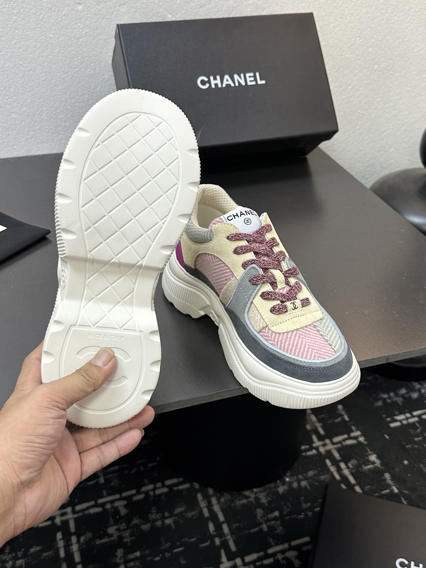 This shoes is AAAAA 1:1 quality (superb). Materials used are identical to the original ones. Chanel trademark marks are indistinguishable to the authentic. Photos take by actual shoes, what you receive will be 100% same with our photos.
