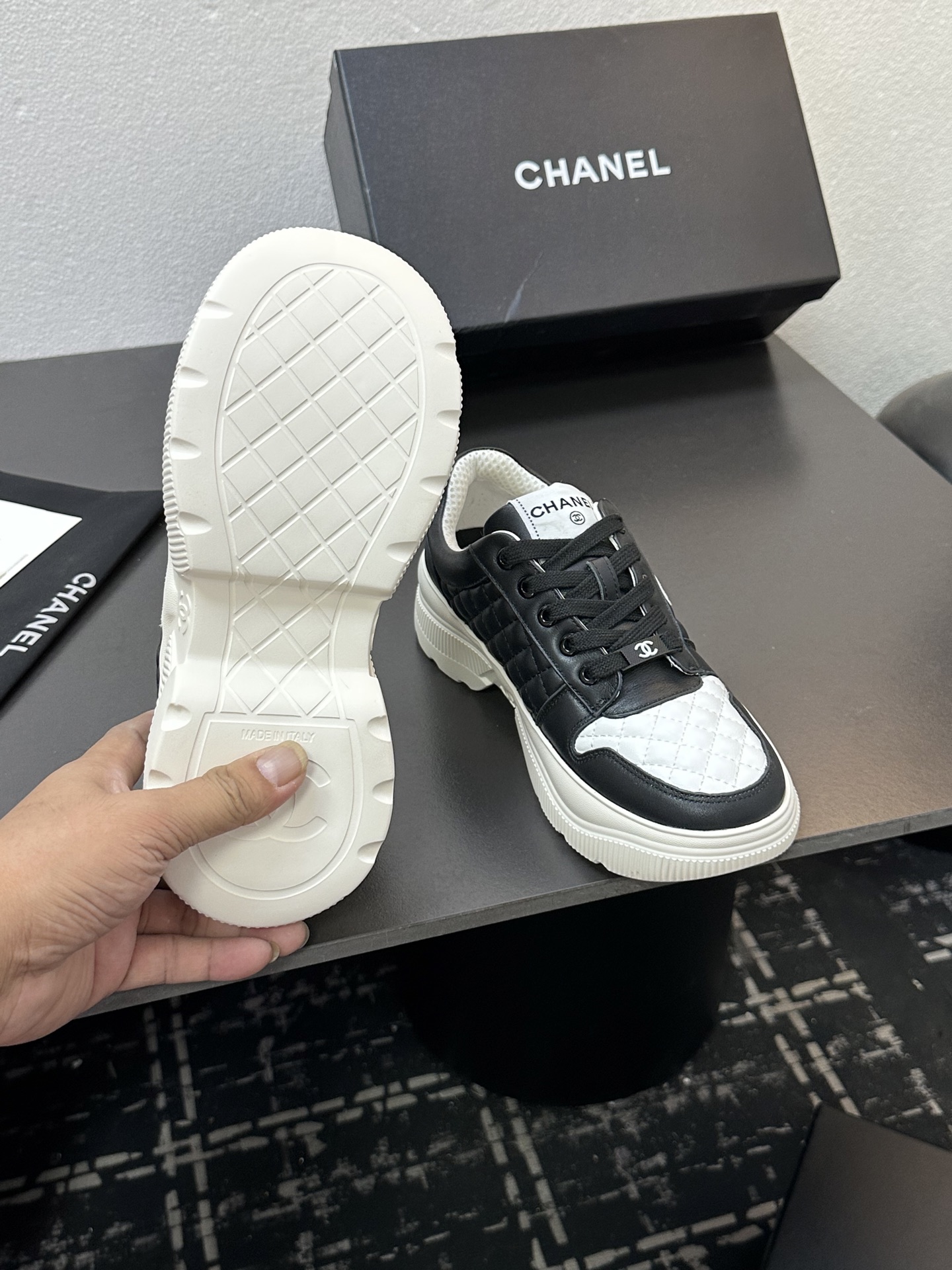 This shoes is AAAAA 1:1 quality (superb). Materials used are identical to the original ones. Chanel trademark marks are indistinguishable to the authentic. Photos take by actual shoes, what you receive will be 100% same with our photos.
