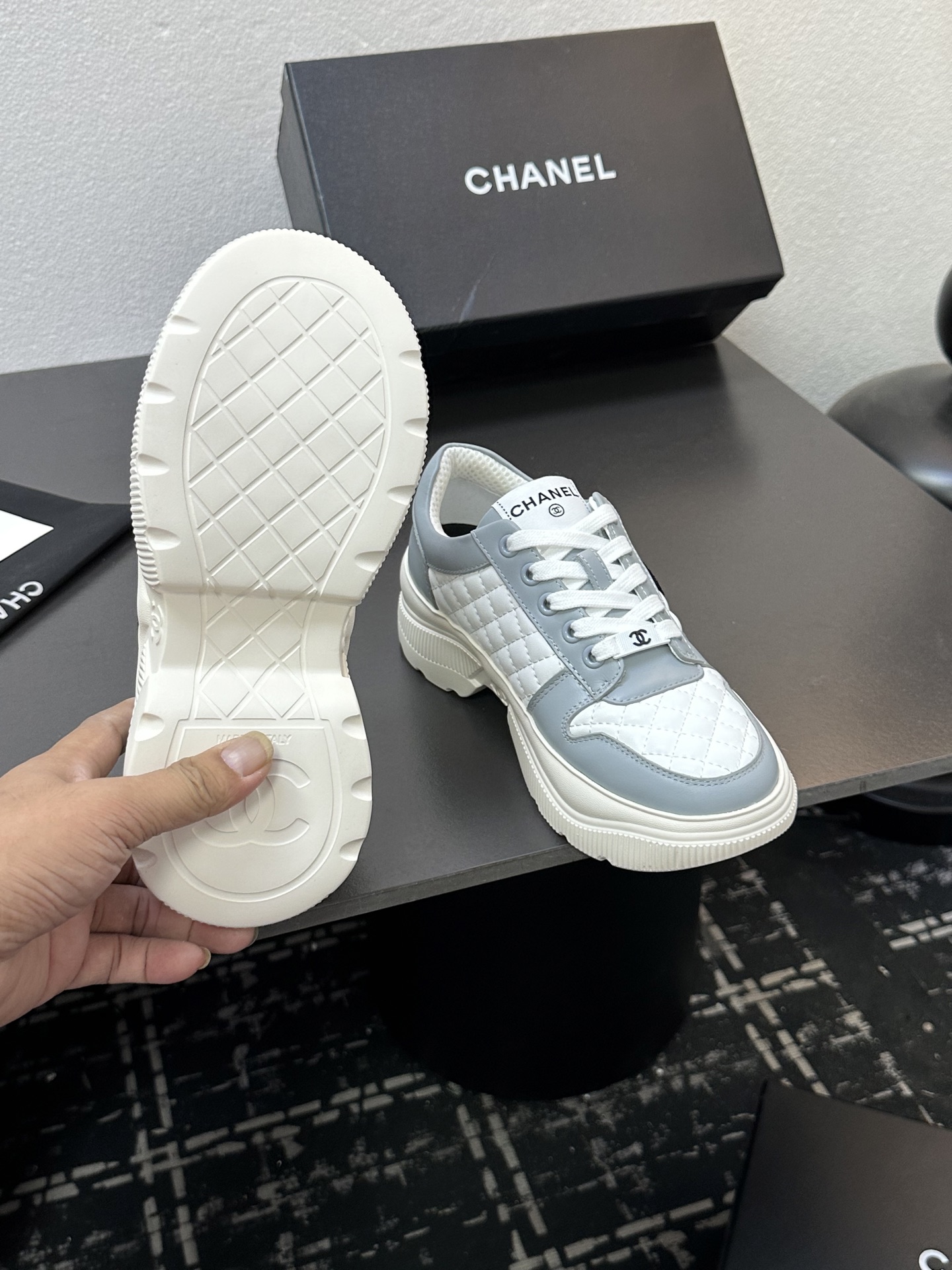 This shoes is AAAAA 1:1 quality (superb). Materials used are identical to the original ones. Chanel trademark marks are indistinguishable to the authentic. Photos take by actual shoes, what you receive will be 100% same with our photos.