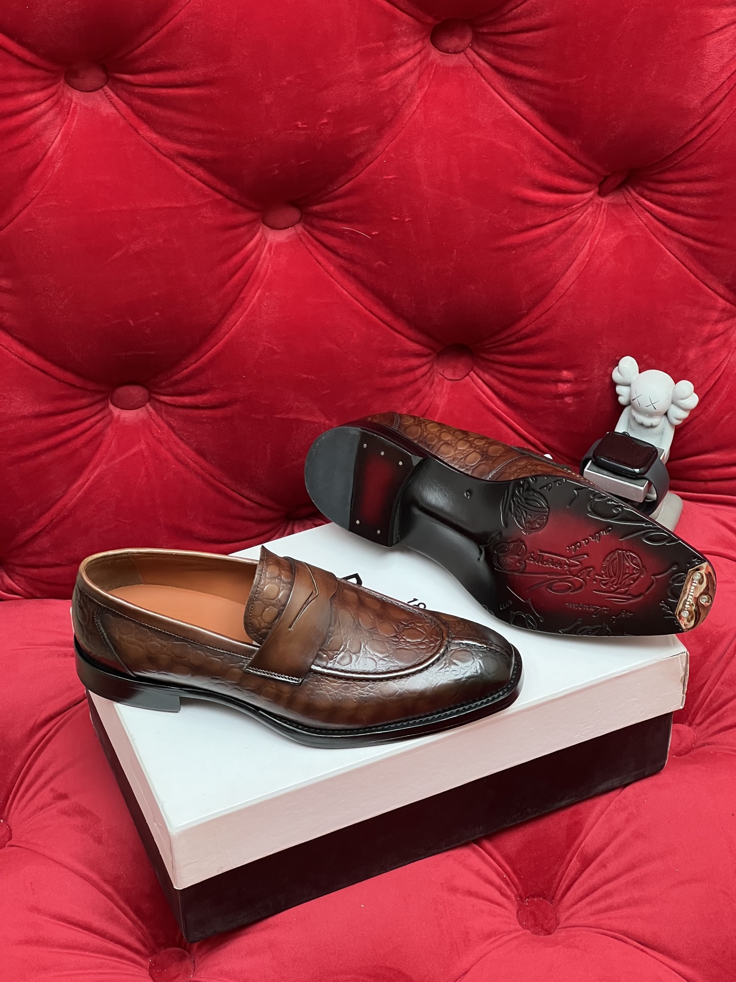 This shoes is AAAAA 1:1 quality (superb). Materials used are identical to the original ones. Berluti trademark marks are indistinguishable to the authentic. Photos take by actual shoes, what you receive will be 100% same with our photos.